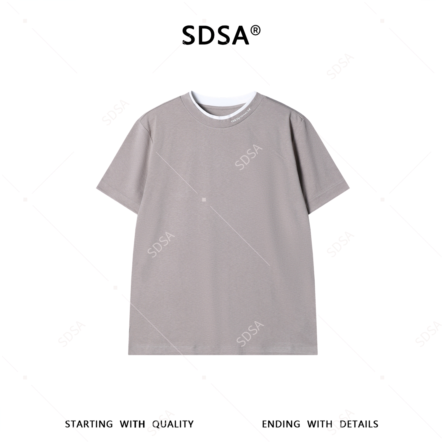 SDSA男装2026新款高贵轻奢美式拼接领口印花字母圆领长袖T恤百搭