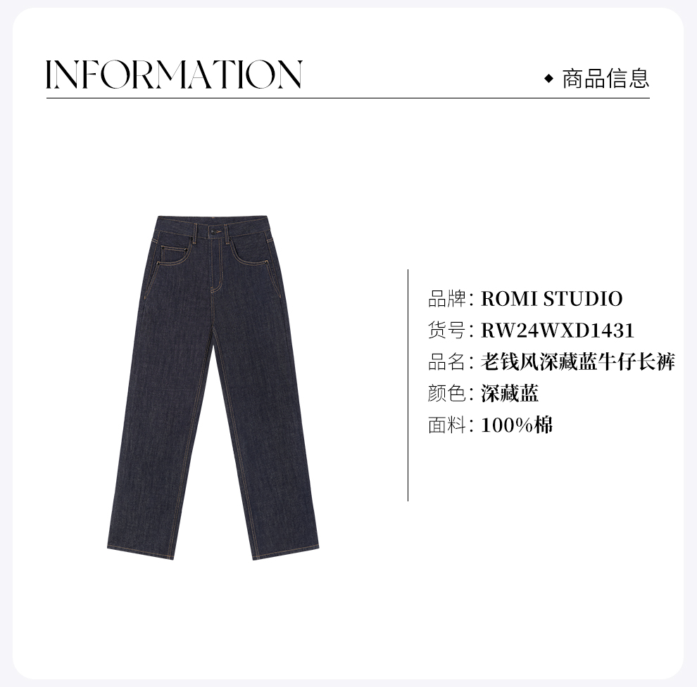 ROMI STUDIO“率性丹宁”100%长绒竹节棉绳染直筒牛仔裤RW24WXD1431