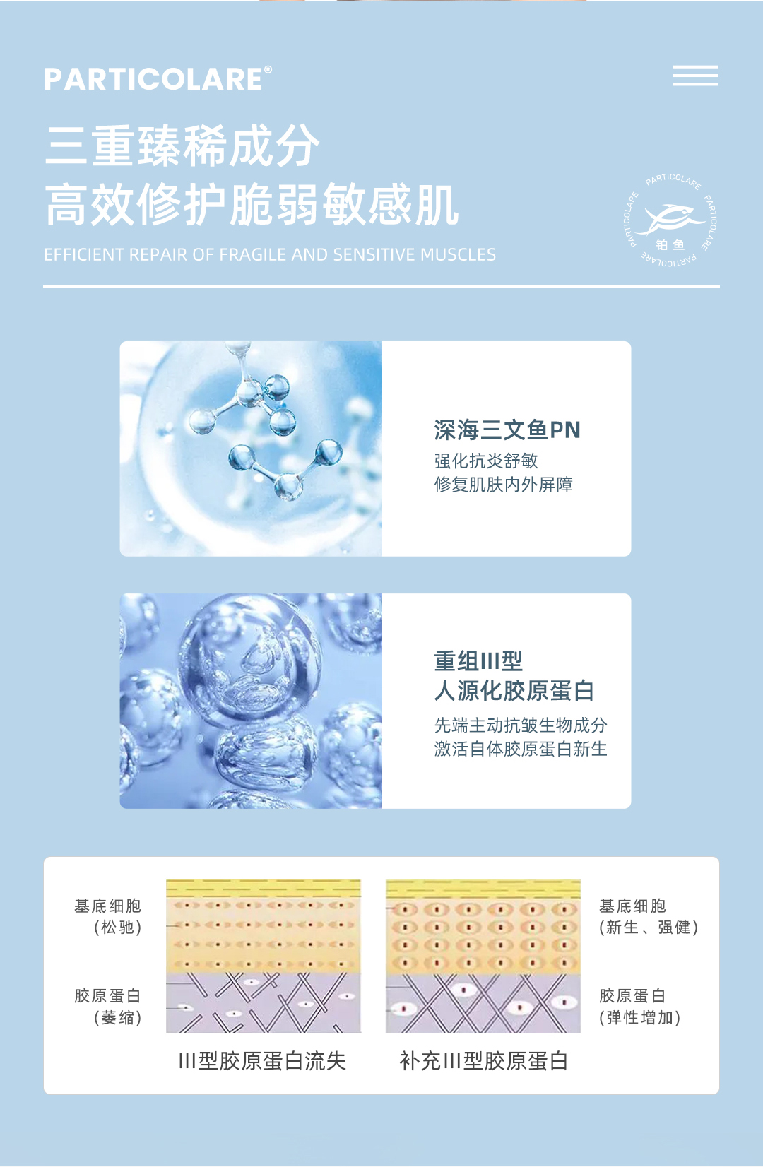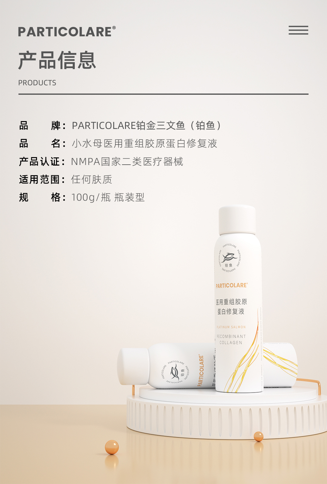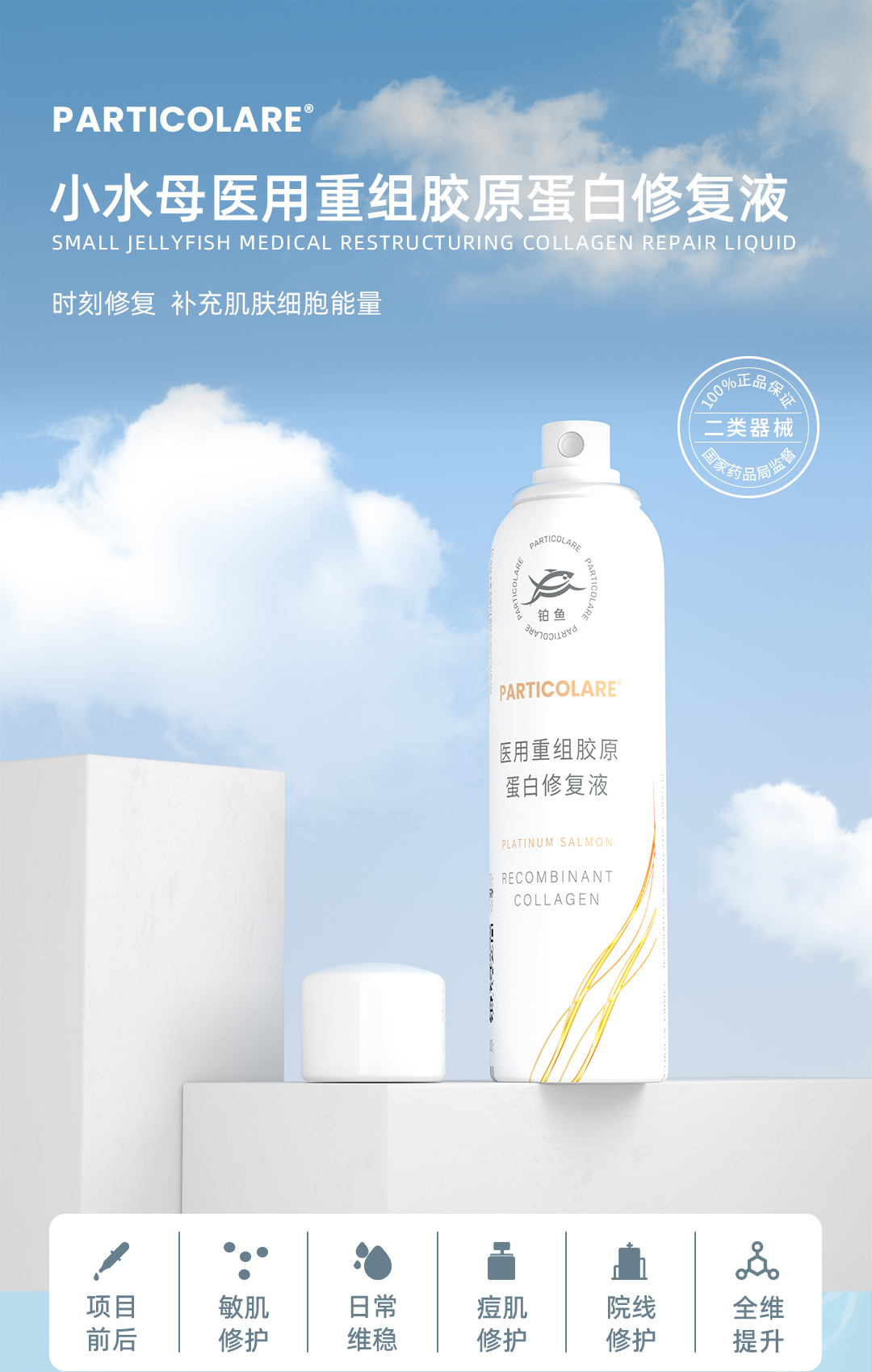 铂鱼铂金三文鱼小水母医用重组胶原蛋白修复液喷雾创面愈合肌肤修护抗敏感补水