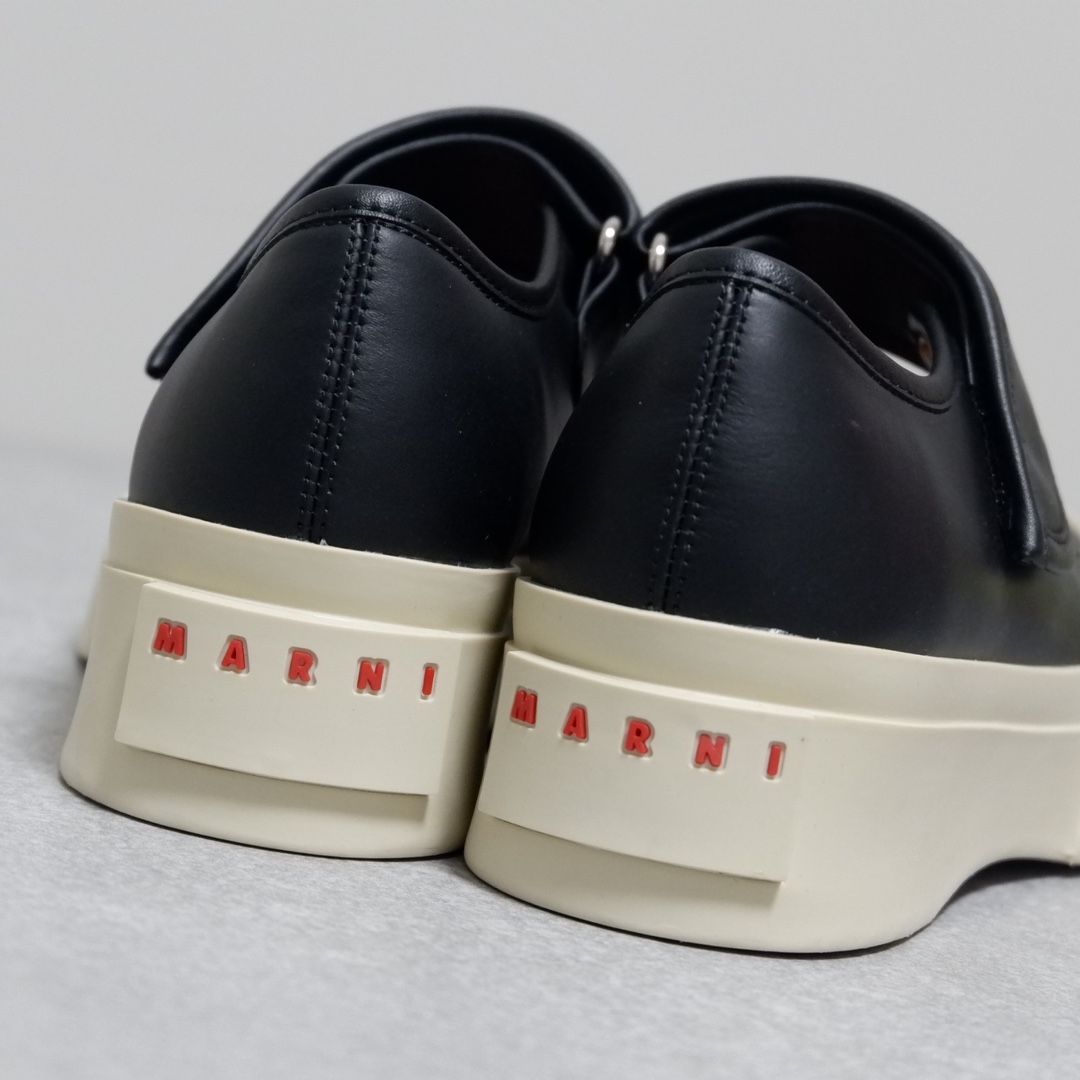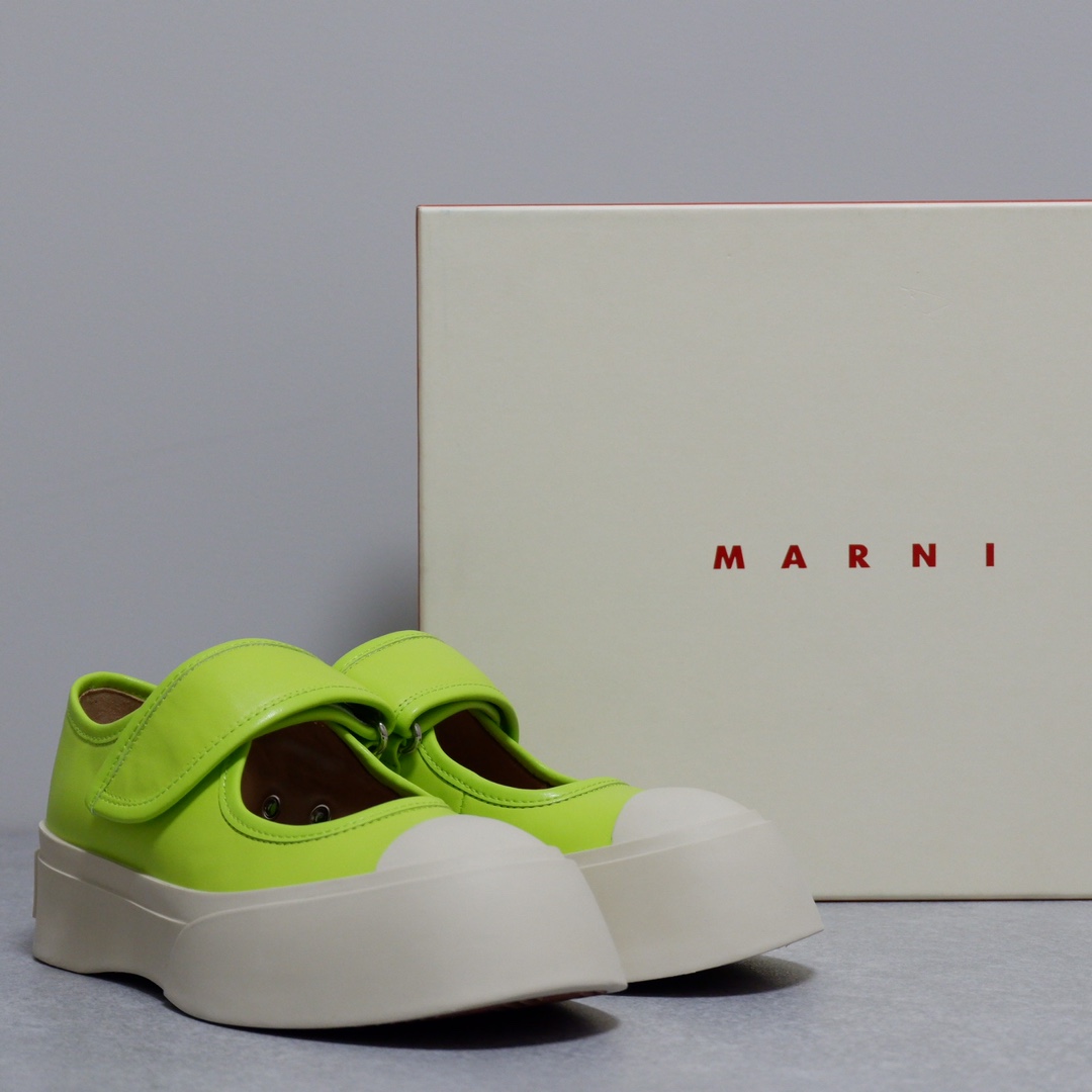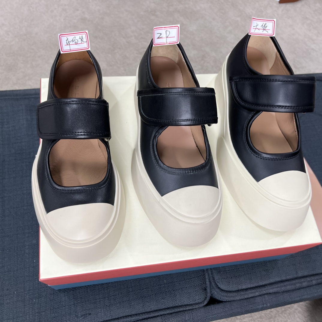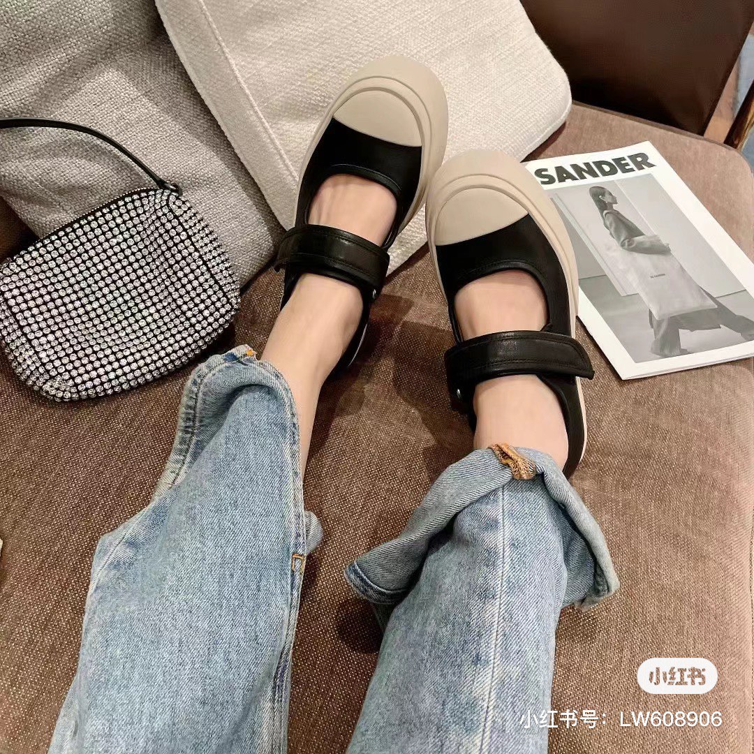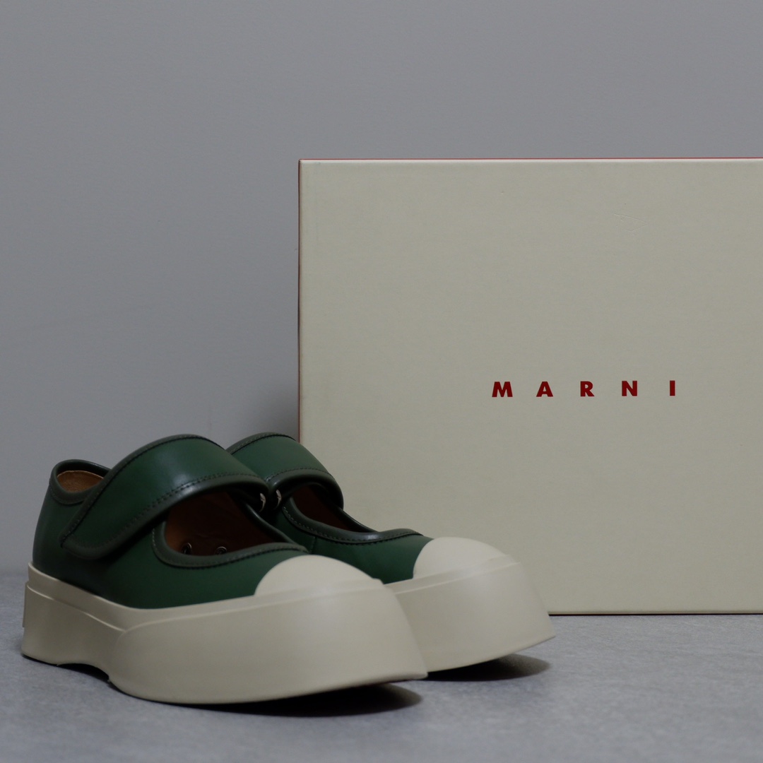 MARNI 玛尼最新款大头女鞋,非常显高档又舒适,白色黑色都好打理,脚感非常好,完全不打脚,主要是很显脚细哦!还可以增高,鞋头大大的还有一种卖萌的感觉,让人忍不住的想摸,非常百搭,没有它搭配不了的,原版特定牛皮材质,内里羊皮,鞋垫羊皮,独家开模大底 鞋头圆圆的 鞋底是增高的,搭配裙子 裤子都可以 可甜可酷 显个高 显腿瘦长。在增高的基础上,也不失去时尚感脚感很舒适,属于那种越穿越柔软的鞋。 总觉得厚底鞋会显得特别笨重,没想到上脚超级棒很秀气,而且很轻 最重要的是皮面超级好打理 湿巾纸擦擦就干净了 美美地出门看电影去