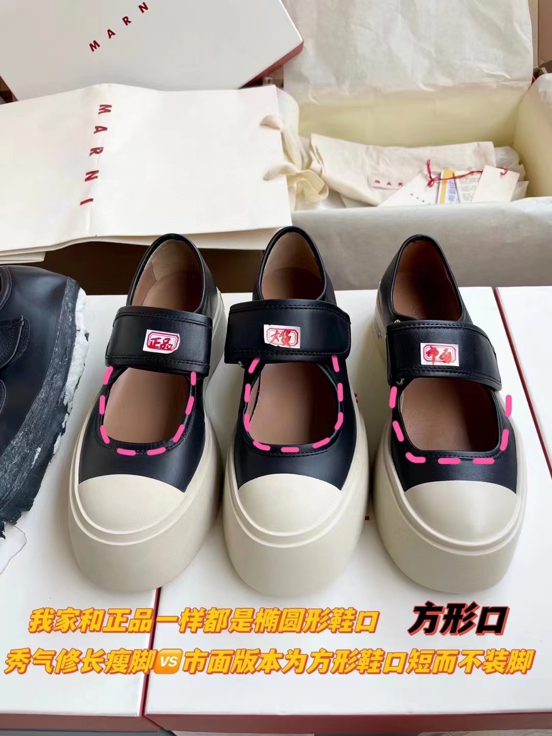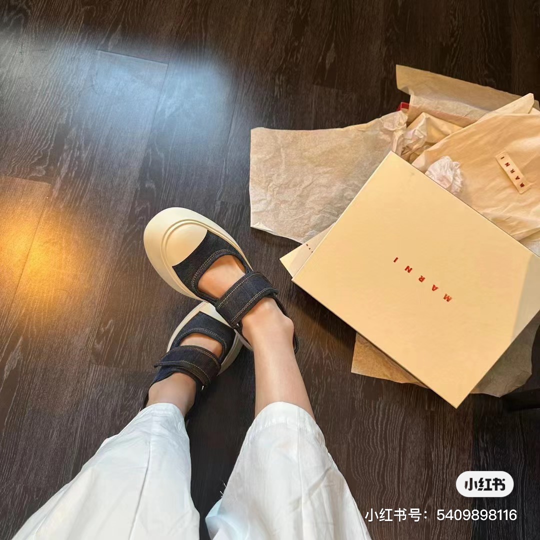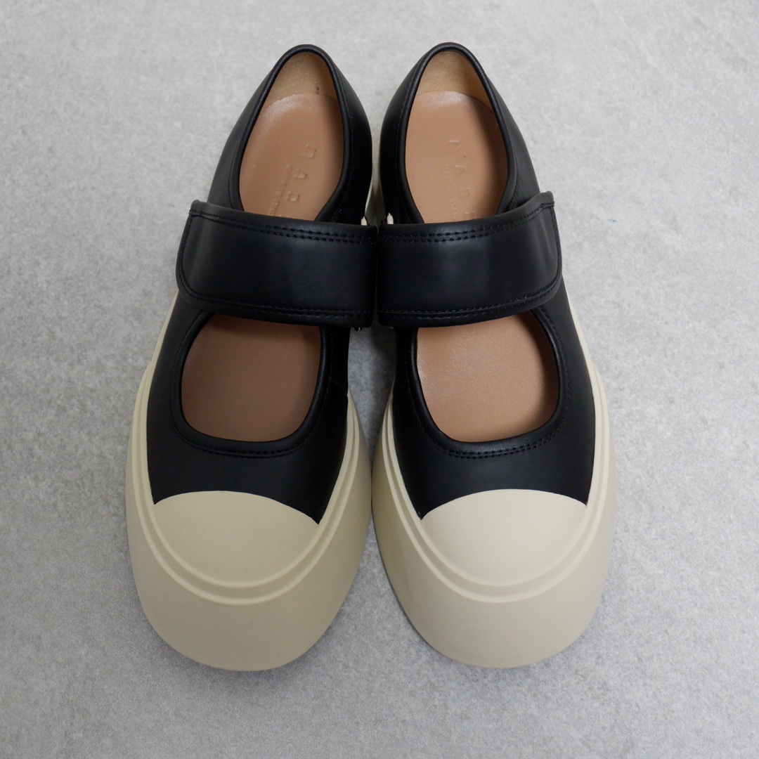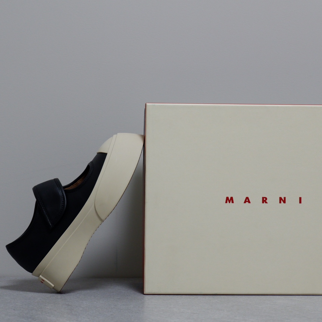 MARNI 玛尼最新款大头女鞋,非常显高档又舒适,白色黑色都好打理,脚感非常好,完全不打脚,主要是很显脚细哦!还可以增高,鞋头大大的还有一种卖萌的感觉,让人忍不住的想摸,非常百搭,没有它搭配不了的,原版特定牛皮材质,内里羊皮,鞋垫羊皮,独家开模大底 鞋头圆圆的 鞋底是增高的,搭配裙子 裤子都可以 可甜可酷 显个高 显腿瘦长。在增高的基础上,也不失去时尚感脚感很舒适,属于那种越穿越柔软的鞋。 总觉得厚底鞋会显得特别笨重,没想到上脚超级棒很秀气,而且很轻 最重要的是皮面超级好打理 湿巾纸擦擦就干净了 美美地出门看电影去