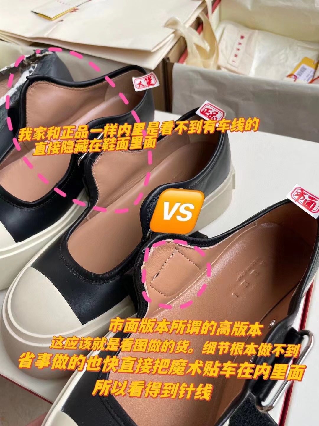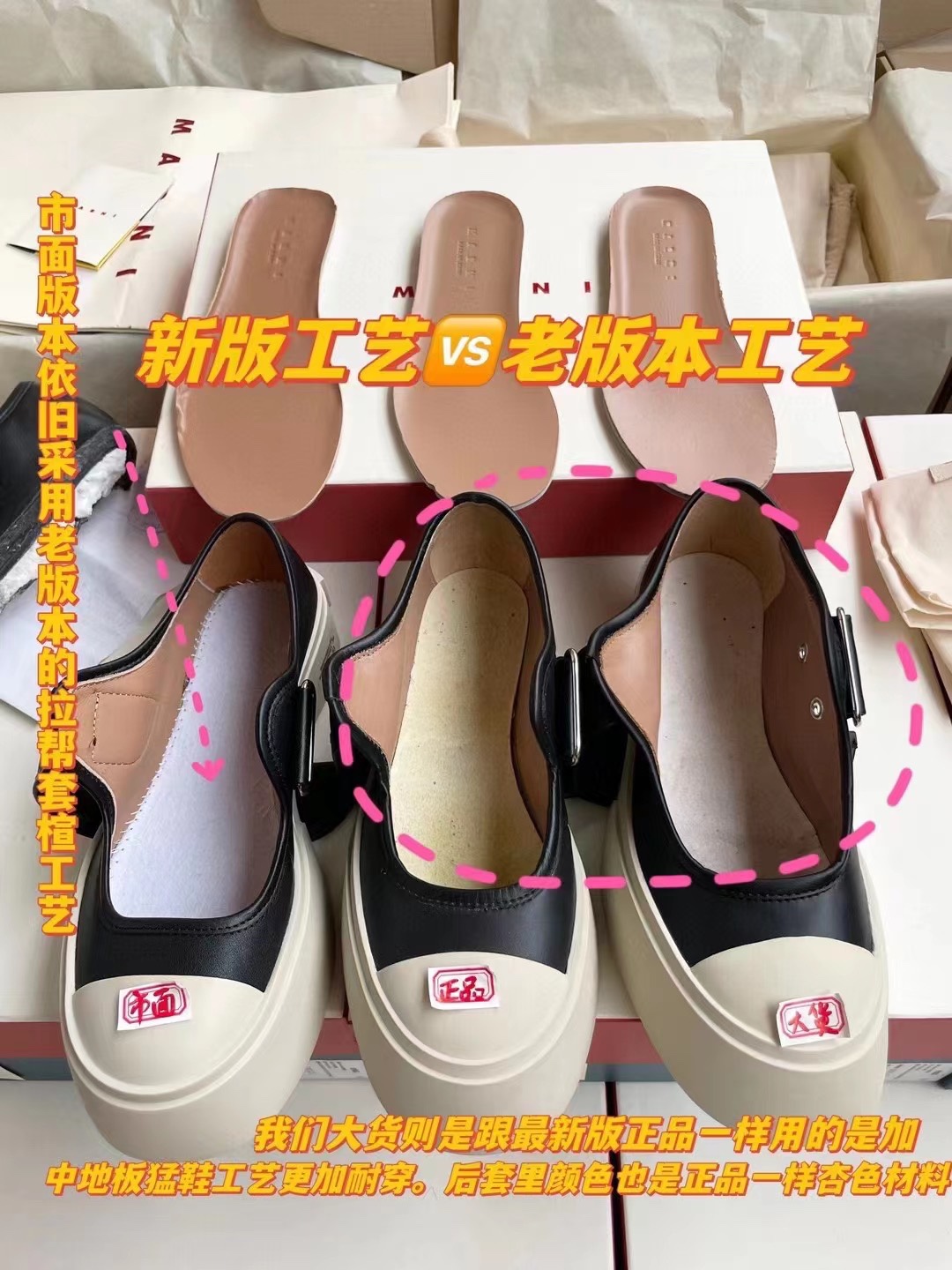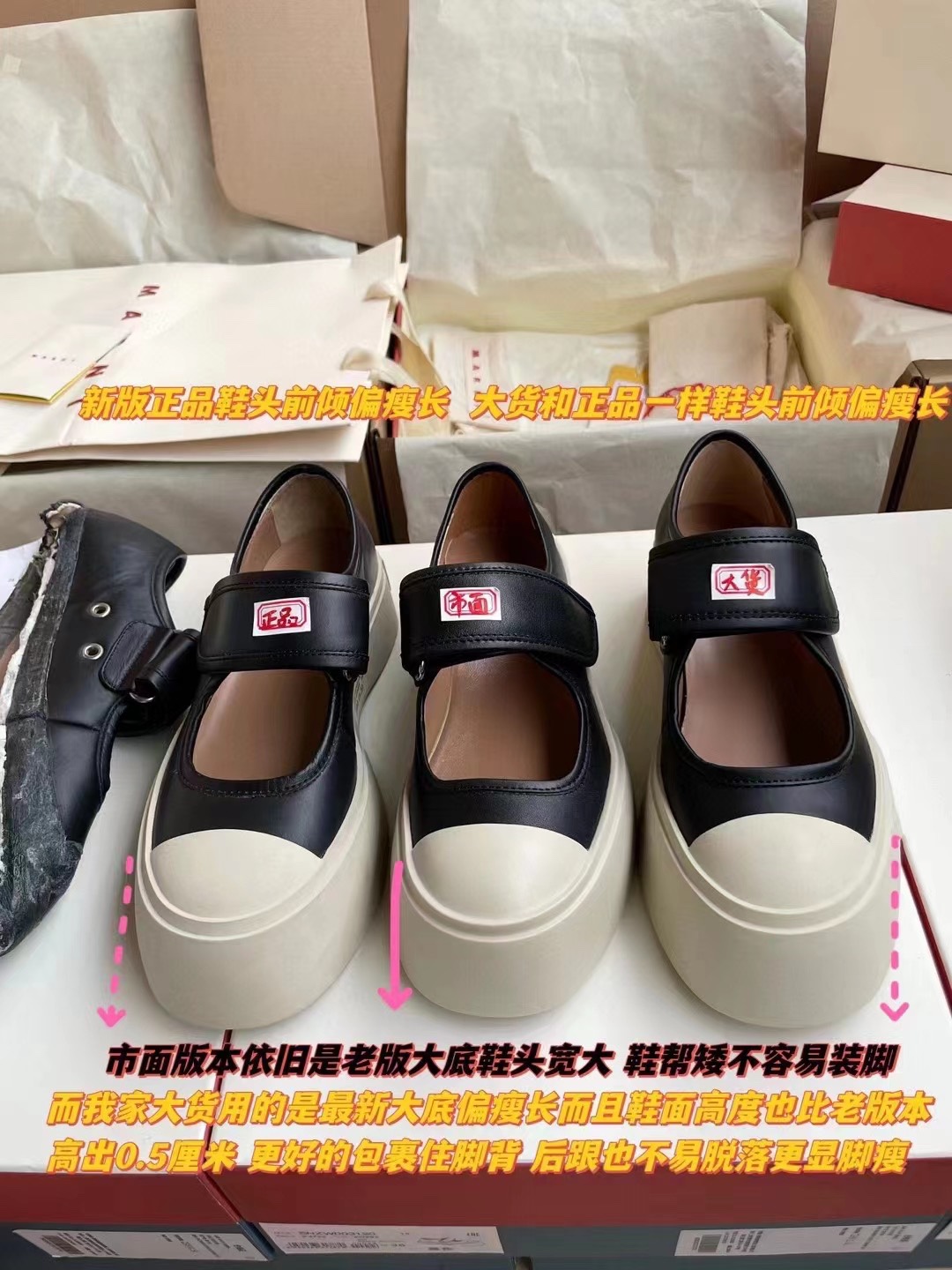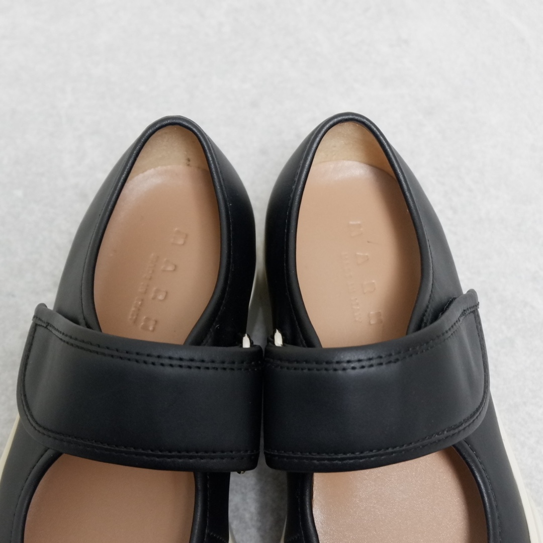 MARNI 玛尼最新款大头女鞋,非常显高档又舒适,白色黑色都好打理,脚感非常好,完全不打脚,主要是很显脚细哦!还可以增高,鞋头大大的还有一种卖萌的感觉,让人忍不住的想摸,非常百搭,没有它搭配不了的,原版特定牛皮材质,内里羊皮,鞋垫羊皮,独家开模大底 鞋头圆圆的 鞋底是增高的,搭配裙子 裤子都可以 可甜可酷 显个高 显腿瘦长。在增高的基础上,也不失去时尚感脚感很舒适,属于那种越穿越柔软的鞋。 总觉得厚底鞋会显得特别笨重,没想到上脚超级棒很秀气,而且很轻 最重要的是皮面超级好打理 湿巾纸擦擦就干净了 美美地出门看电影去