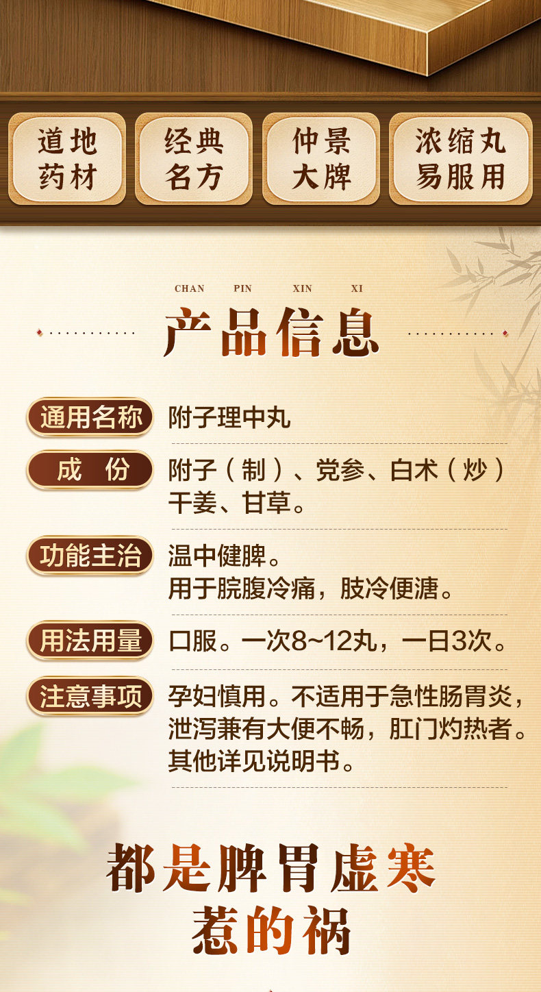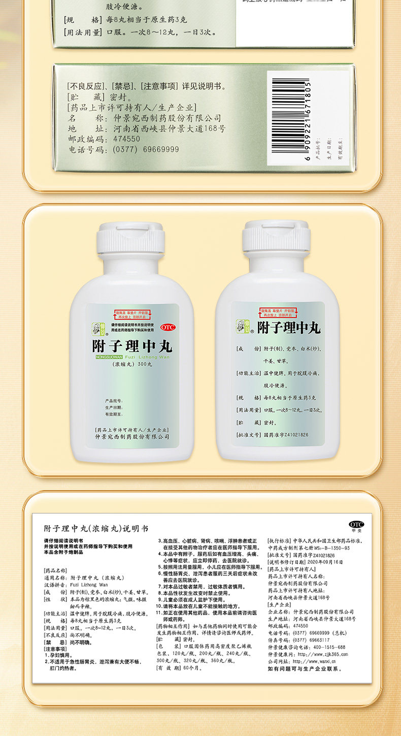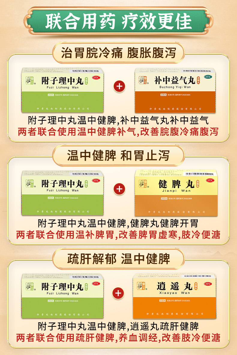 仲景附子理中丸200丸浓缩丸脾胃虚寒调理腹泻健脾拉肚子中药药品