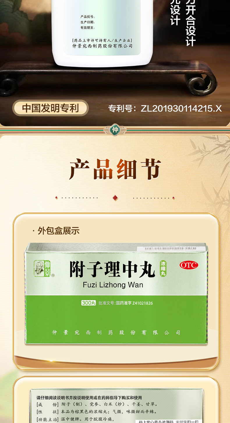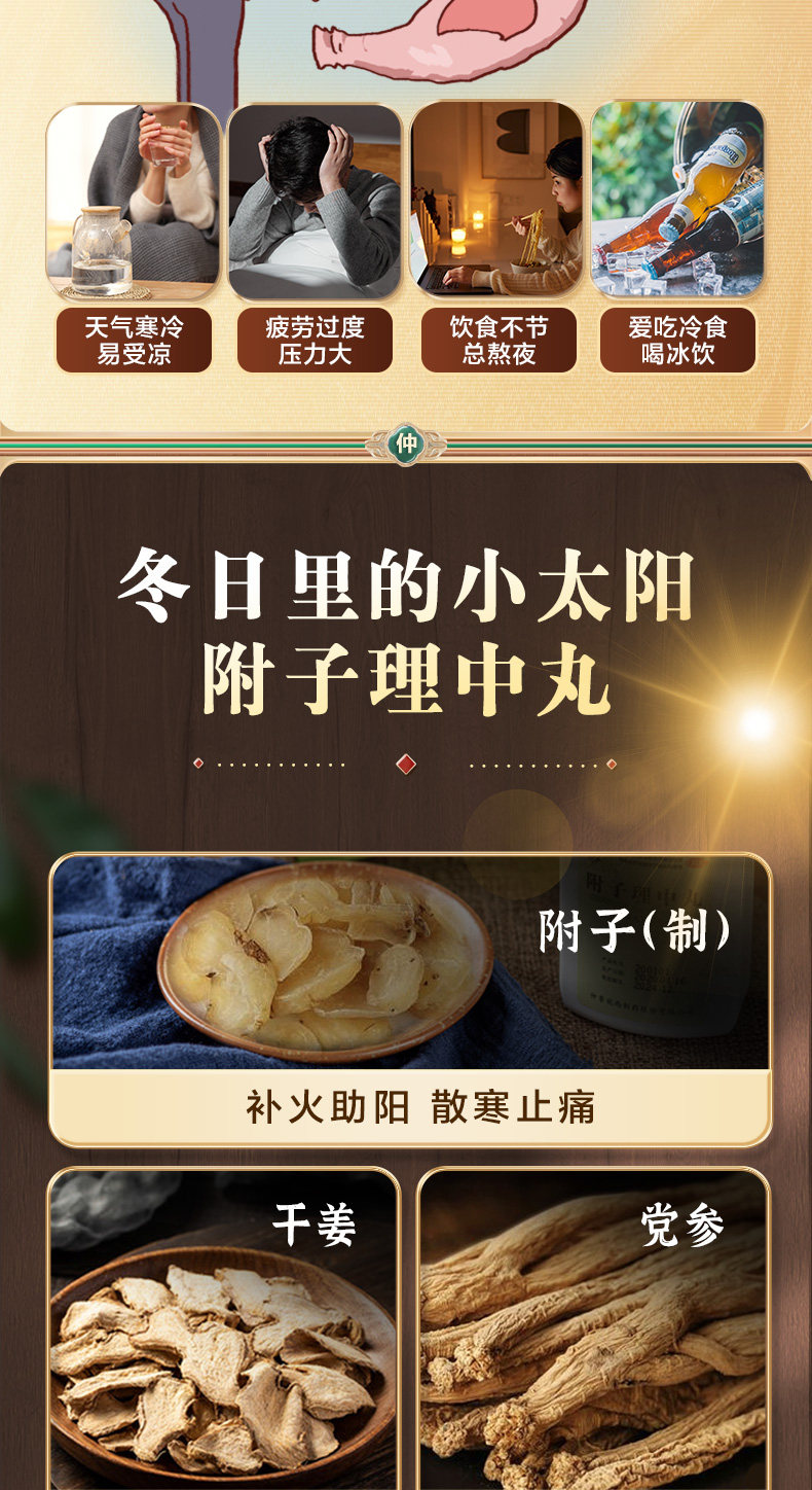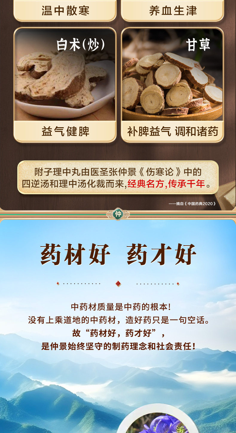 仲景附子理中丸200丸浓缩丸脾胃虚寒调理腹泻健脾拉肚子中药药品