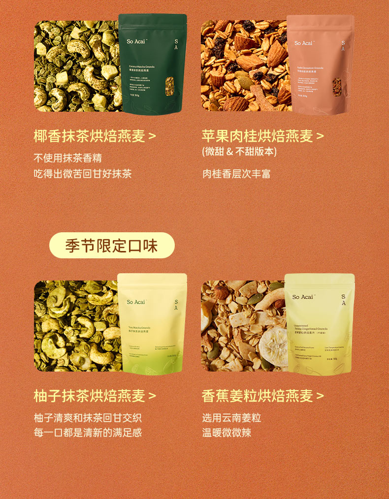 SOACAI烘焙燕麦片健康即食格兰诺拉坚果拌酸奶碗【解先森专属】