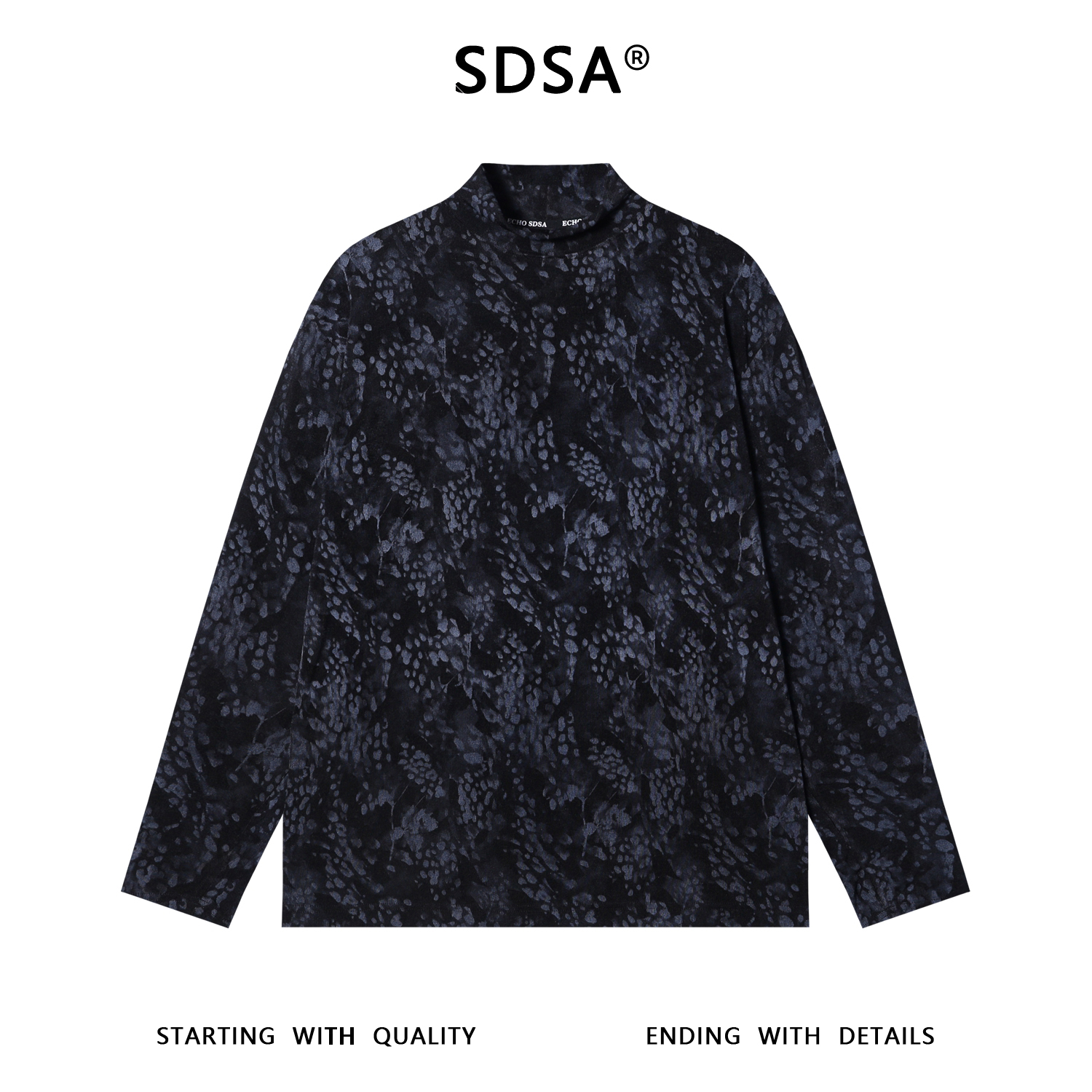 T4987SDSA男士秋冬新款痞帅男装泼墨手绘战马印花半高领长袖T恤百搭