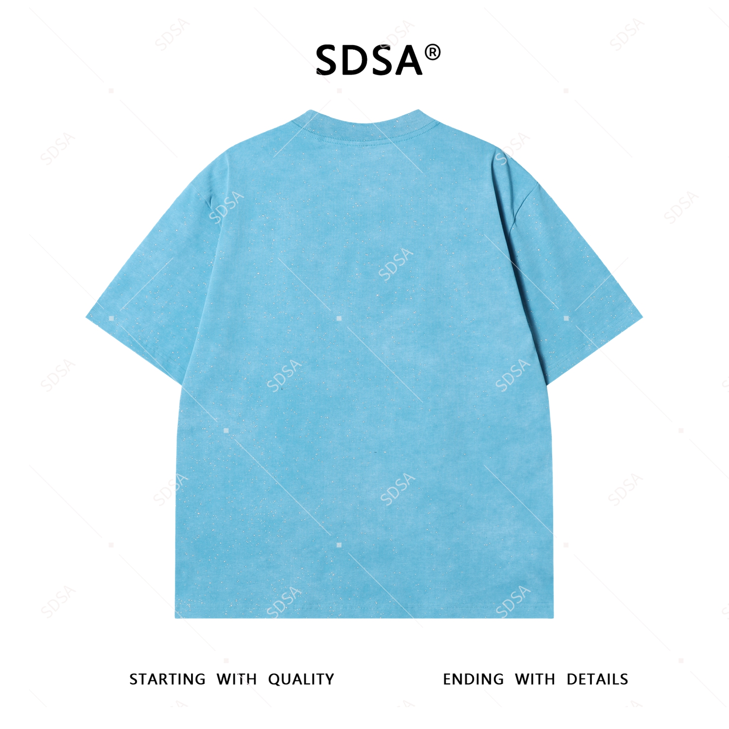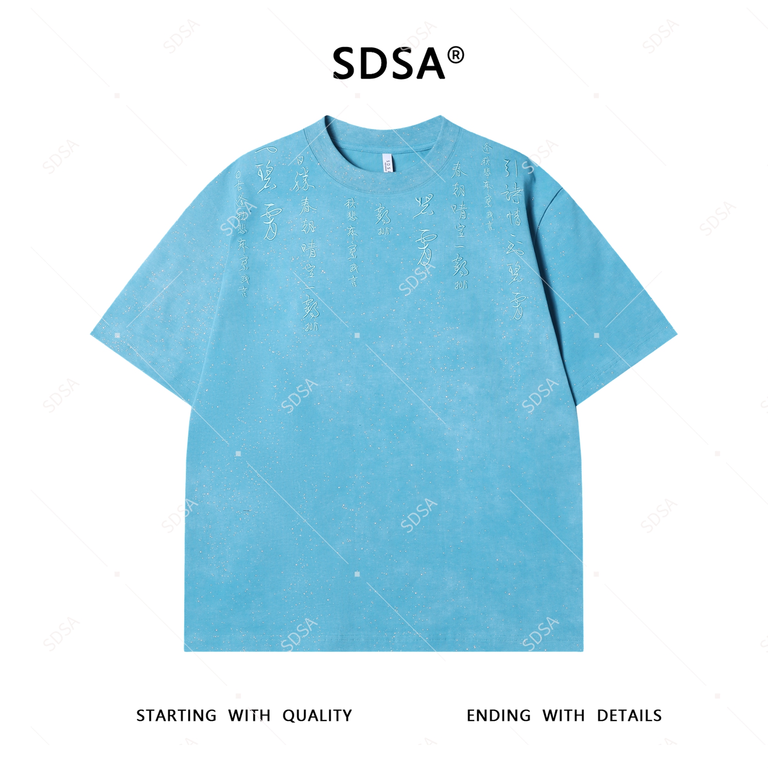 T3747夏季高级感新款男士扎染文字刺绣短袖T恤简约百搭圆领宽松上衣