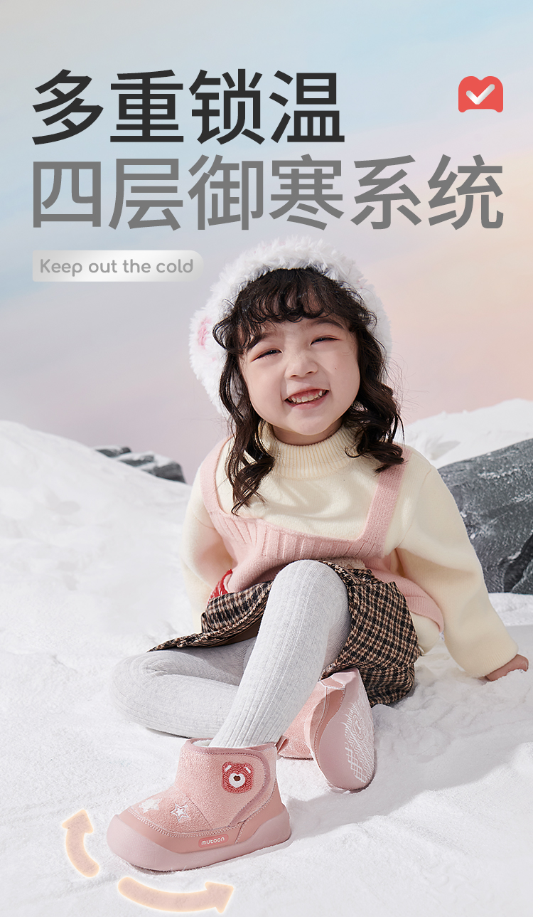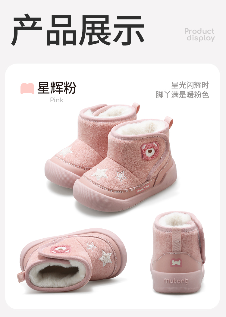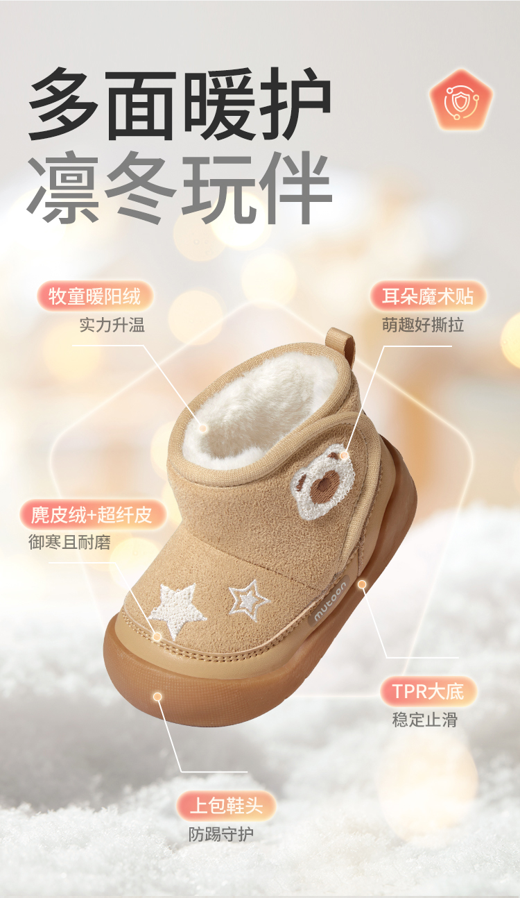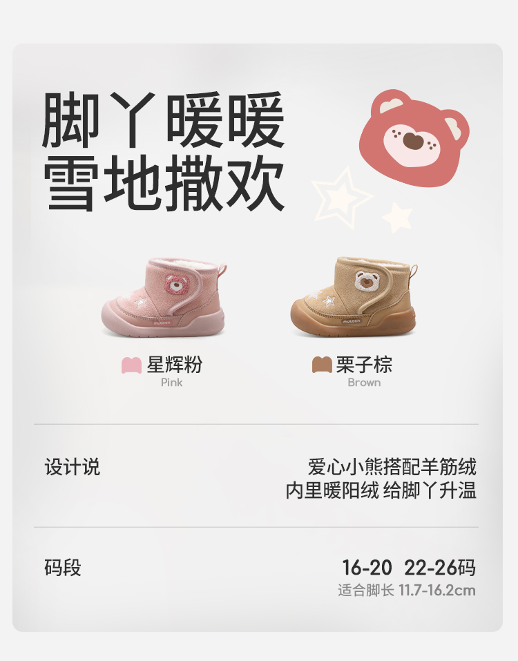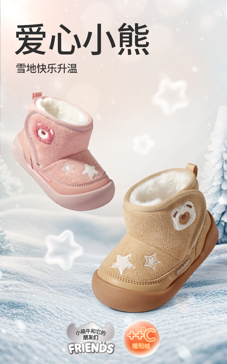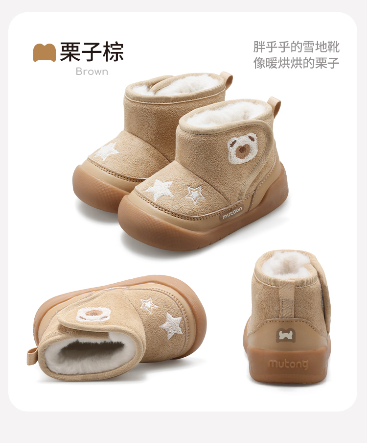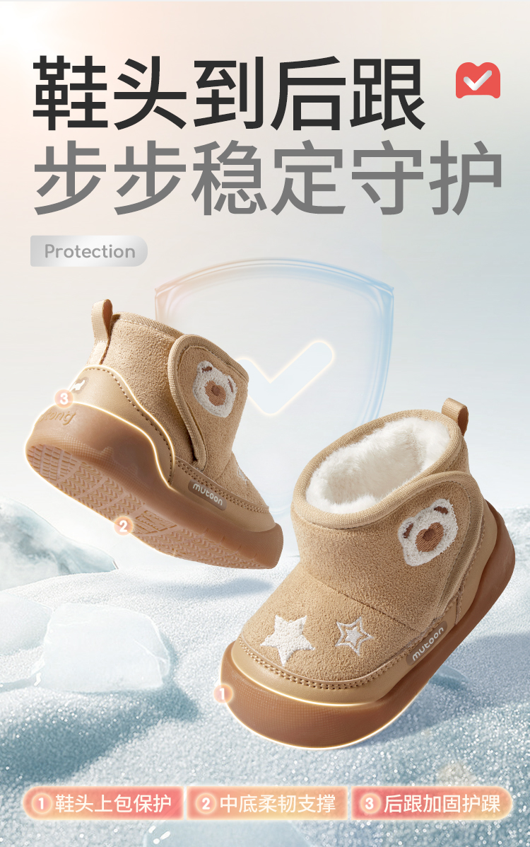 牧童童鞋宝宝学步鞋2025冬季新款男童小熊大棉鞋防滑加绒雪地靴女