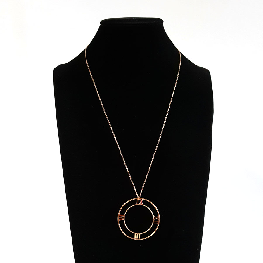 【95新】Tiffany & Co.蒂芙尼玫瑰金Atlas罗马数字镂空大圆盘长项链链长约61cm、吊坠直径约4.9cm中性款140226TJ02