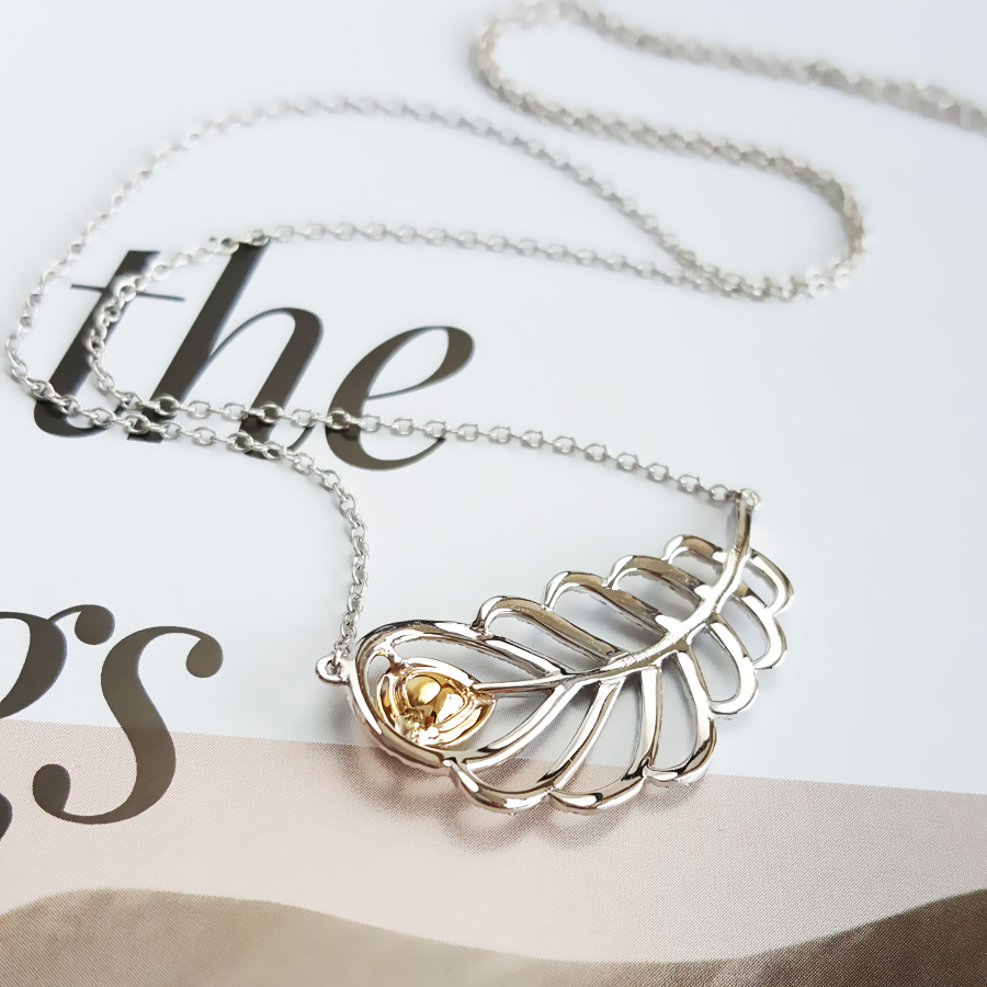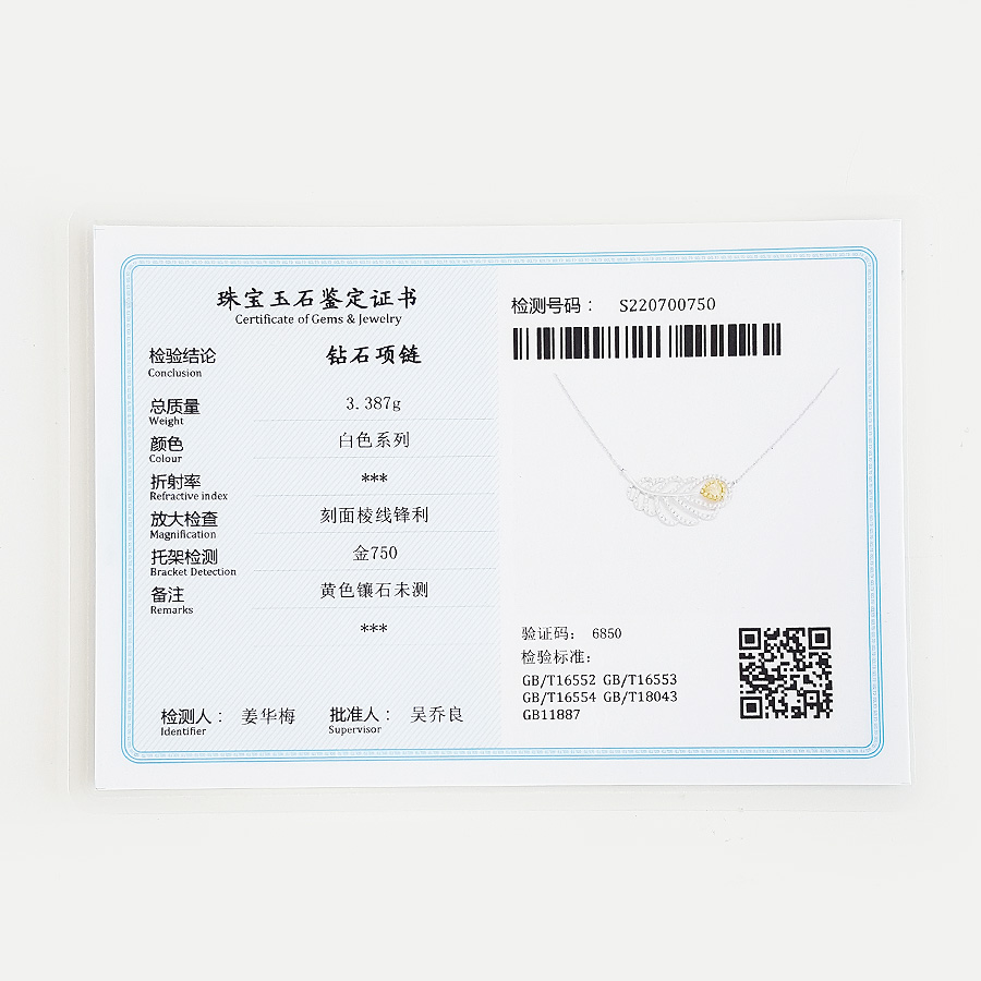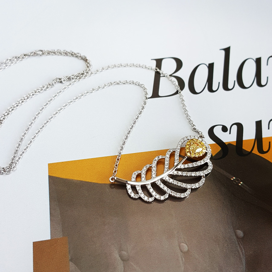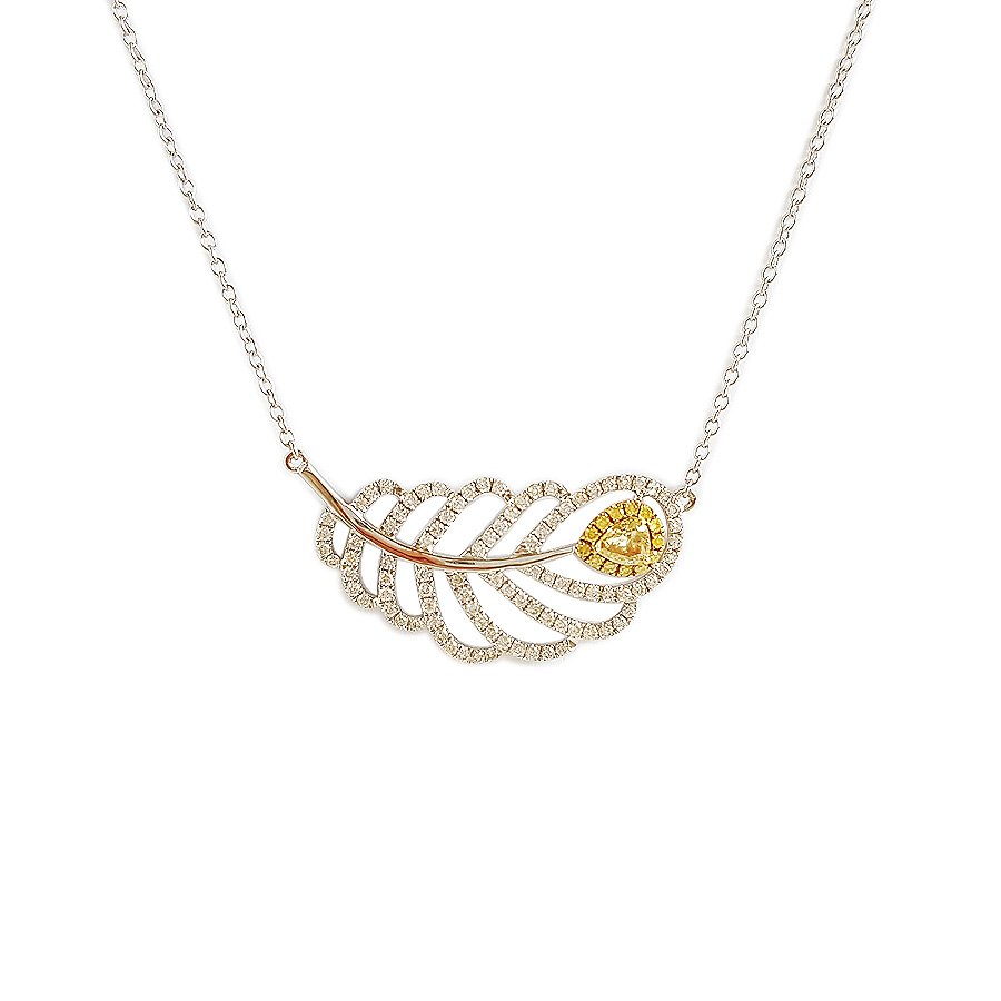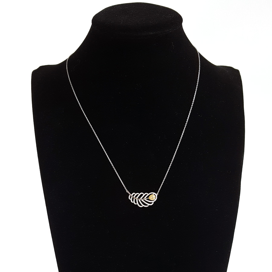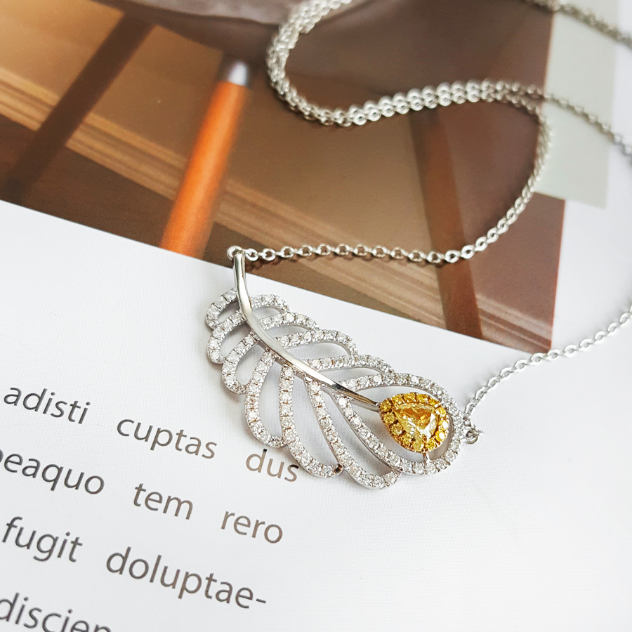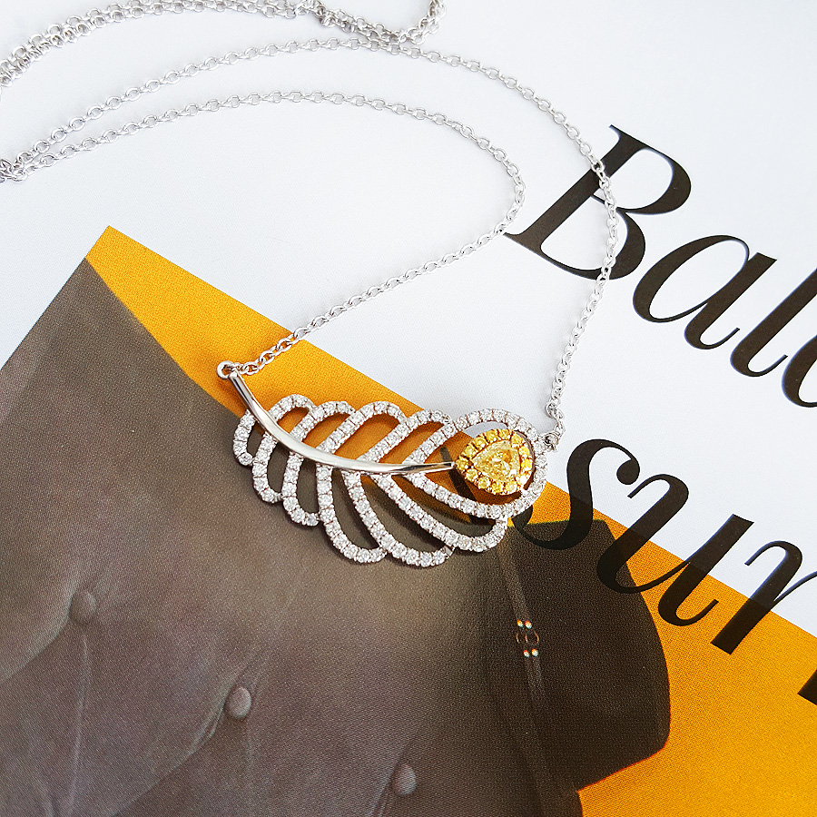 款式 | AU750白金时尚简约款0.190克拉羽毛造型钻石吊坠项链 |