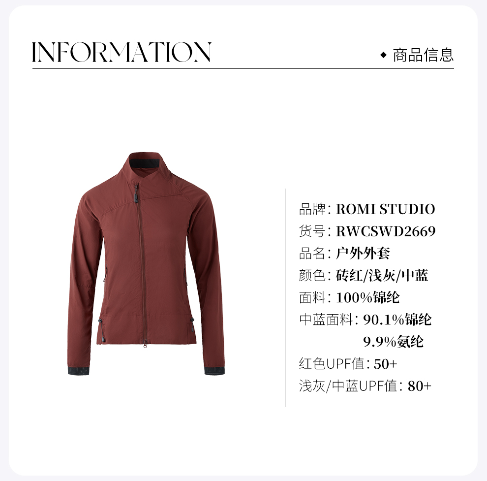 ROMI STUDIO 防晒UPF80轻量化超轻薄修身立领防晒外套RWCSWD2669