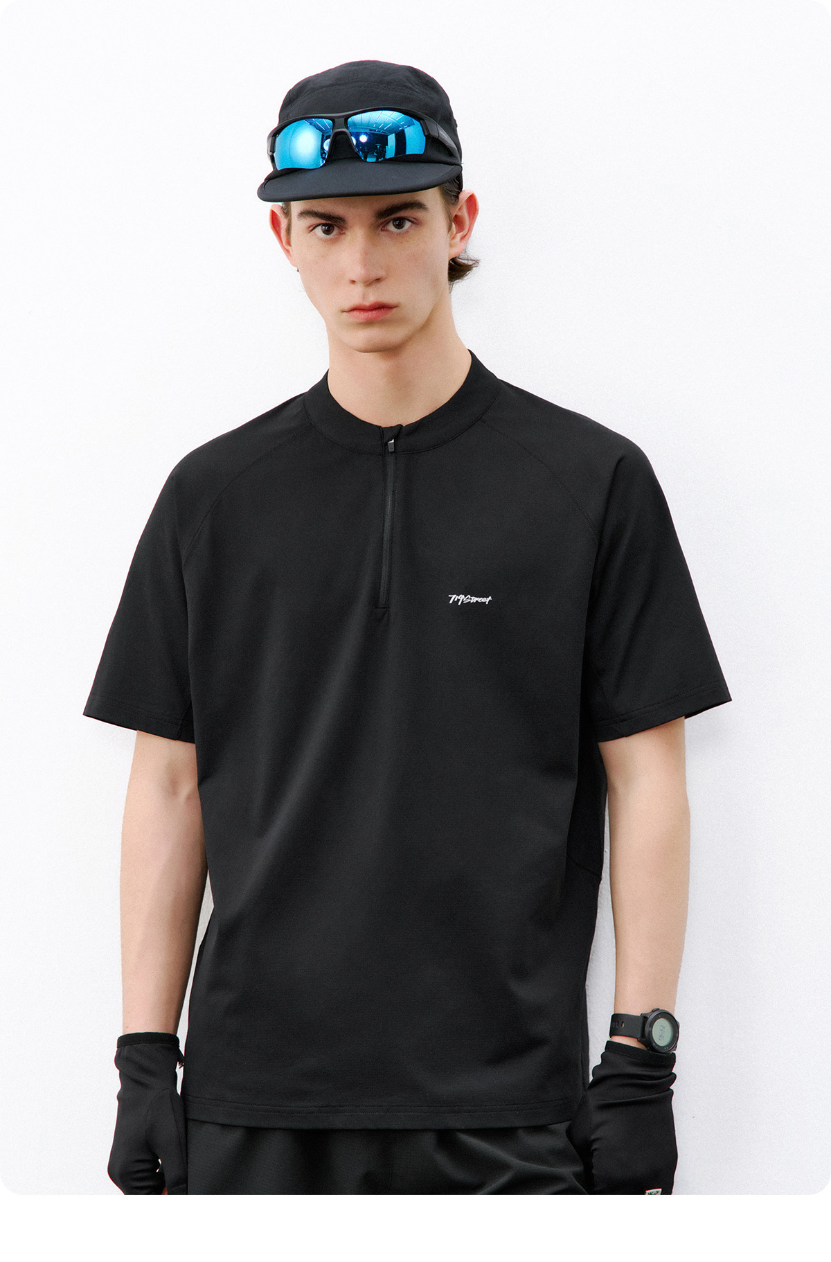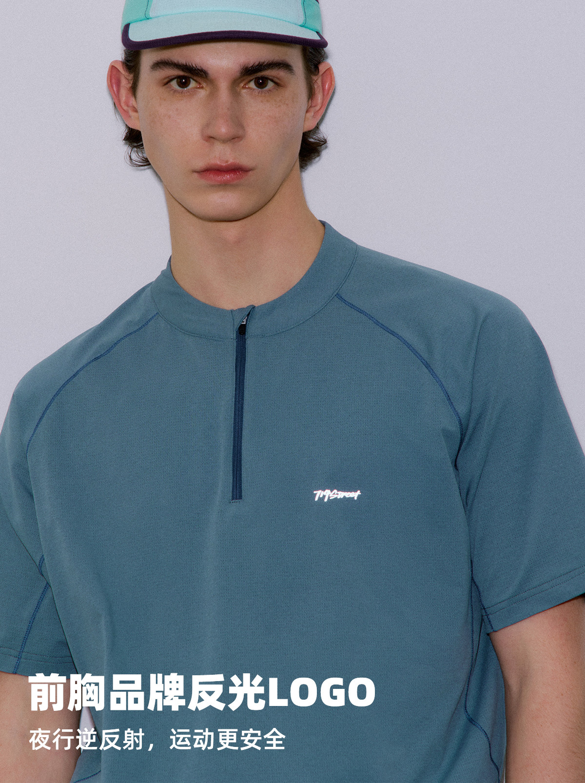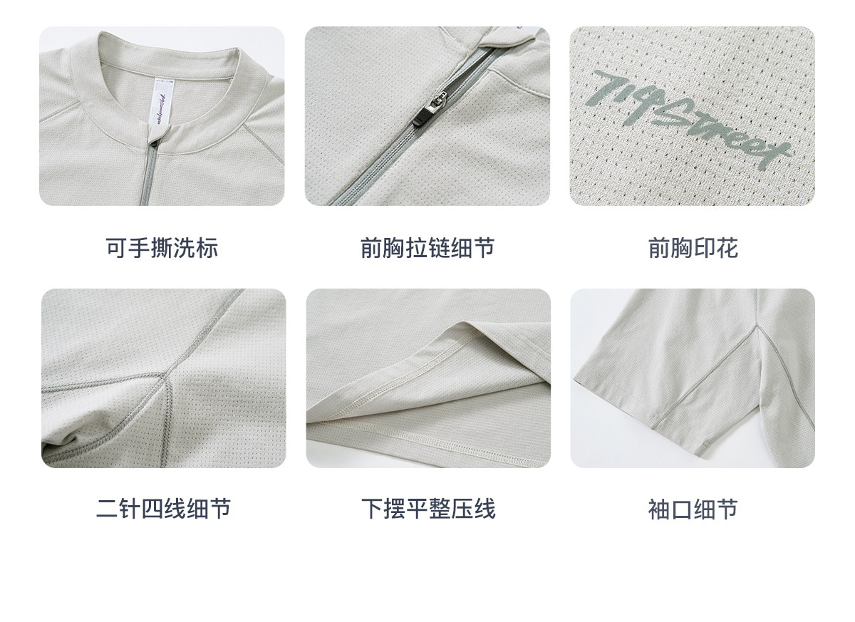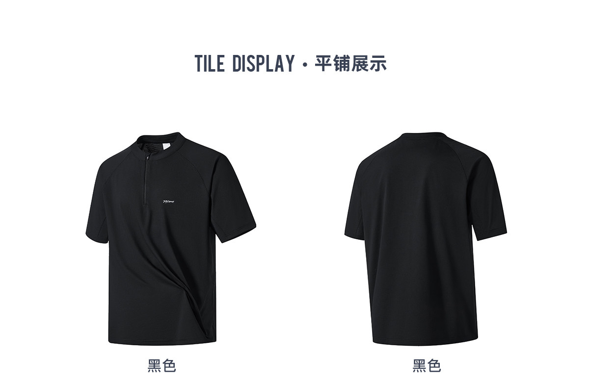 714street夏季吸湿速干健身服抗菌凉感运动短袖半拉链防晒T恤男款