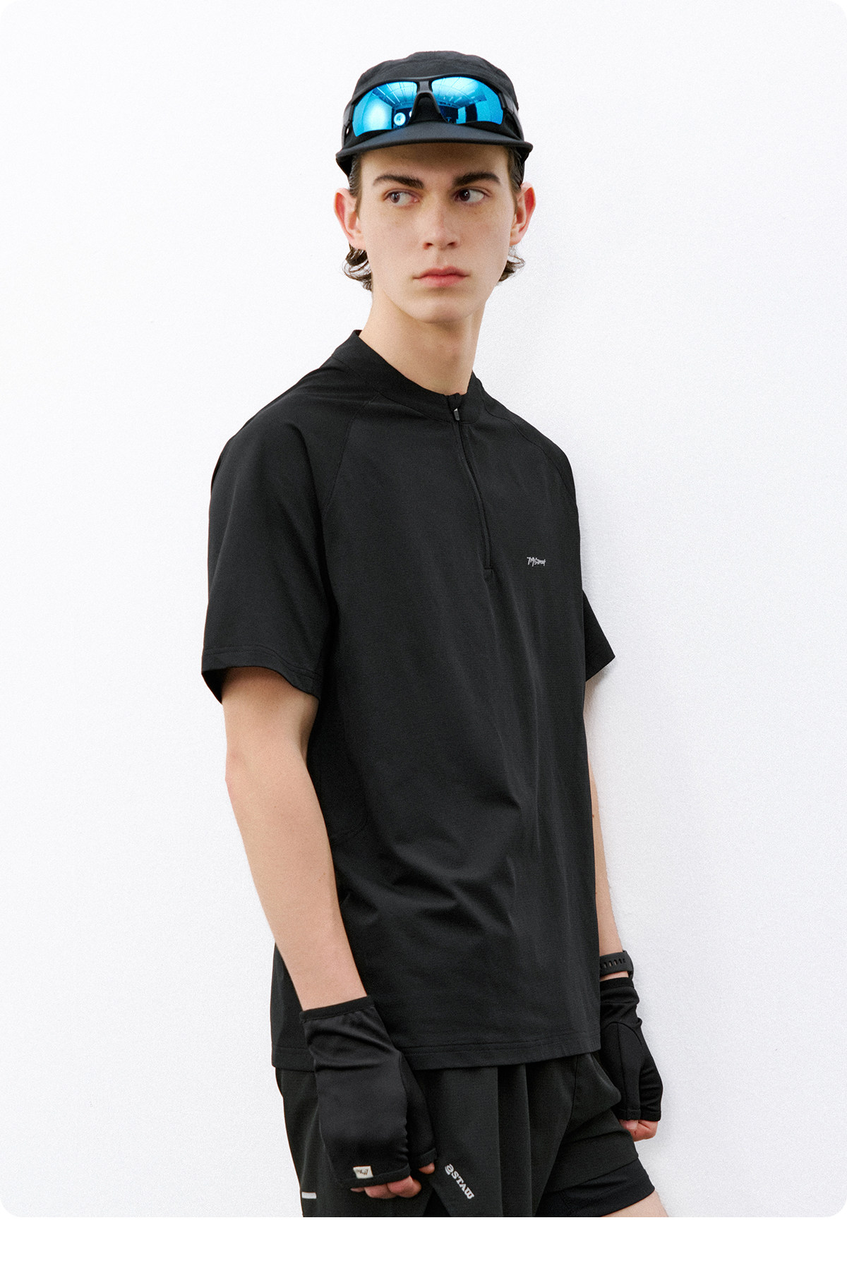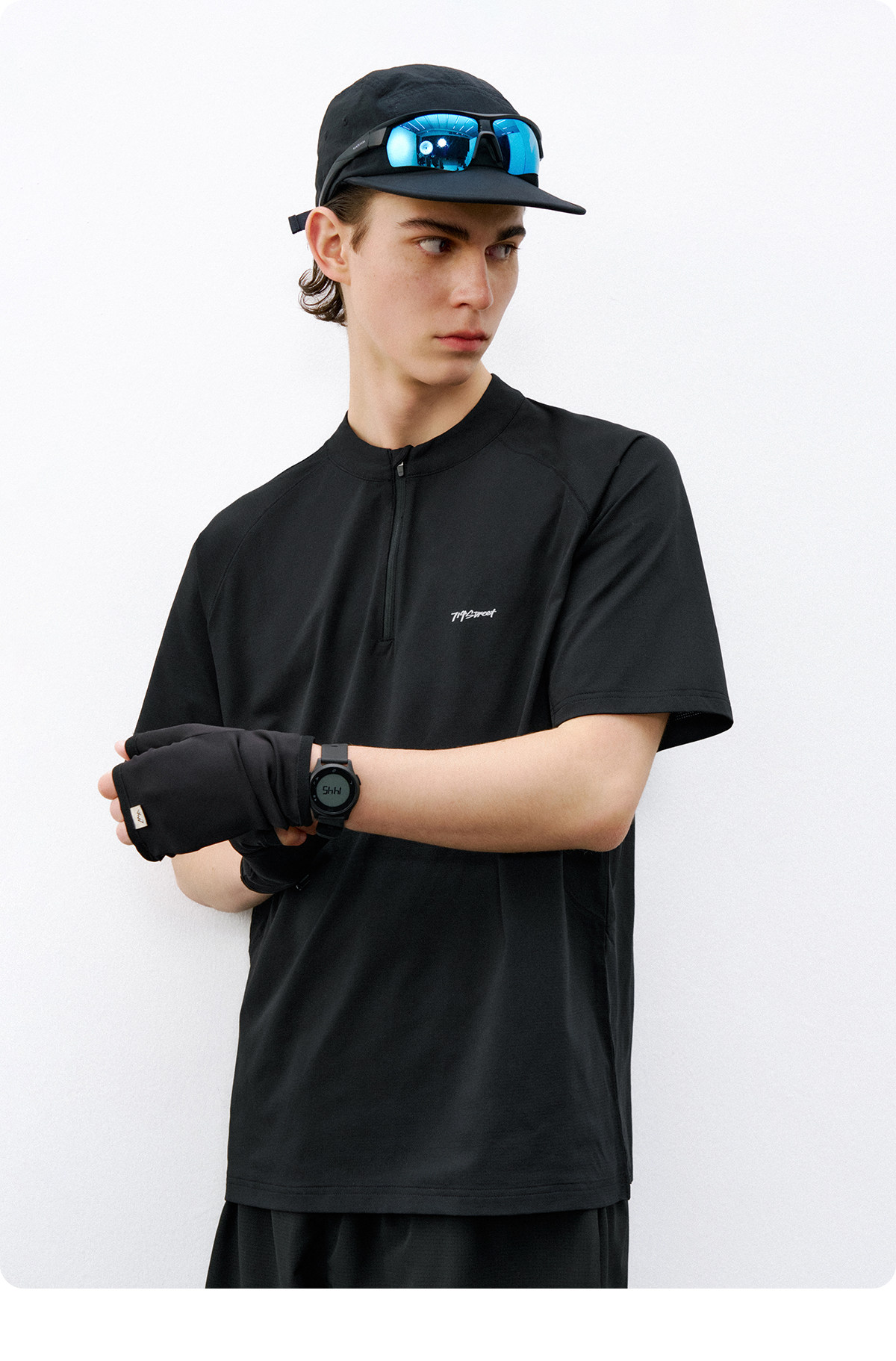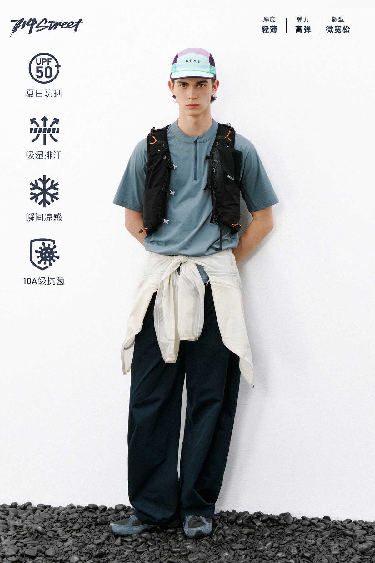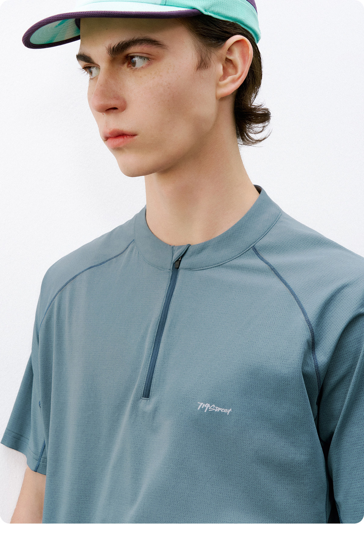 714street夏季吸湿速干健身服抗菌凉感运动短袖半拉链防晒T恤男款