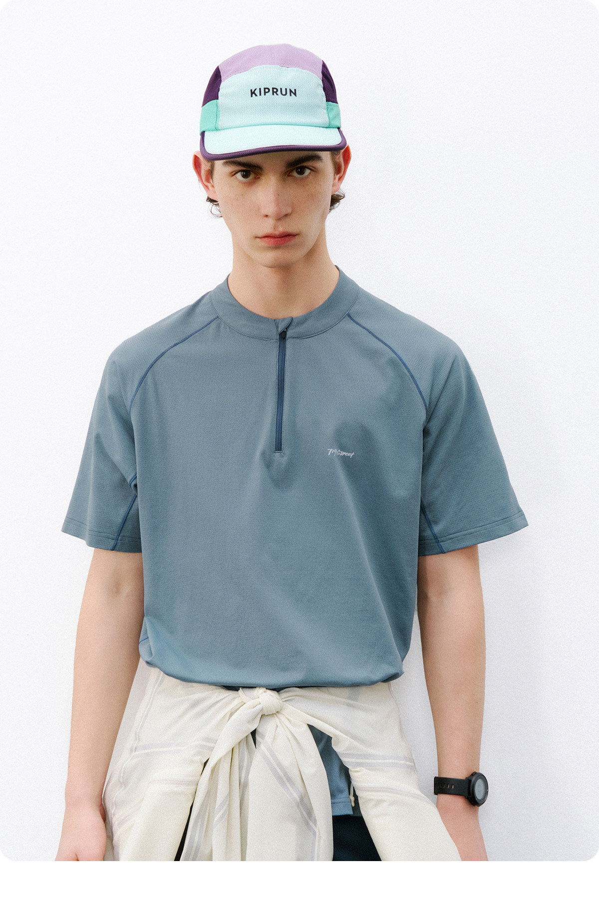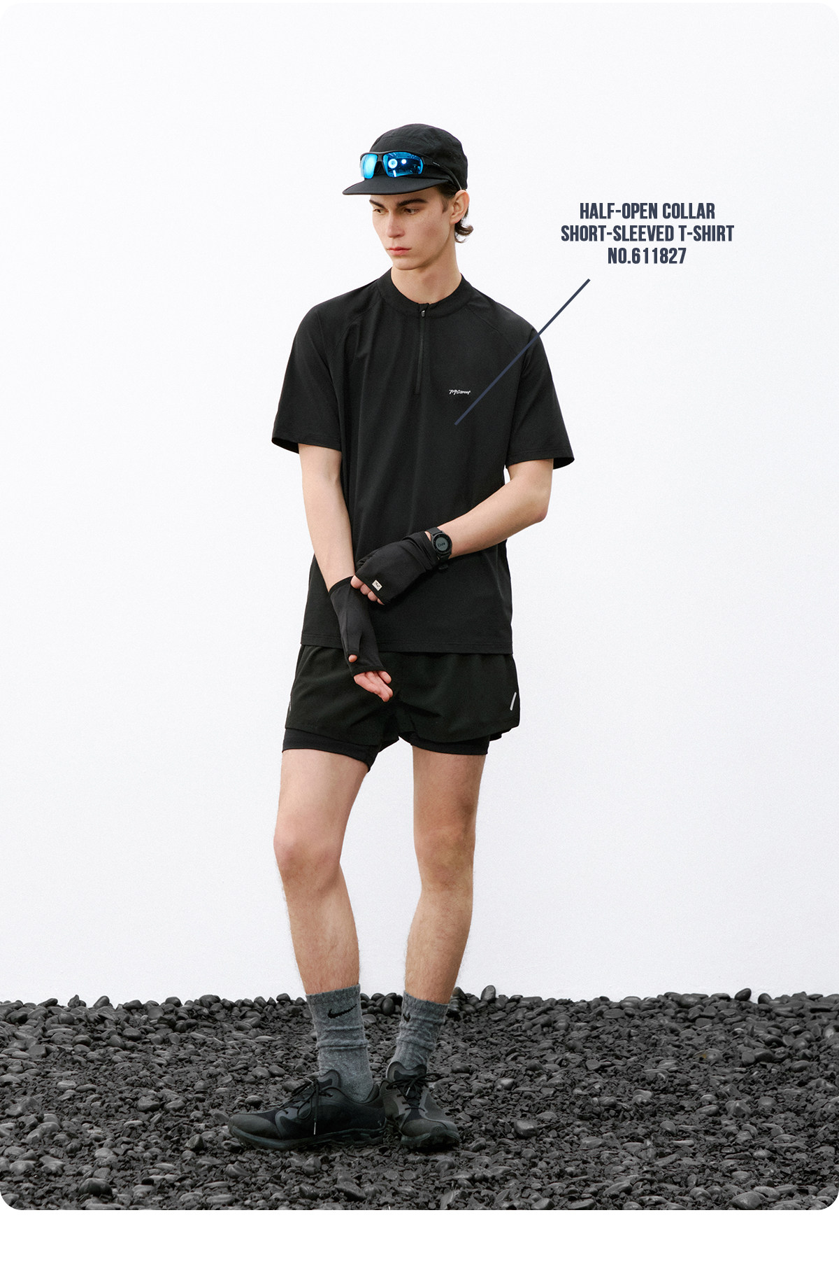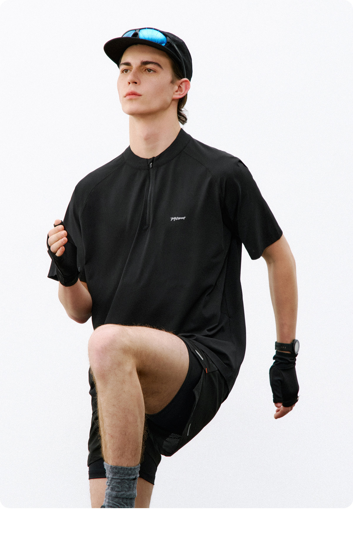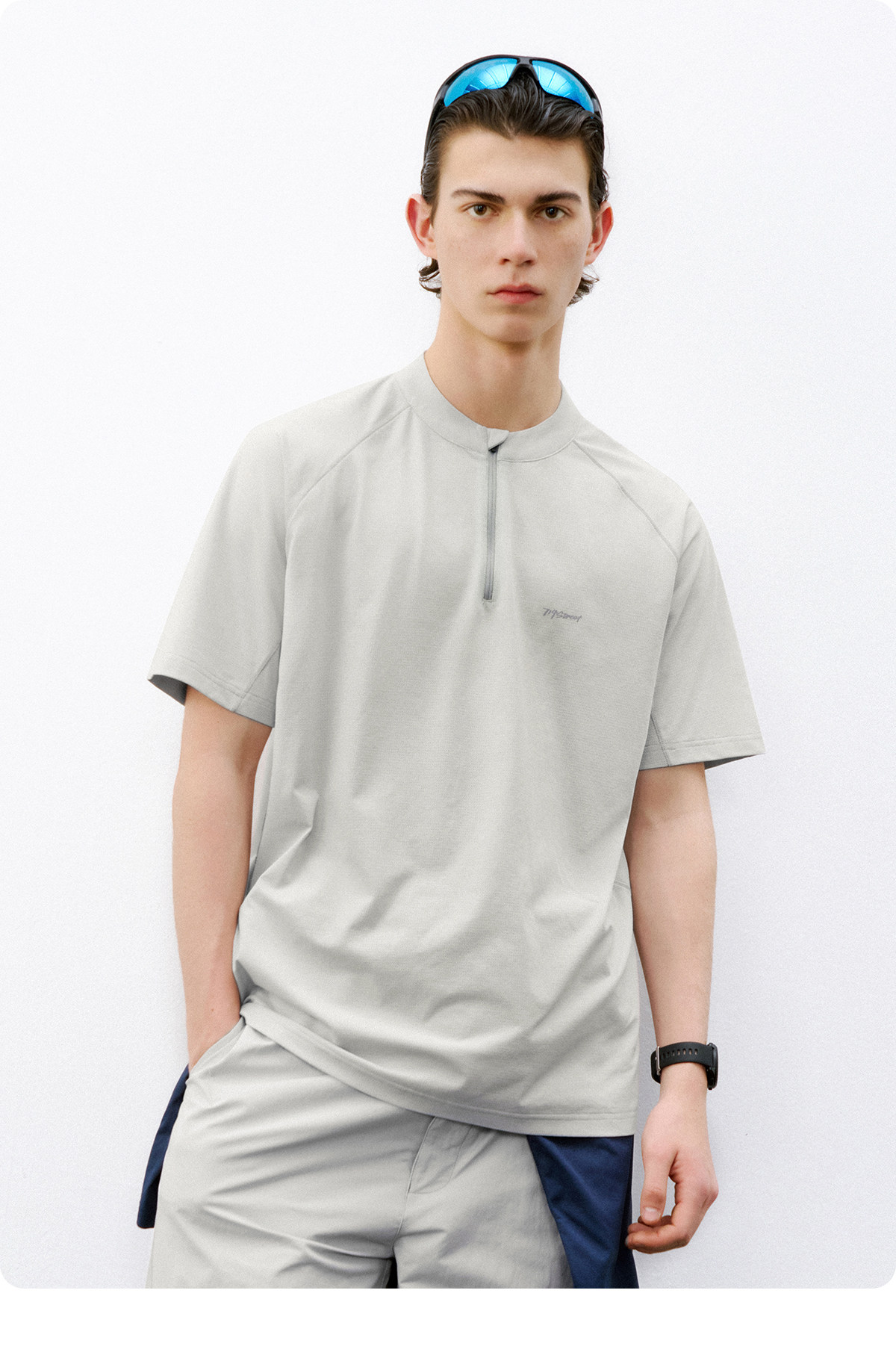 714street夏季吸湿速干健身服抗菌凉感运动短袖半拉链防晒T恤男款