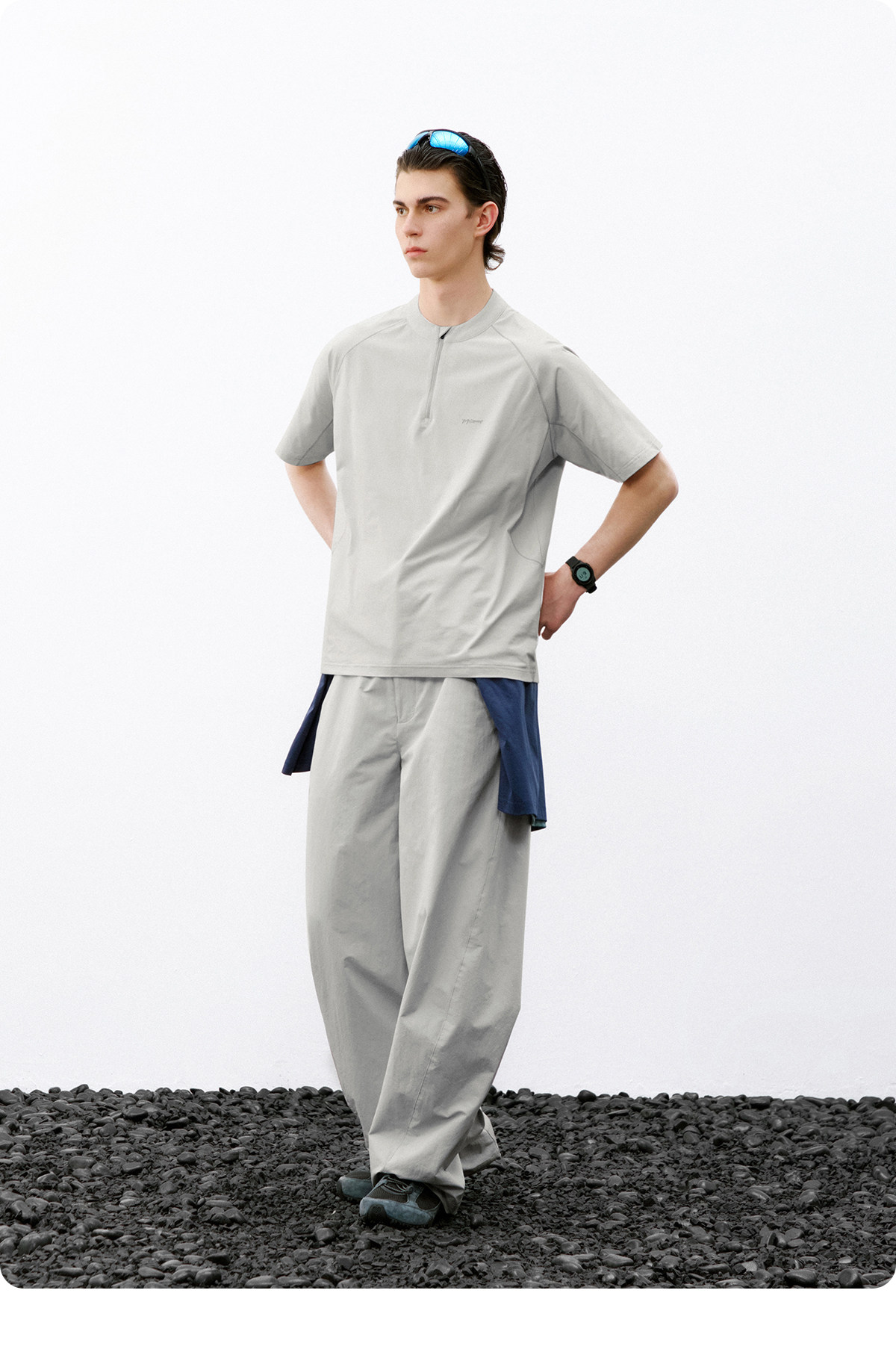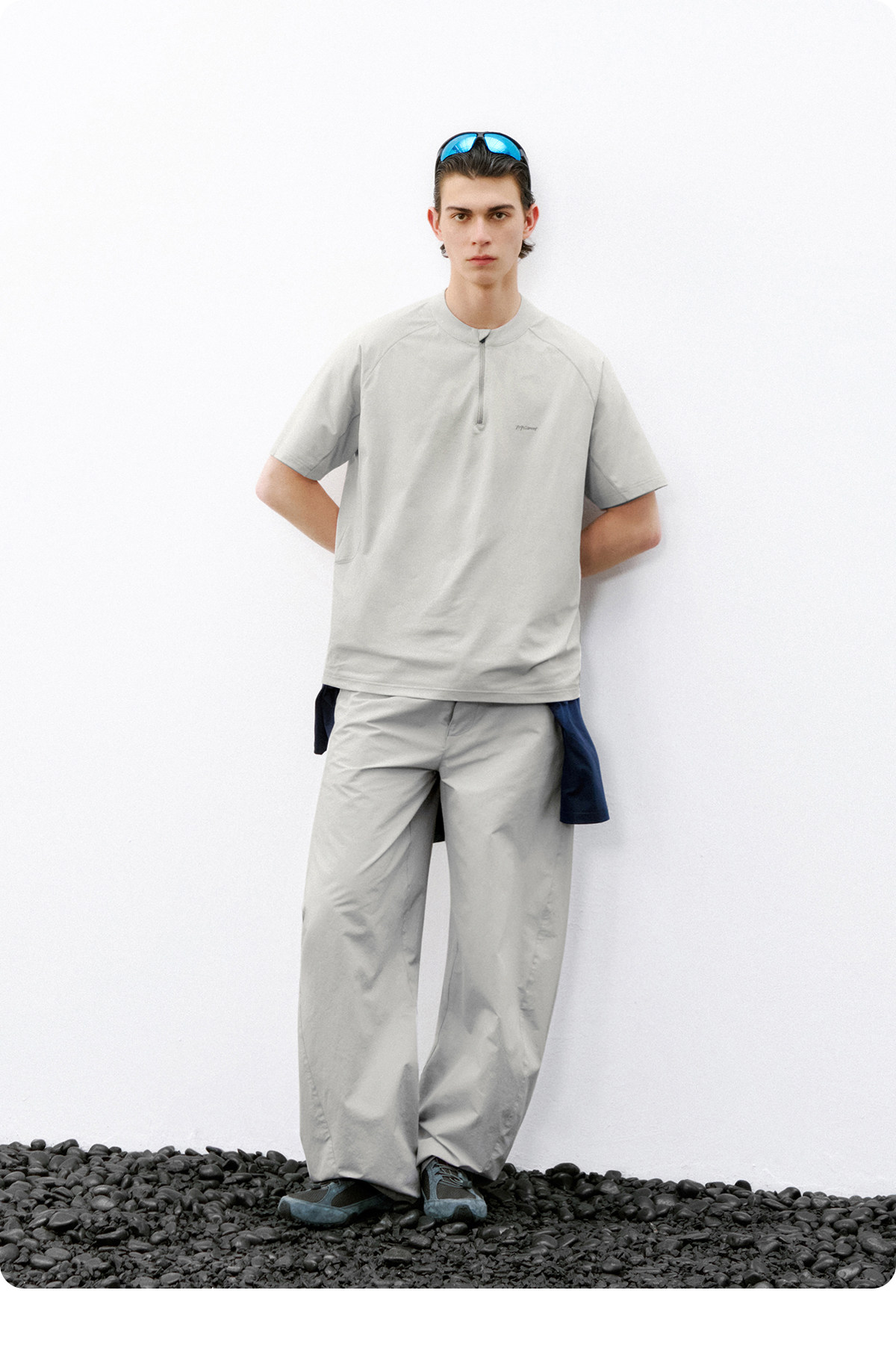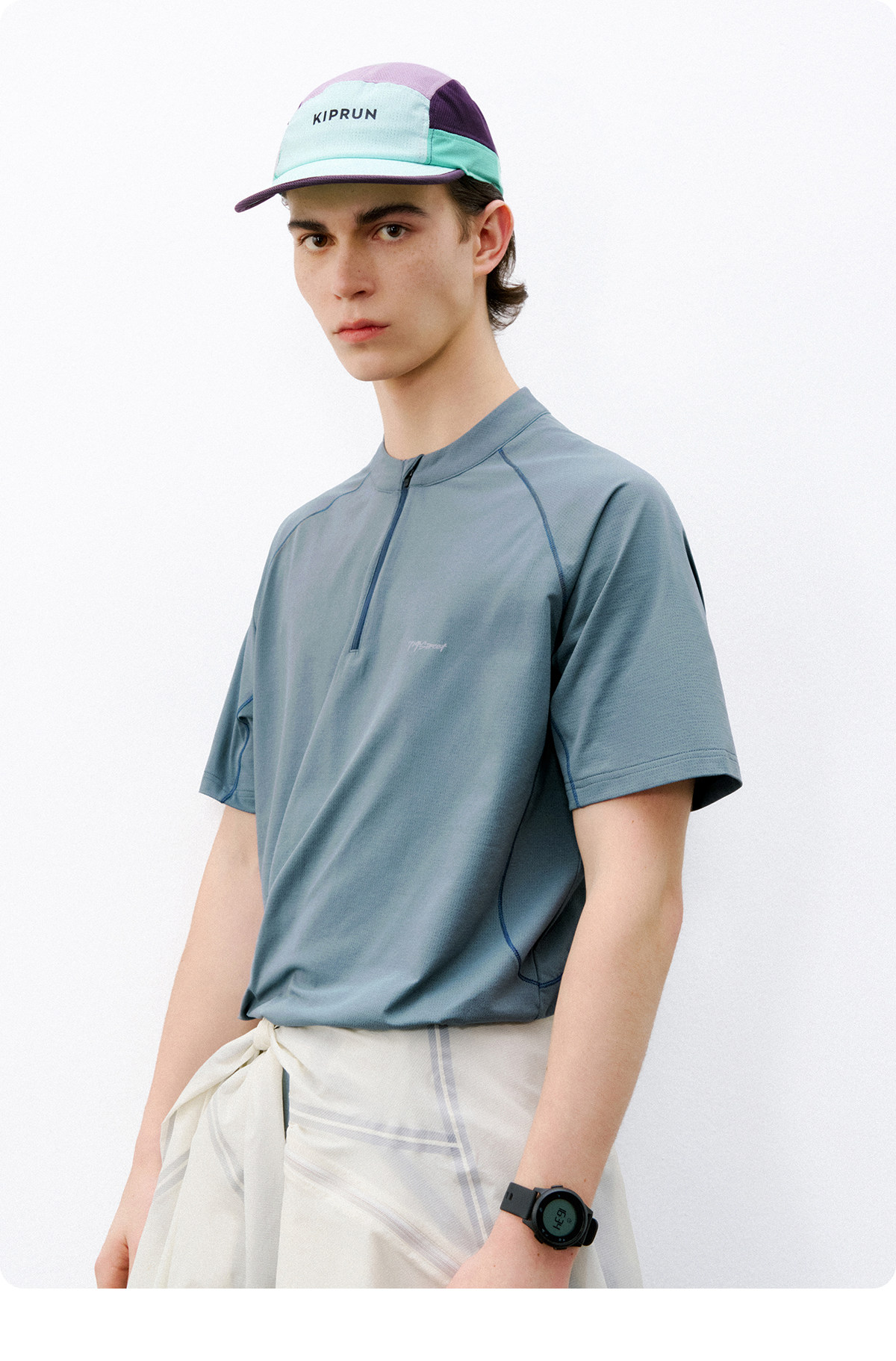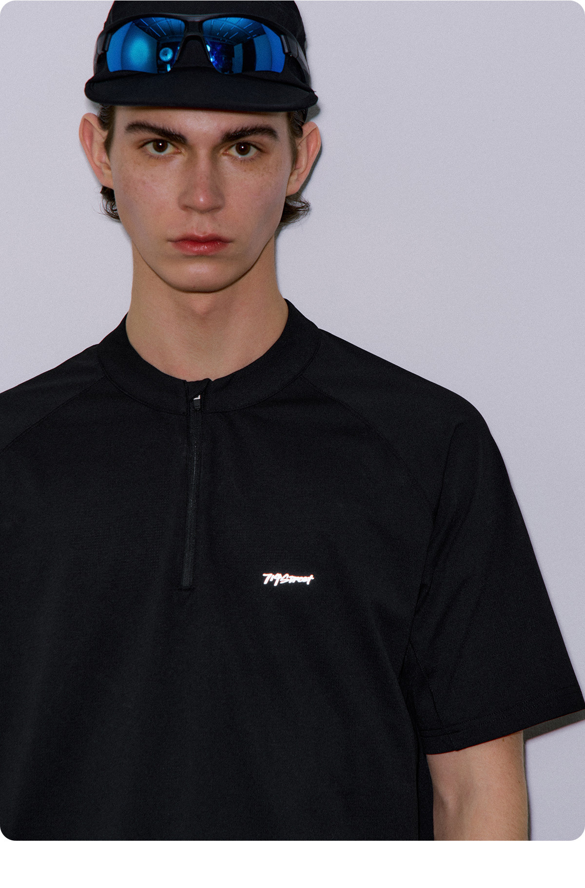 714street夏季吸湿速干健身服抗菌凉感运动短袖半拉链防晒T恤男款