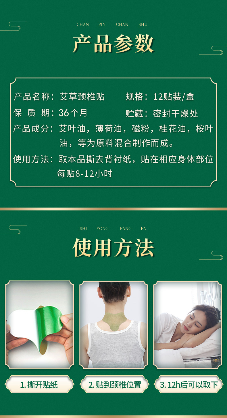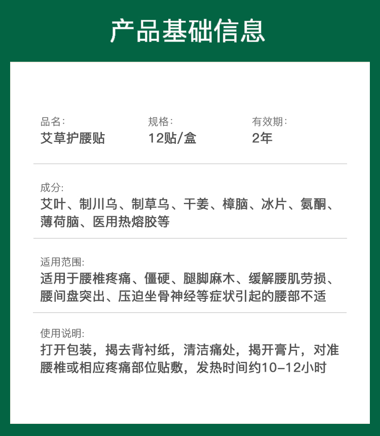 艾草颈椎贴、膝盖贴、腰椎贴 12贴/盒
