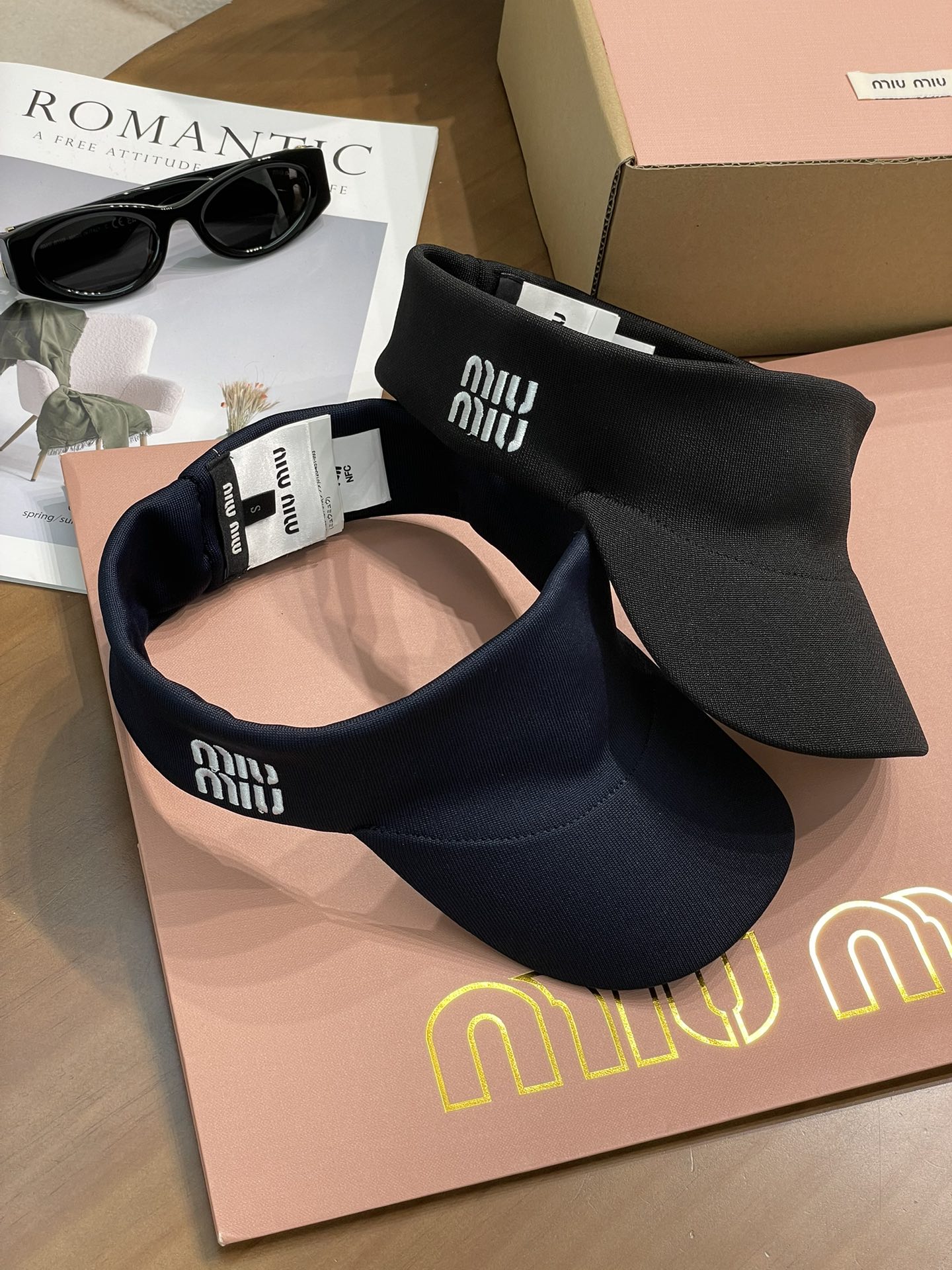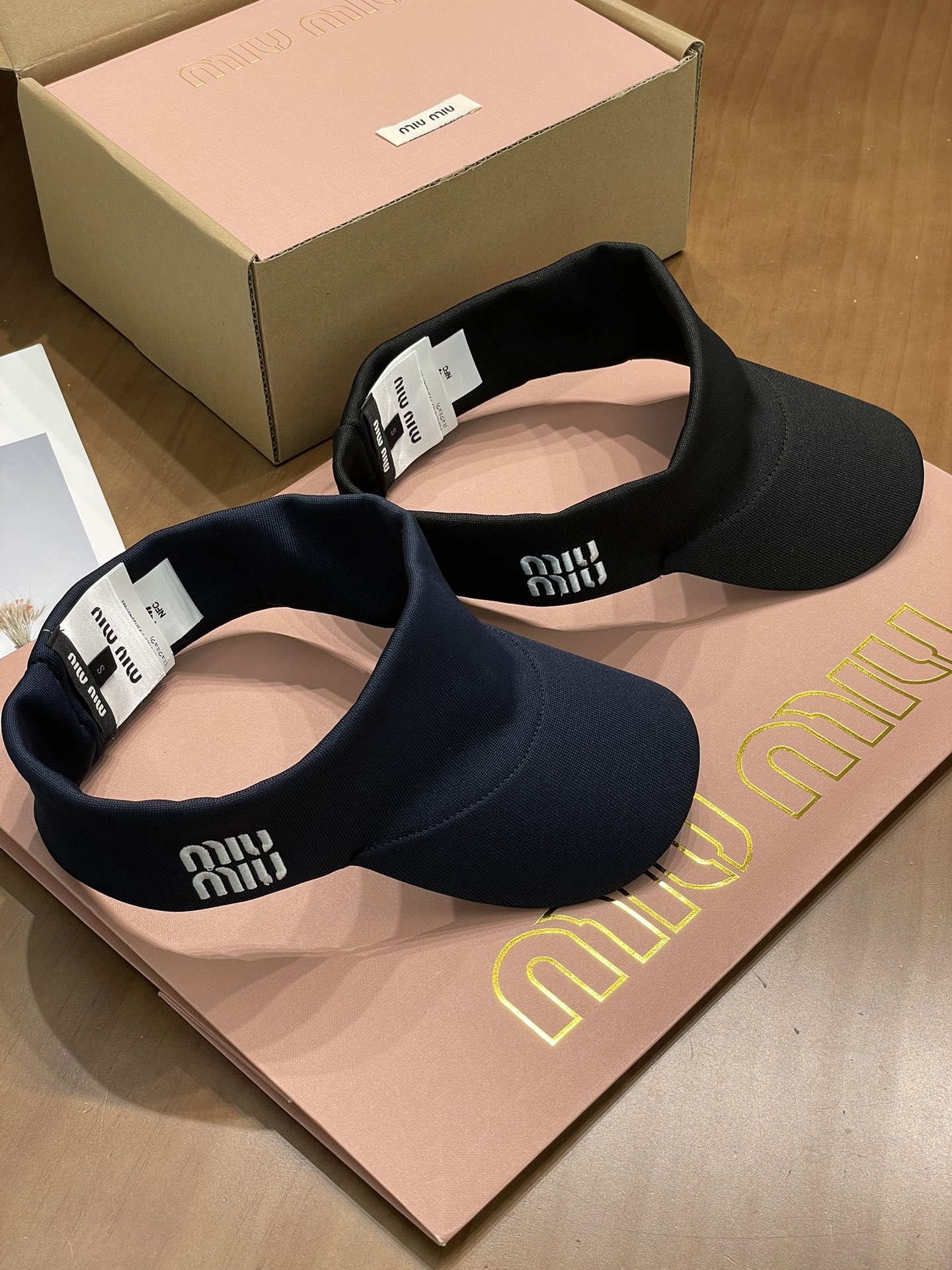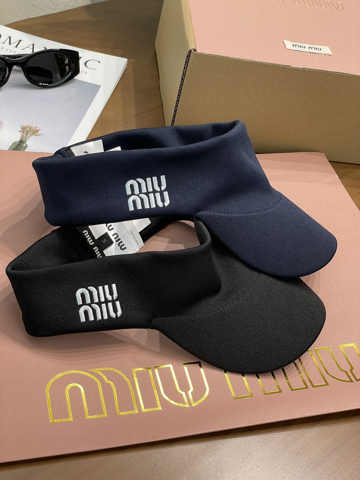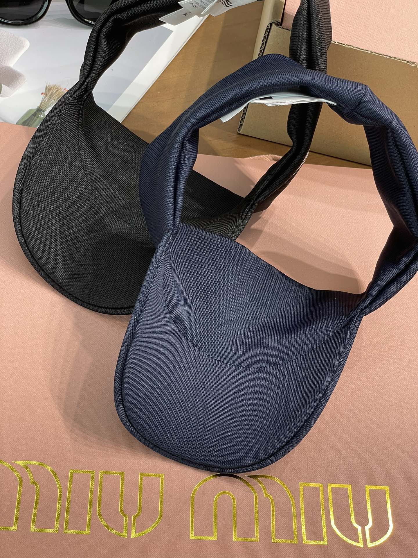 这顶空顶帽是深邃又高级的藏蓝色和黑色 ,简约大气。帽身一侧精致的Miu Miu字母刺绣,瞬间提升了整体的时尚感和品牌辨识度,低调又奢华~