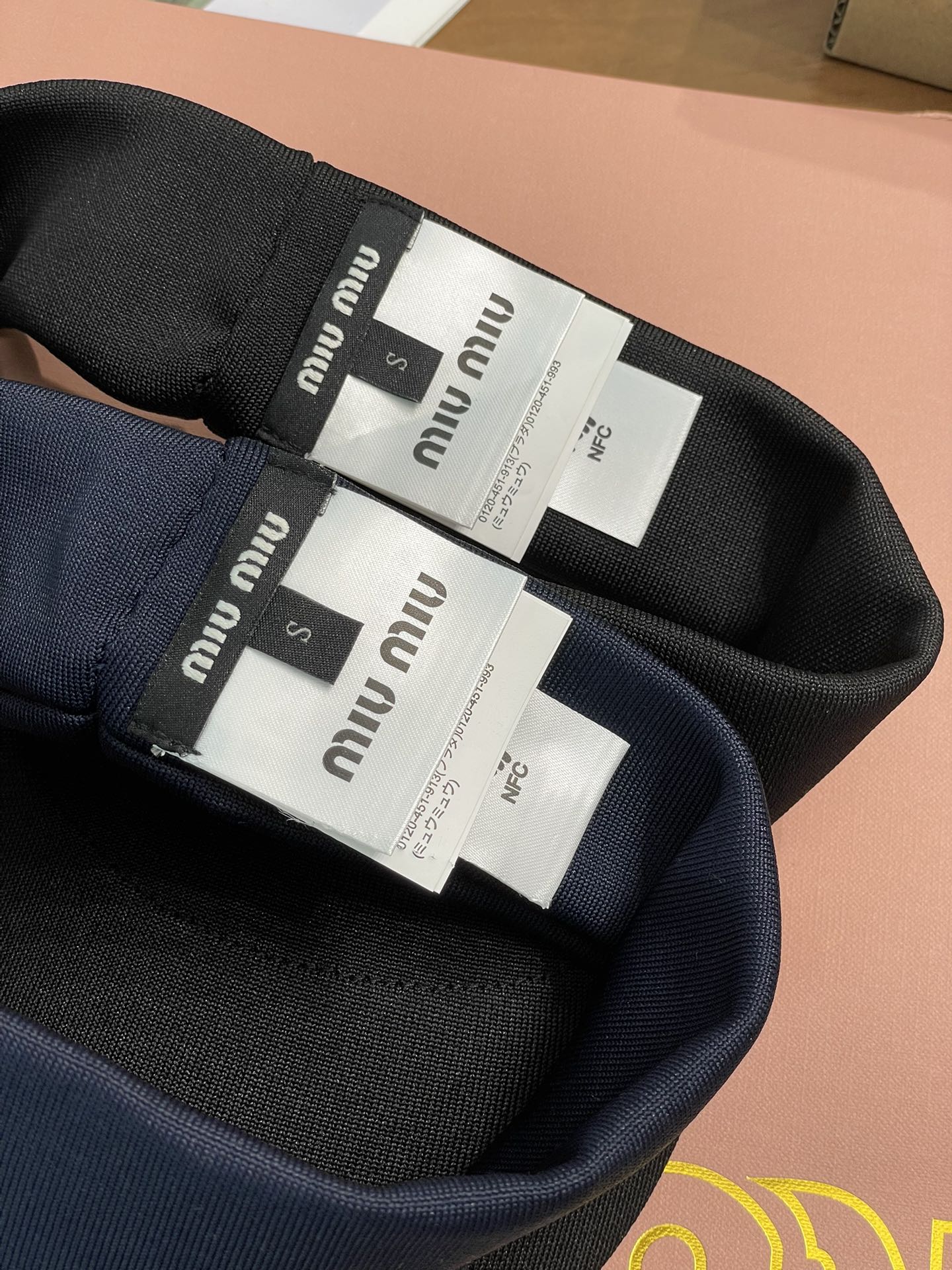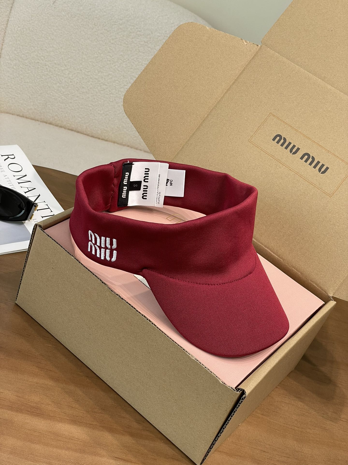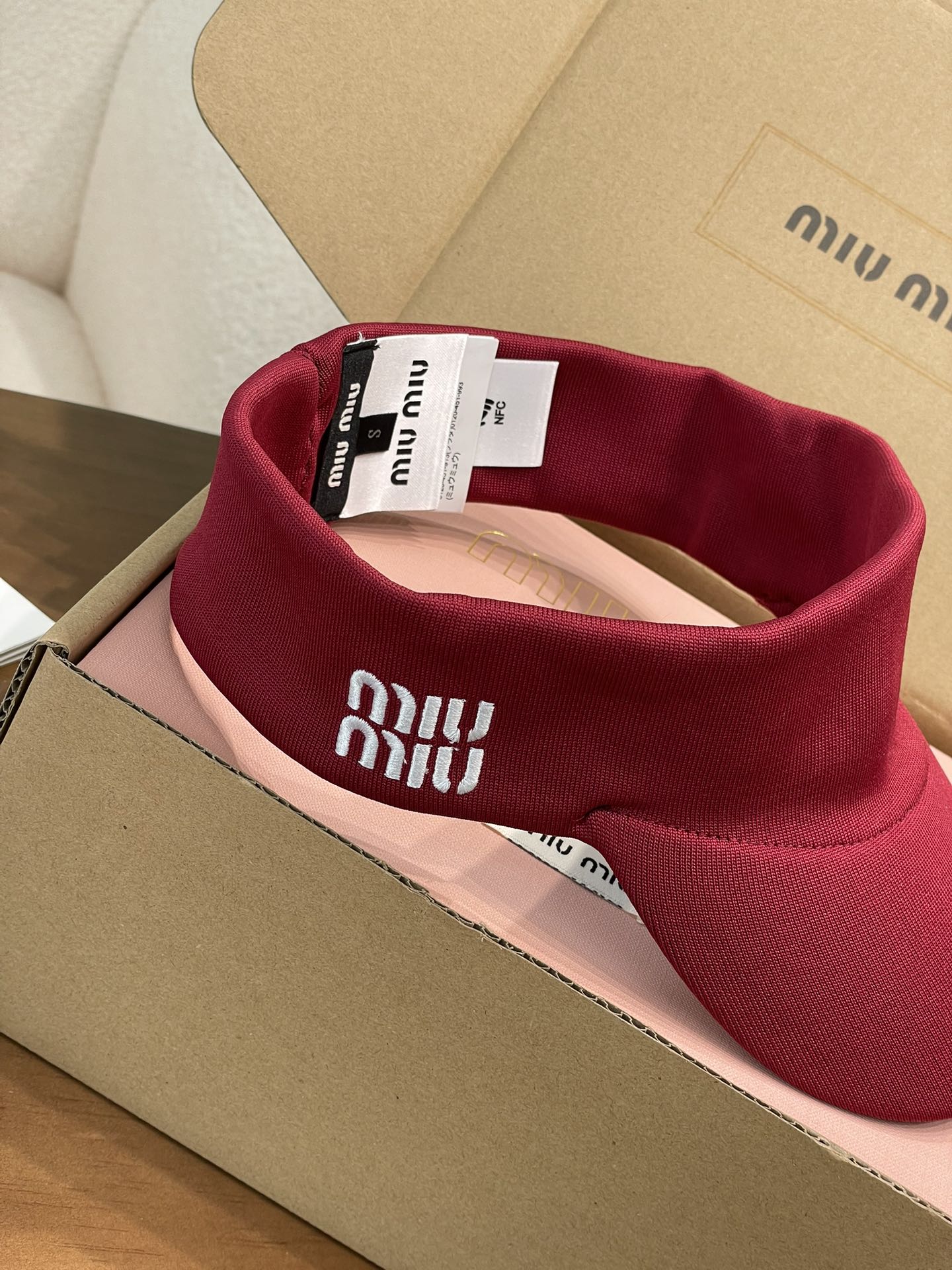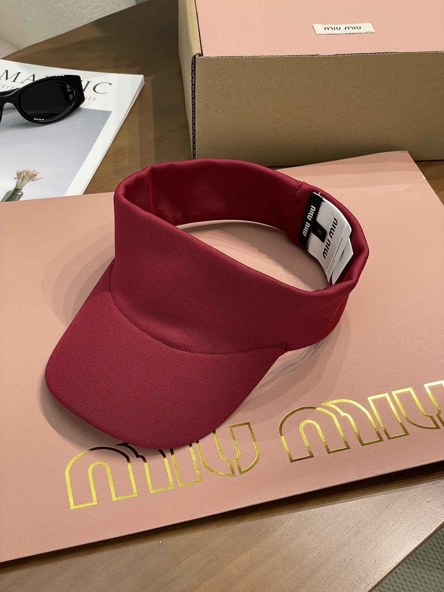 这顶空顶帽是深邃又高级的藏蓝色和黑色 ,简约大气。帽身一侧精致的Miu Miu字母刺绣,瞬间提升了整体的时尚感和品牌辨识度,低调又奢华~