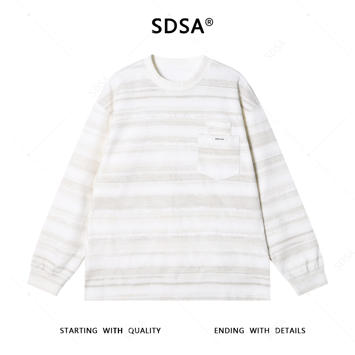SDSA男士秋冬新款痞帅男装时尚扎染条纹拼接口袋设计圆领卫衣百搭