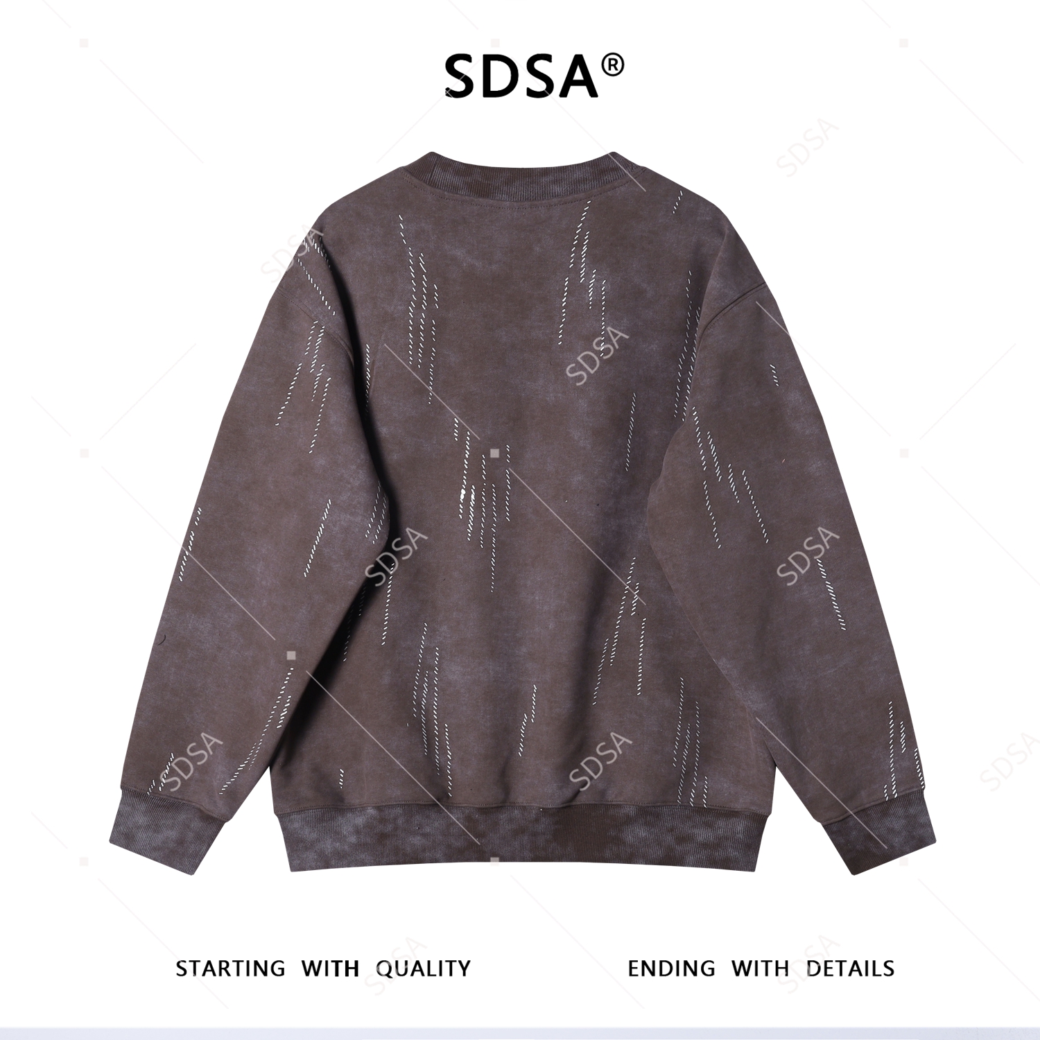 WY1170SDSA男士秋冬新款痞帅男装轻奢潮牌滴胶扎染圆领卫衣百搭宽松上衣