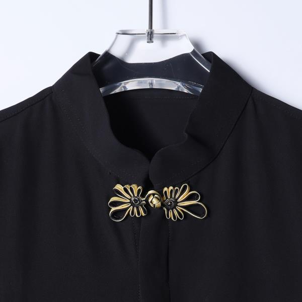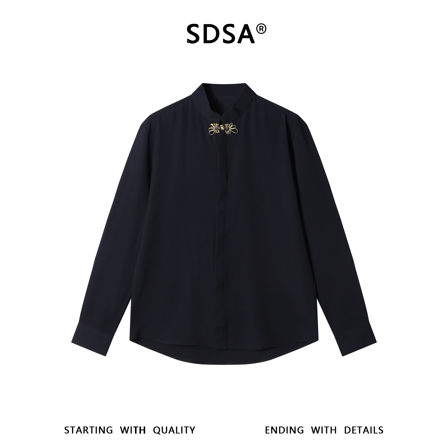 SDSA男装2026新款高贵轻奢新中式简约金纹盘扣立领长袖衬衫百搭