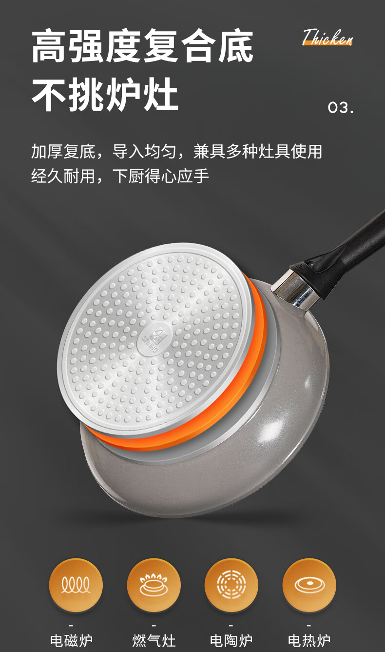 三禾不粘锅奶锅珐琅陶瓷汤锅家用小煮锅宝宝辅食煮牛奶锅煤气燃气灶 LN16G2