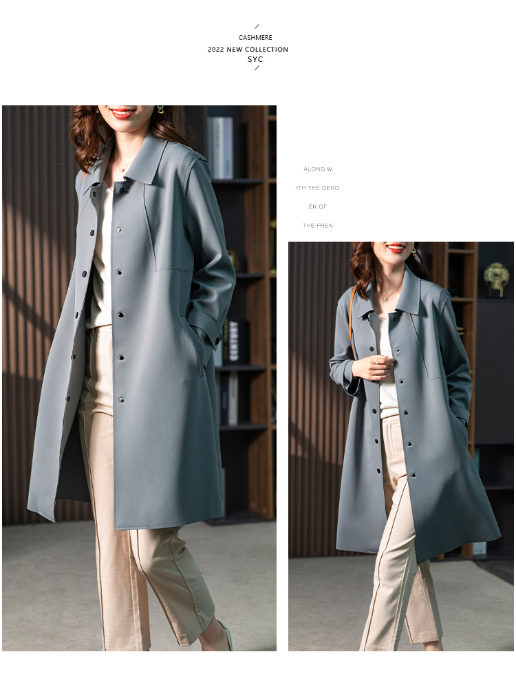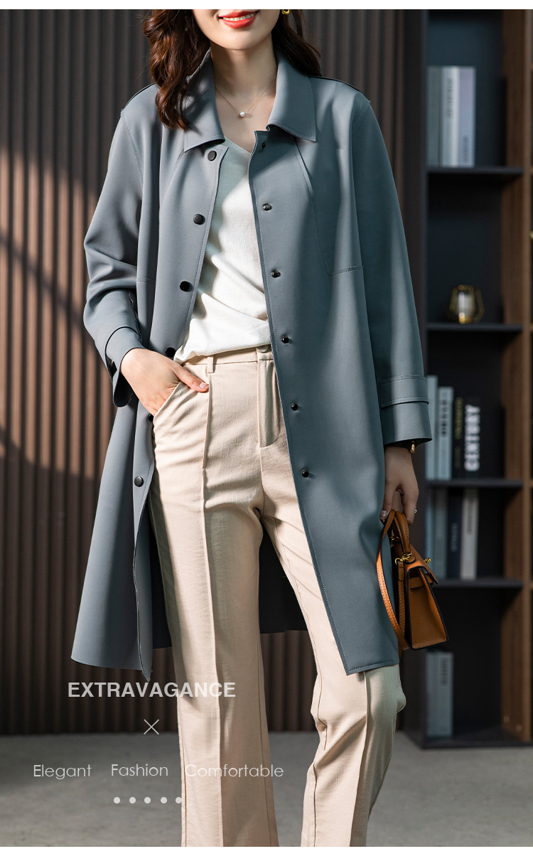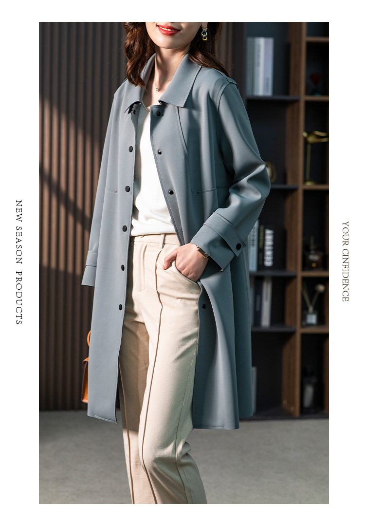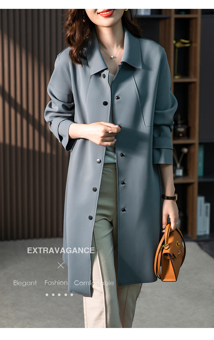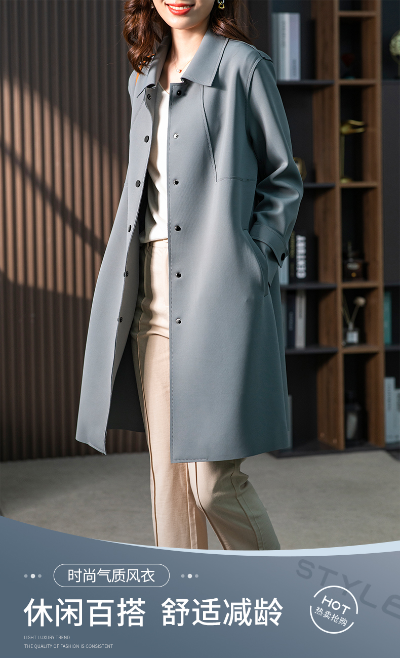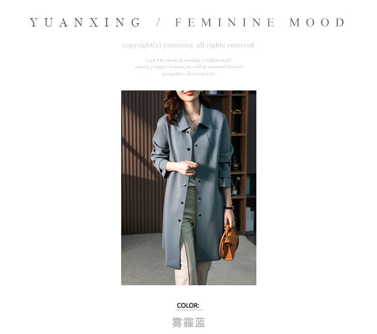 83945原形雾霾蓝风衣外套女2024秋季新款韩版气质英伦风小个子垂感大衣