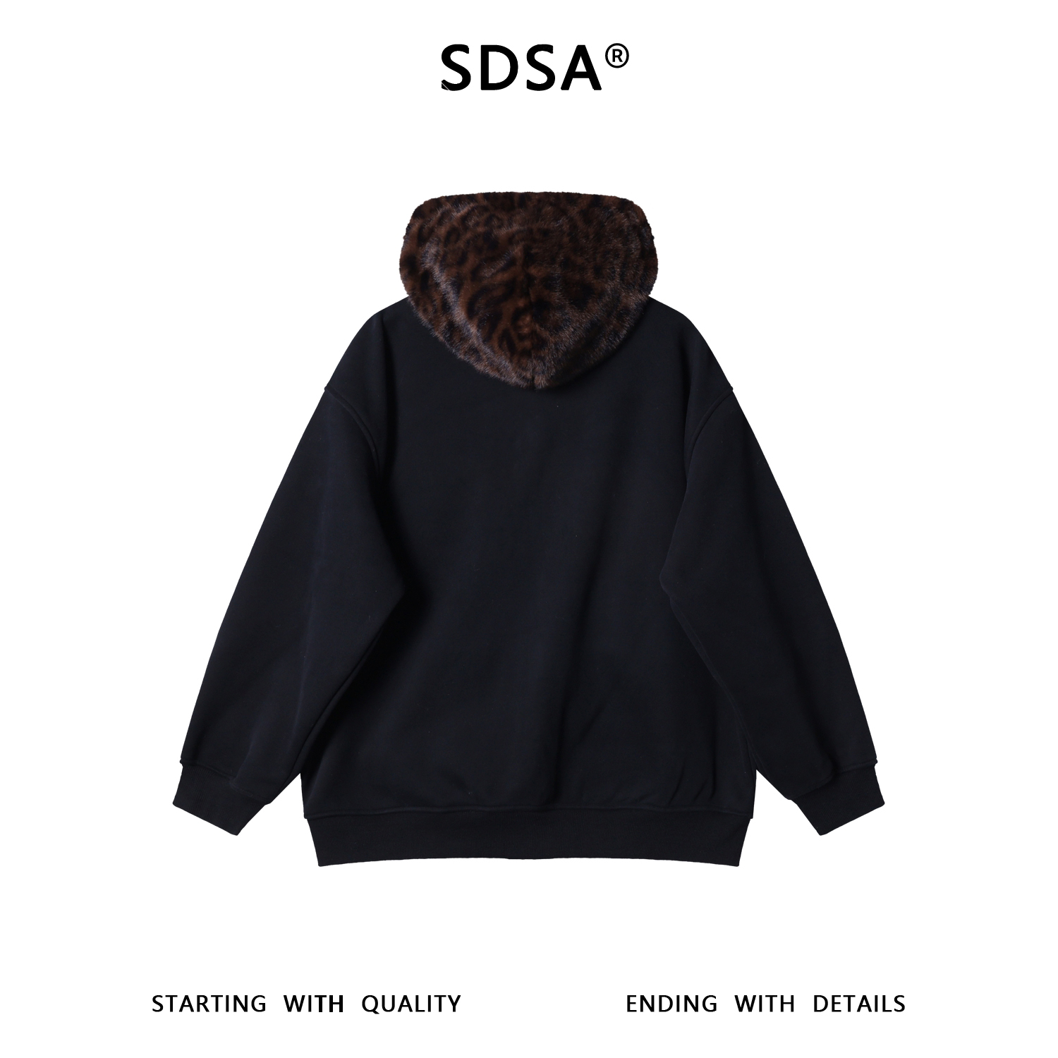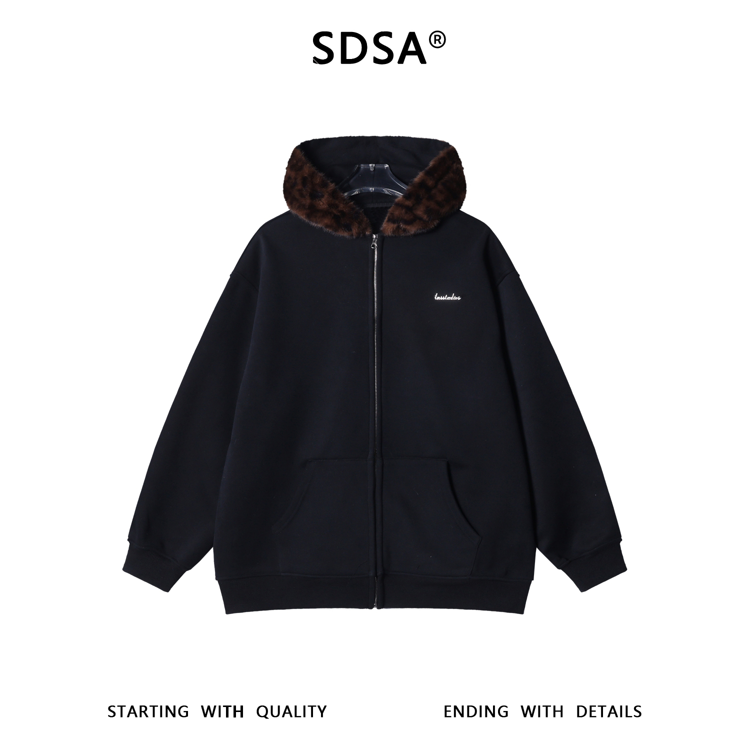 SDSA秋冬新款痞帅男装潮牌毛毛领刺绣字母拉链连帽卫衣外套休闲