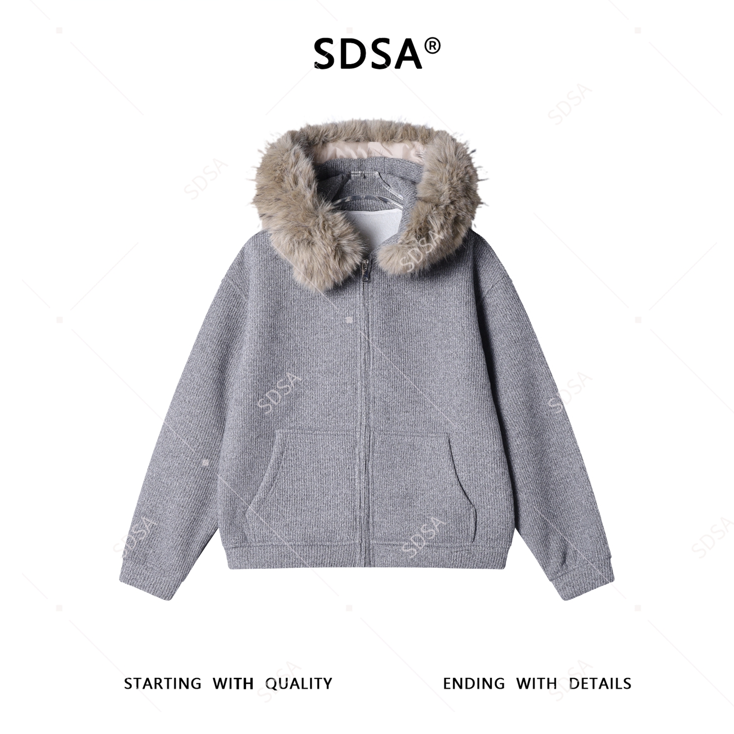 SDSA男士秋冬新款痞帅男装韩版简约毛领拉链连帽毛衣百搭时尚上衣