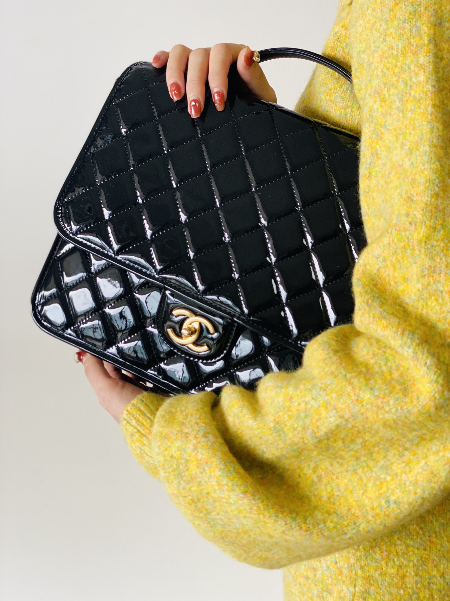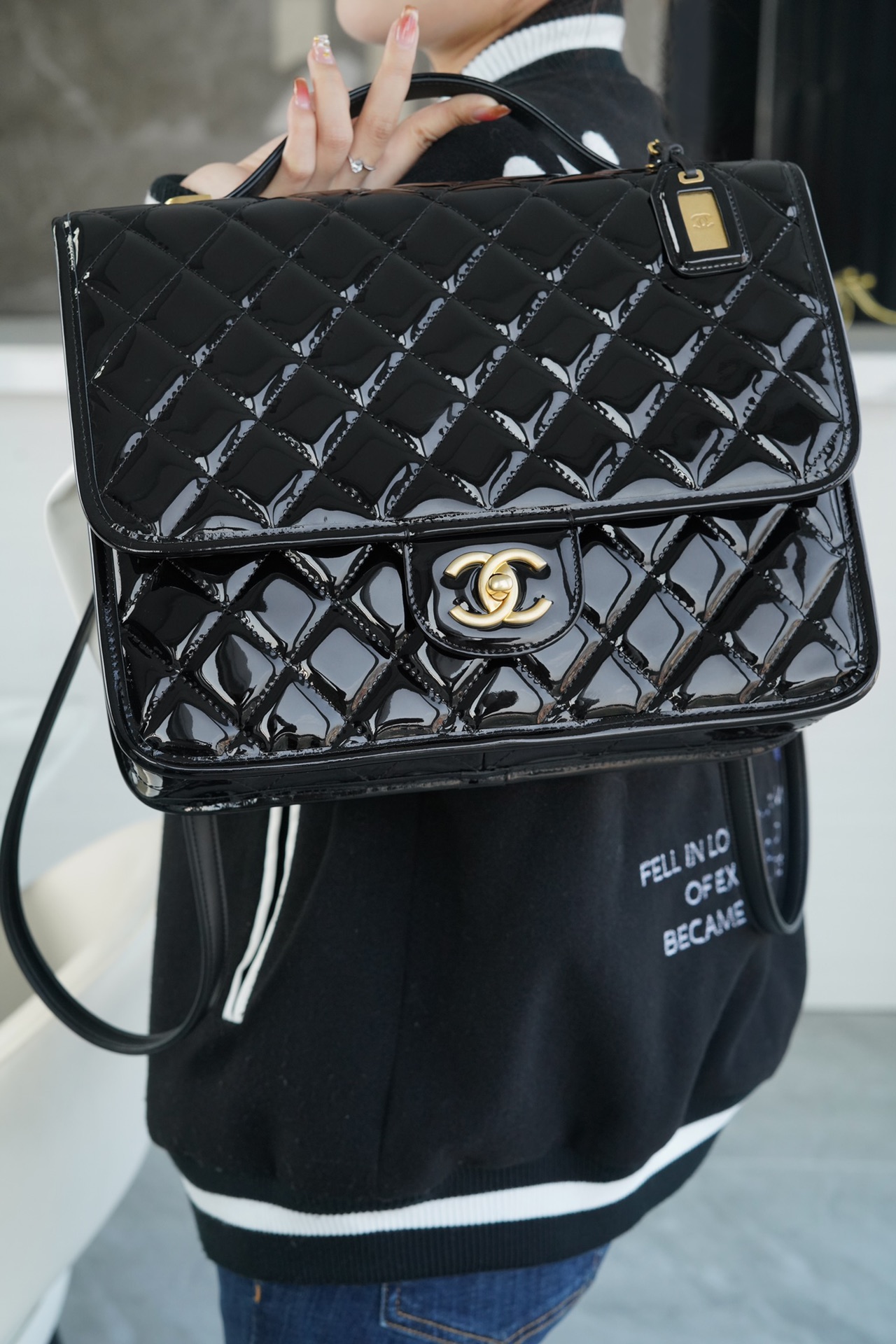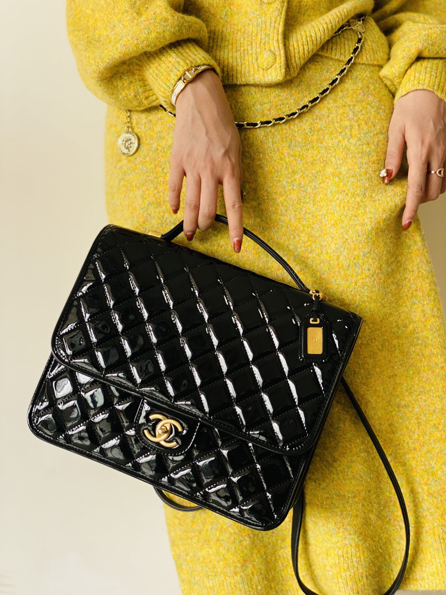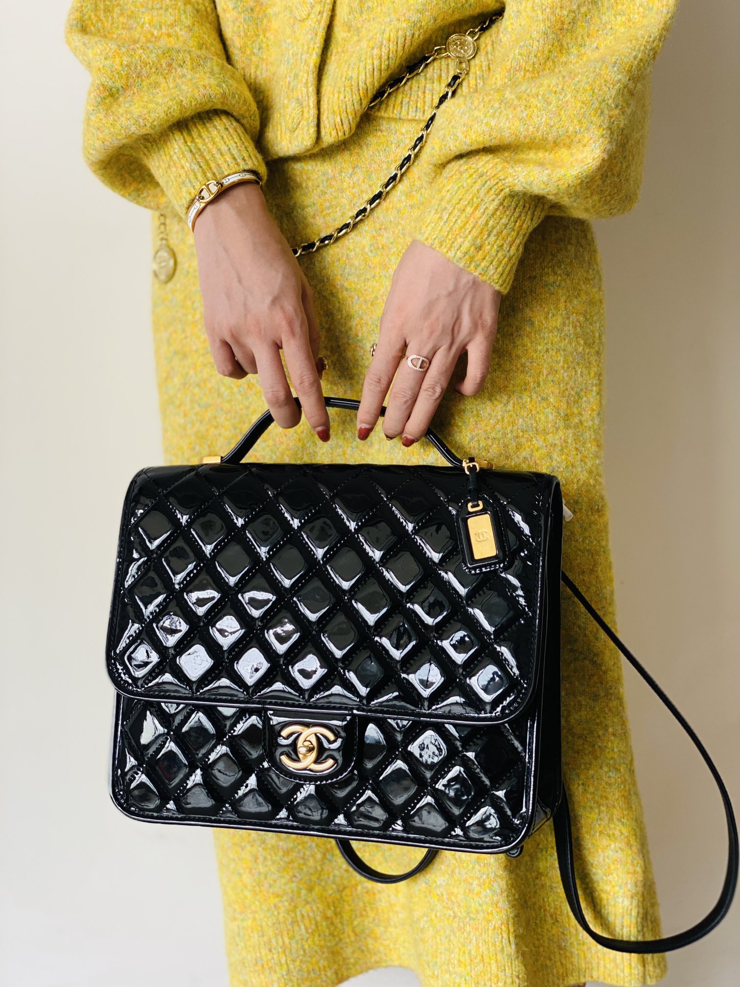 香奶奶 独家原厂大爆款;22K漆皮双肩包!“三只羊”小牛漆!做旧砂金扣!