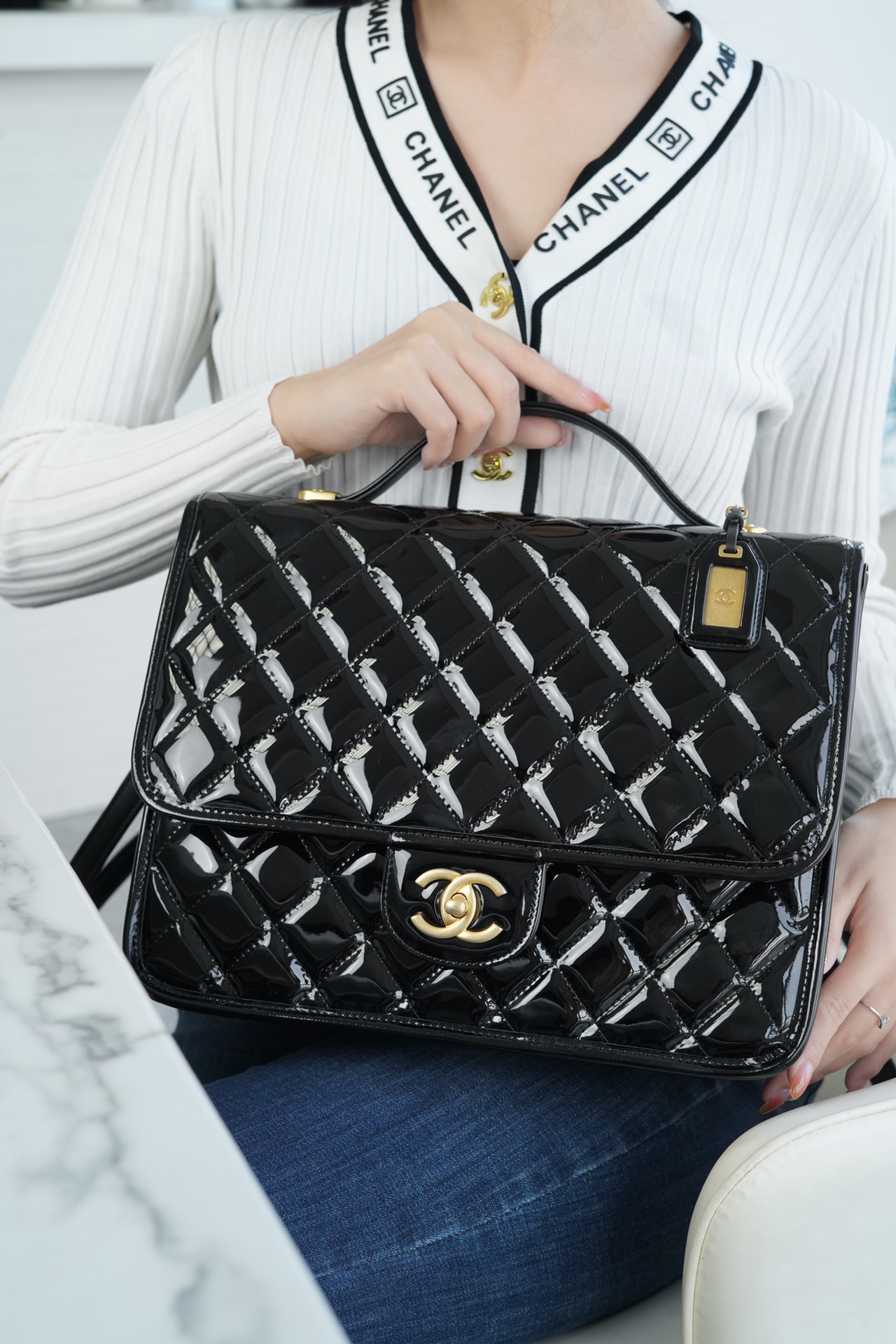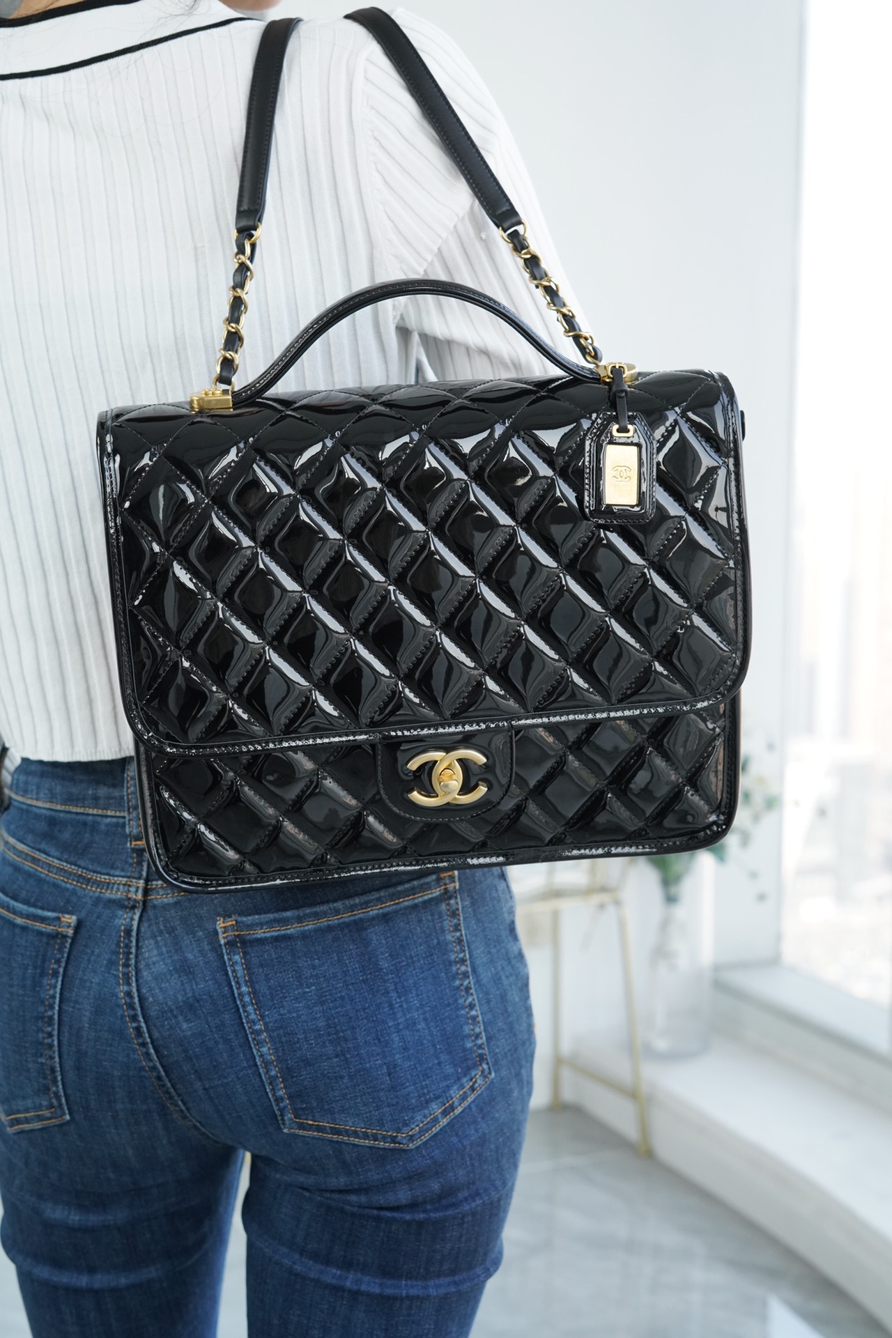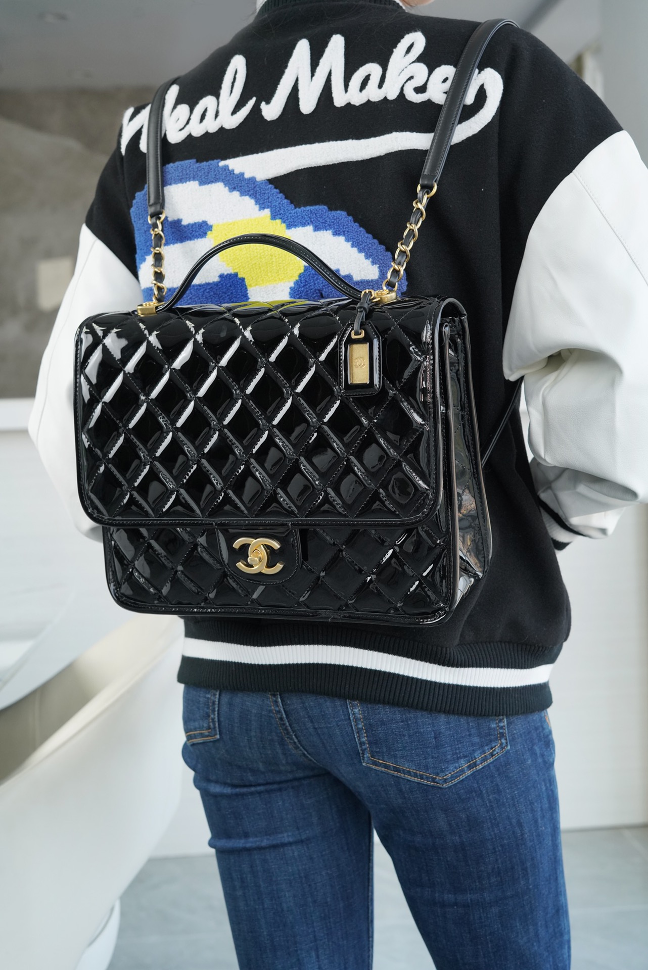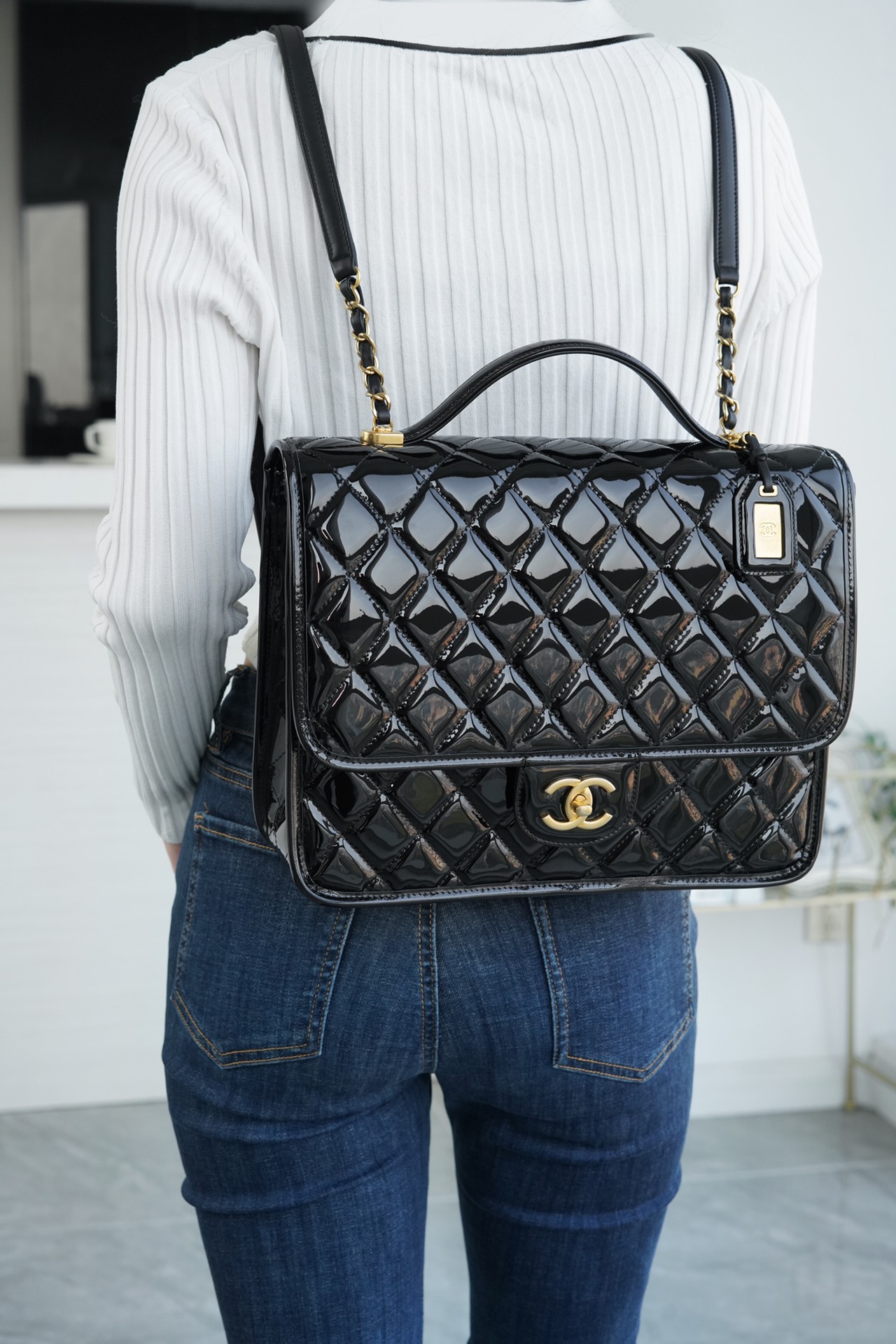 香奶奶 独家原厂大爆款;22K漆皮双肩包!“三只羊”小牛漆!做旧砂金扣!