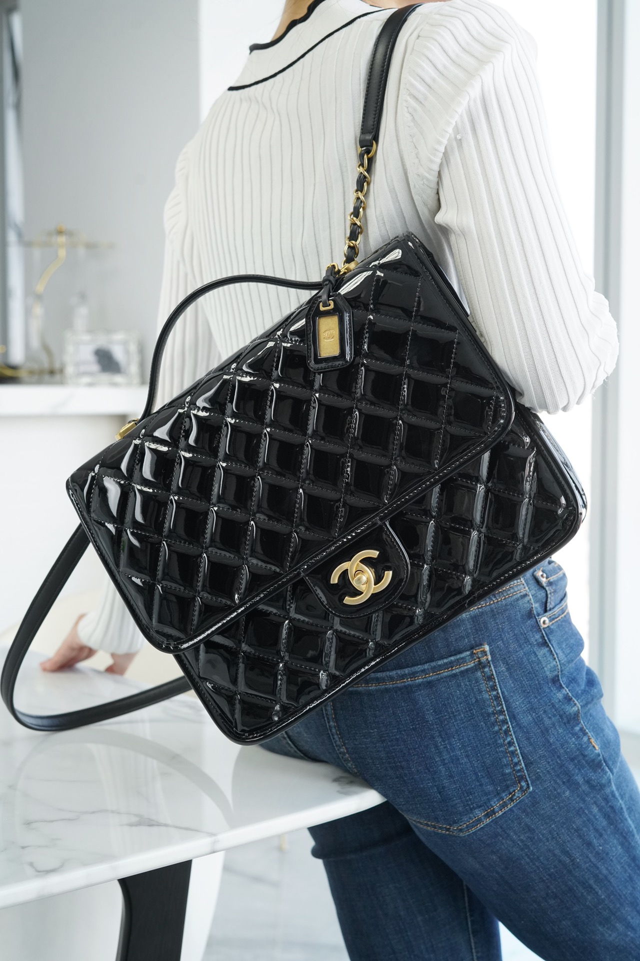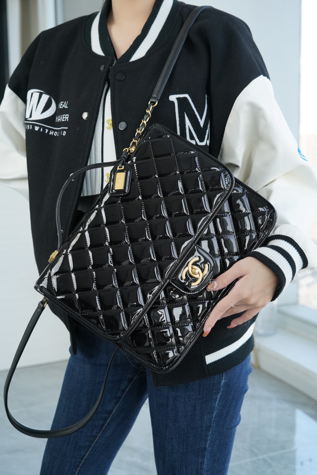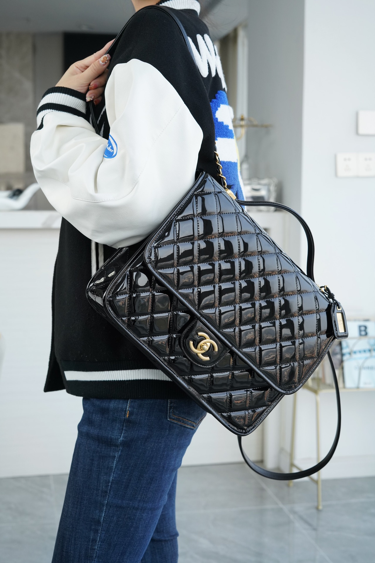 这皮你远远看去就知道是极品皮,胚底和漆面都水染得如此黑透!胚底得牛皮纤维更是密集茂盛(H菜篮子皮一样),只有这样即结实又软糯的牛皮才能真正把贝壳的神韵挺显出来,而且伸手去一捏又极其软糯(H菜篮子也是如此)~