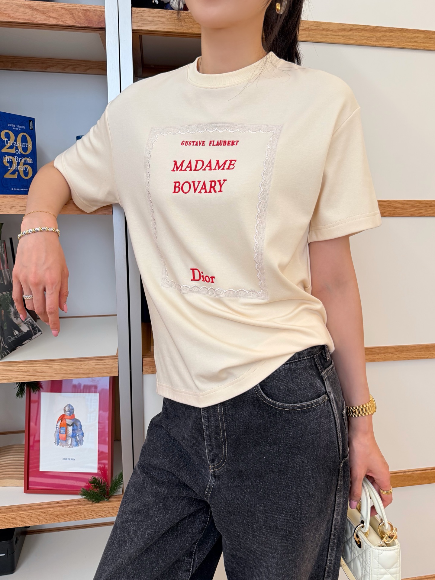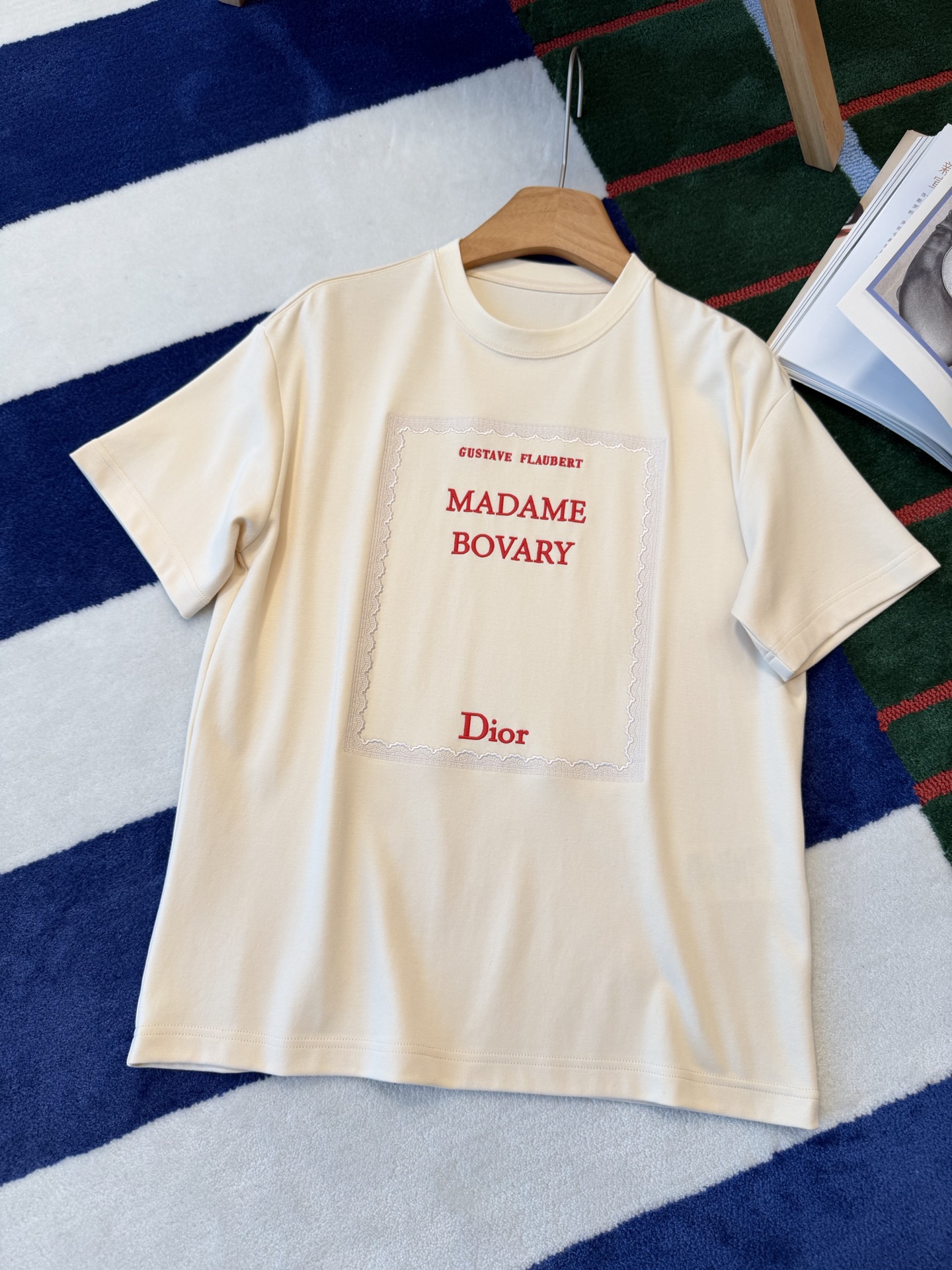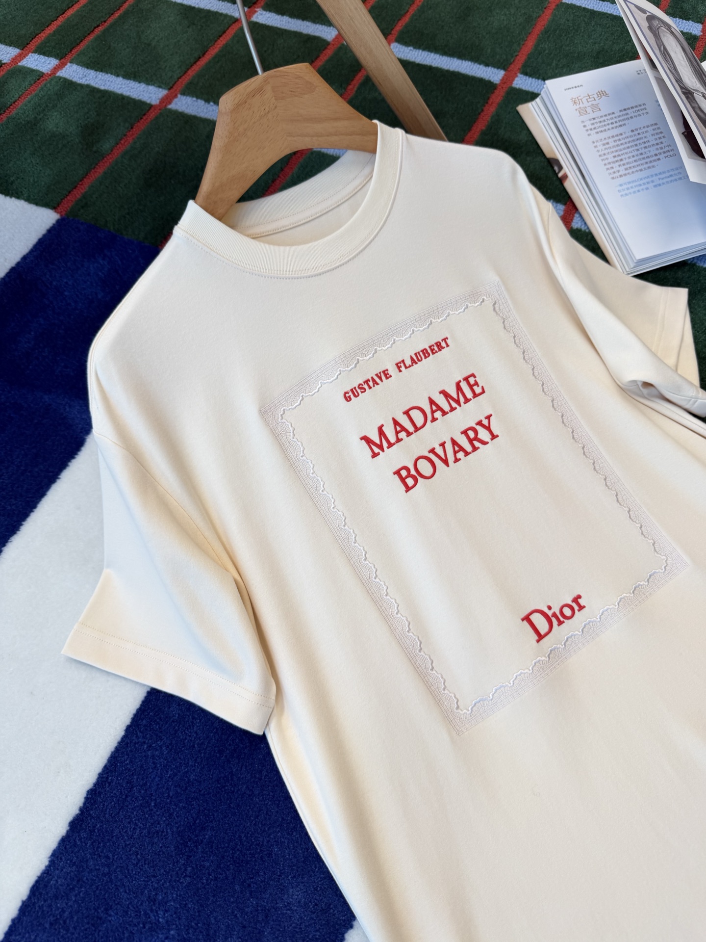 【新款现货发售】新款🆕刺绣短袖T恤✨✨甄选米色棉质平纹针织面料,亲肤柔软,透气舒适🔜正面以精致刺绣还原经典图书封面纹样💫将老钱风的优雅底蕴娓娓道来👍🏻立体剪裁搭配宽松百搭版型,自然修饰身形,成就衣橱常青款☑️简约纯色基底,于低调中流露高级质感😜日常出街或通勤穿搭皆能从容驾驭,彰显专属格调💗四季皆宜,单穿清爽利落,内搭叠穿更显层次🉑码数SML