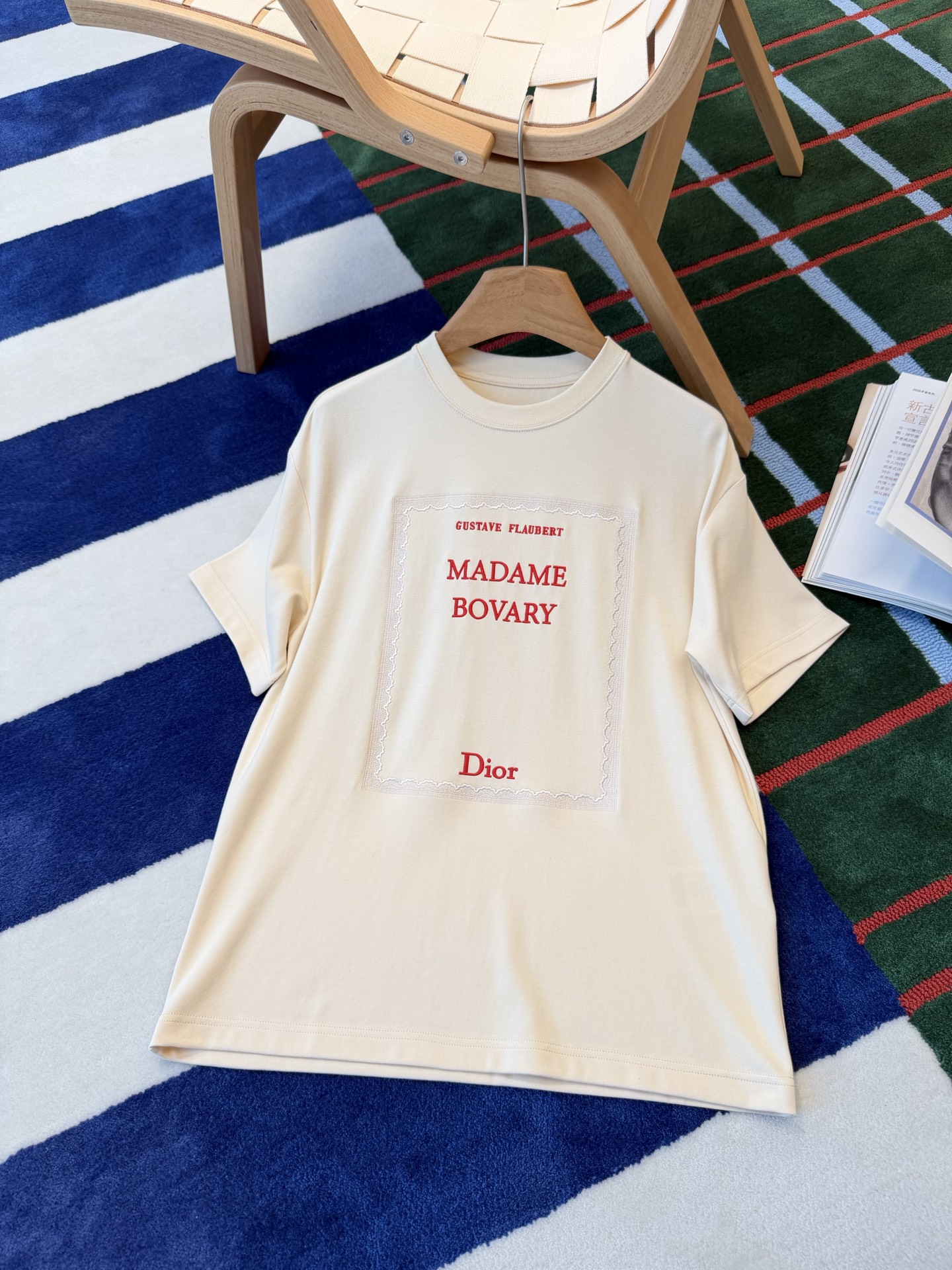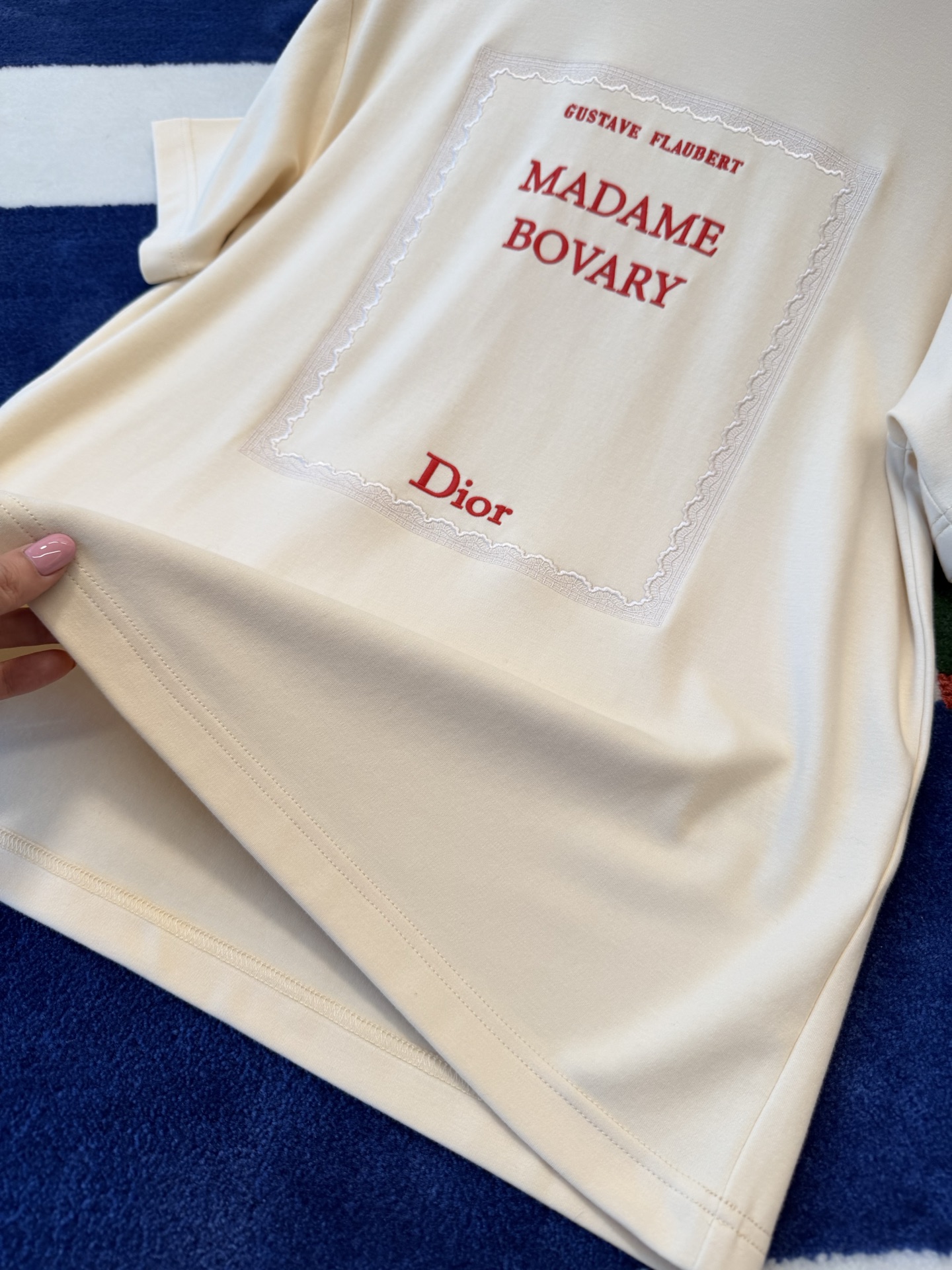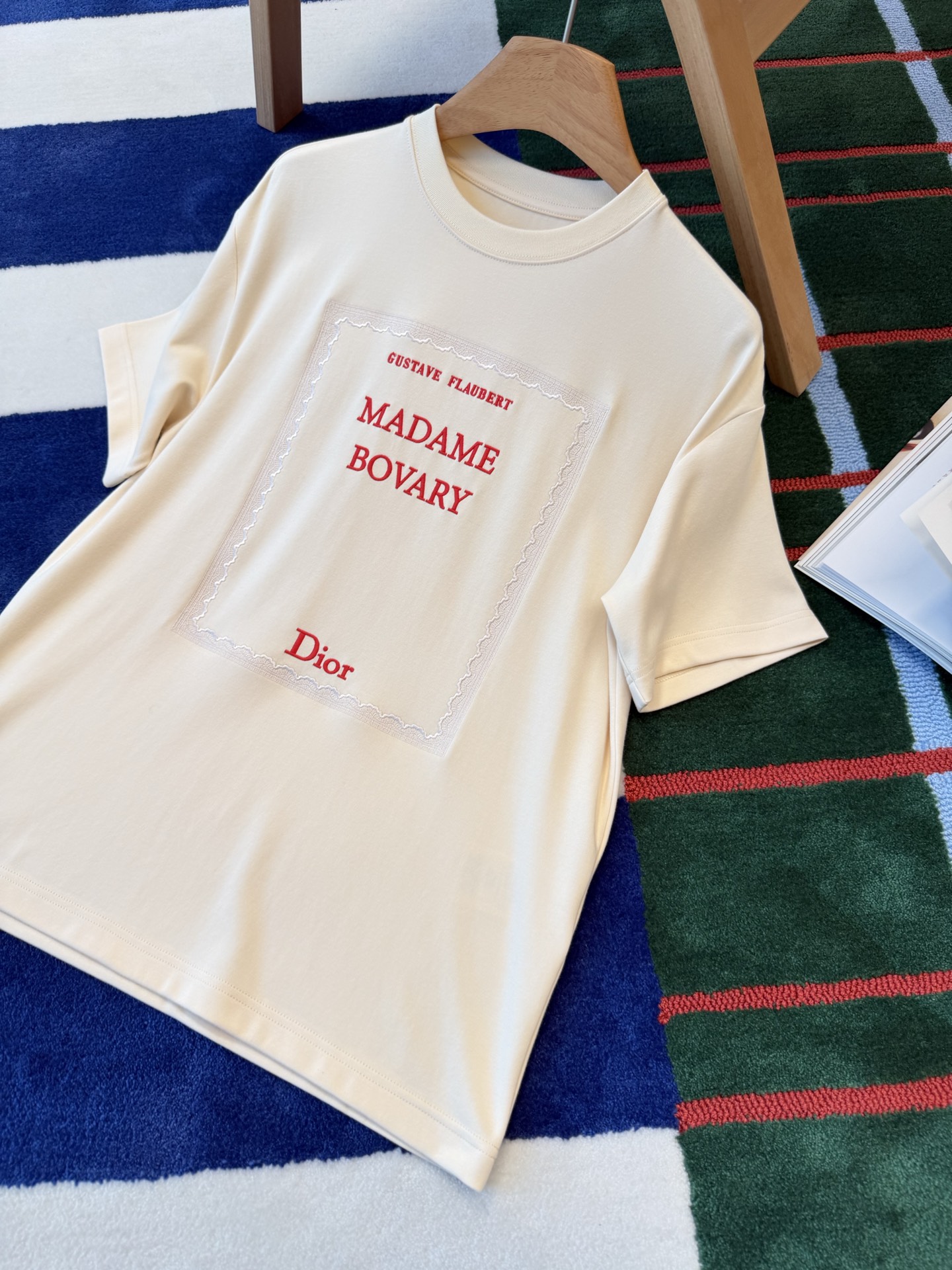 【新款现货发售】新款🆕刺绣短袖T恤✨✨甄选米色棉质平纹针织面料,亲肤柔软,透气舒适🔜正面以精致刺绣还原经典图书封面纹样💫将老钱风的优雅底蕴娓娓道来👍🏻立体剪裁搭配宽松百搭版型,自然修饰身形,成就衣橱常青款☑️简约纯色基底,于低调中流露高级质感😜日常出街或通勤穿搭皆能从容驾驭,彰显专属格调💗四季皆宜,单穿清爽利落,内搭叠穿更显层次🉑码数SML