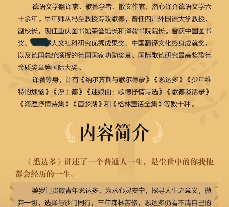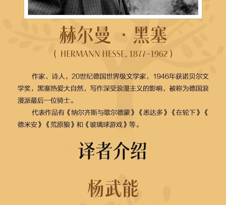 ★国家功勋奖章获得者杨武能先生德语直译,力求保持黑塞语言的灵性与诗意,豆瓣评分高达9.1,随书付有杨武能先生五千字独家解读,能让我们更深入理解这本探寻自我之书。