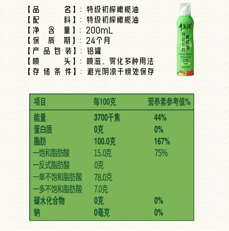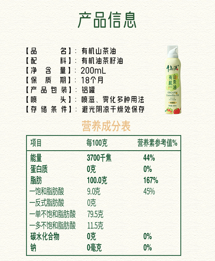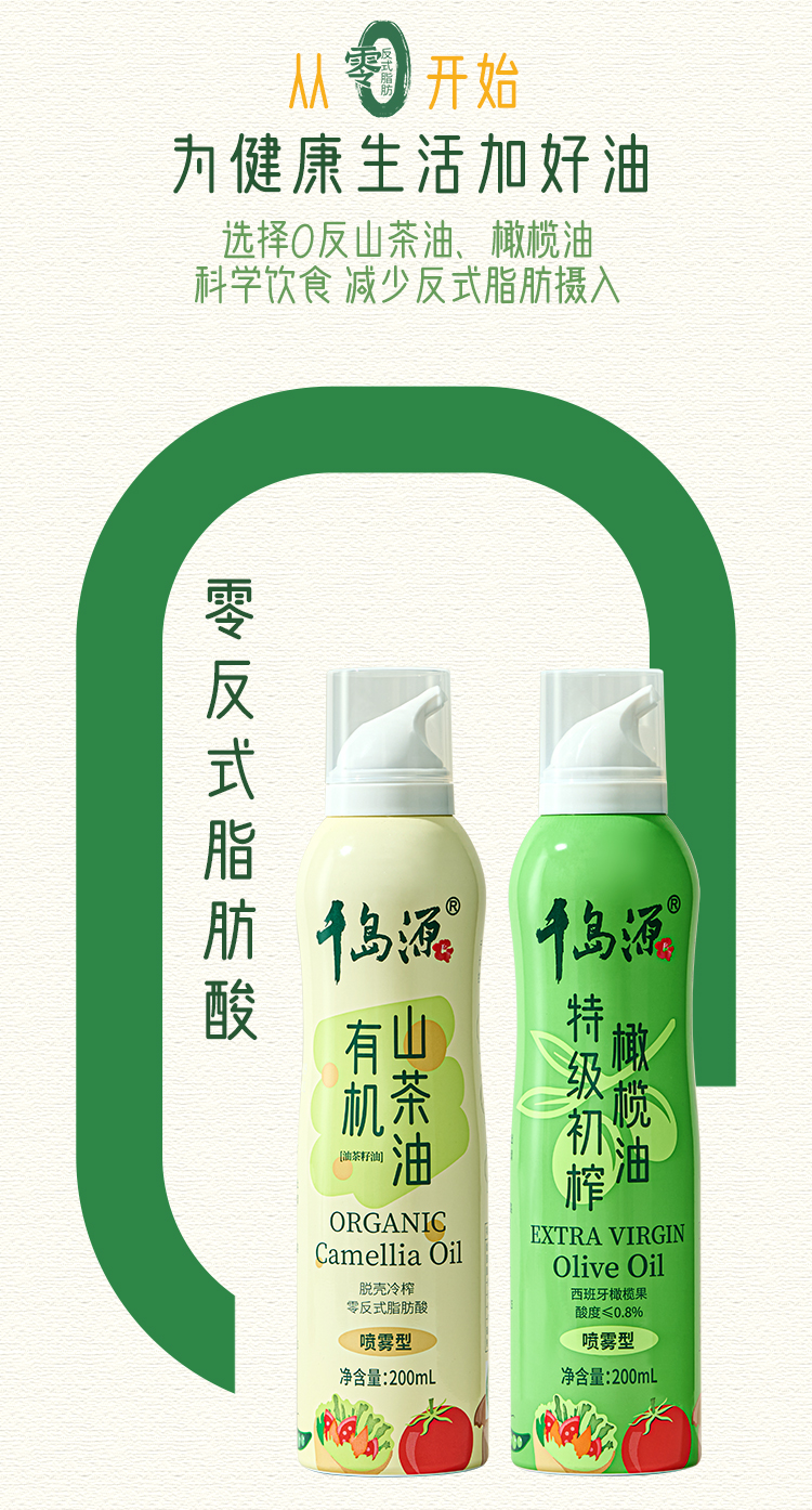千岛源喷雾型有机山茶油/亚麻籽油/橄榄油组合200mL*3瓶