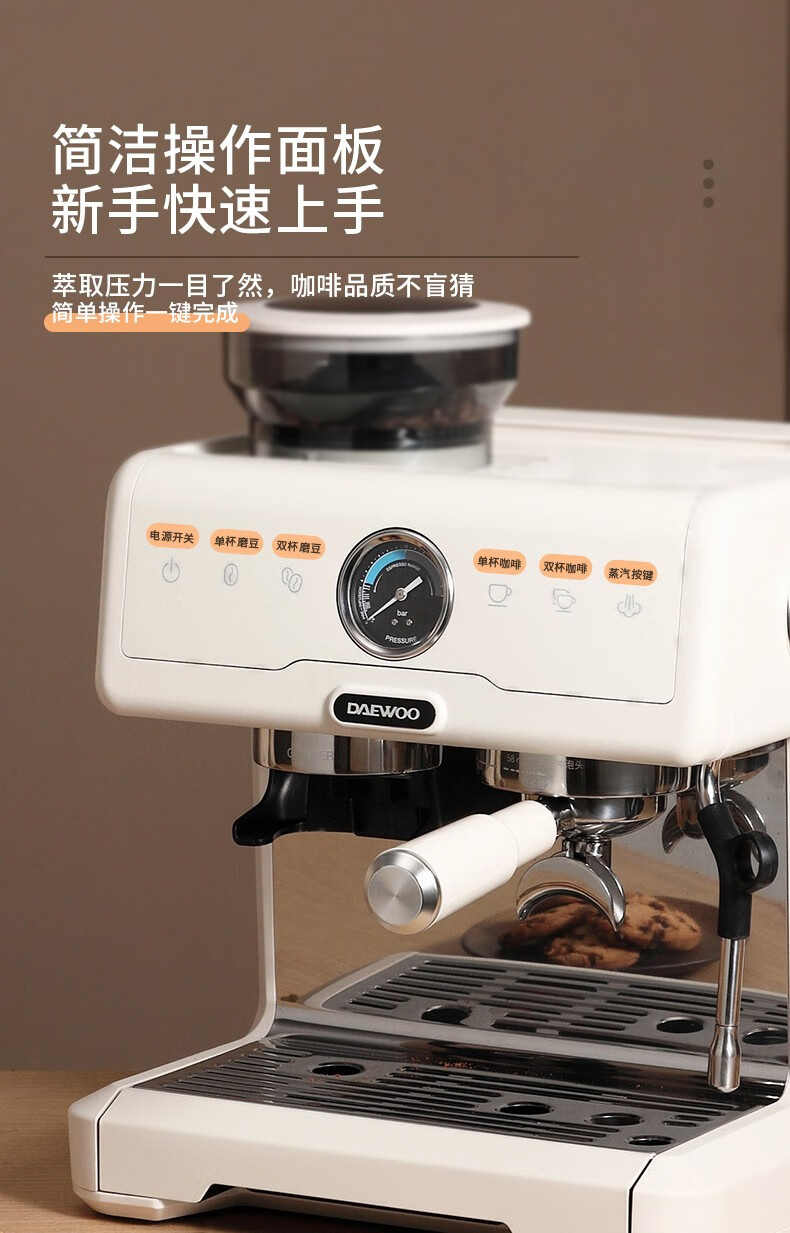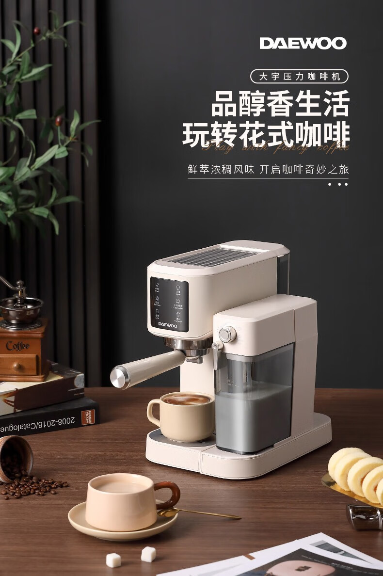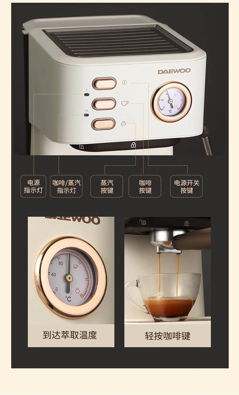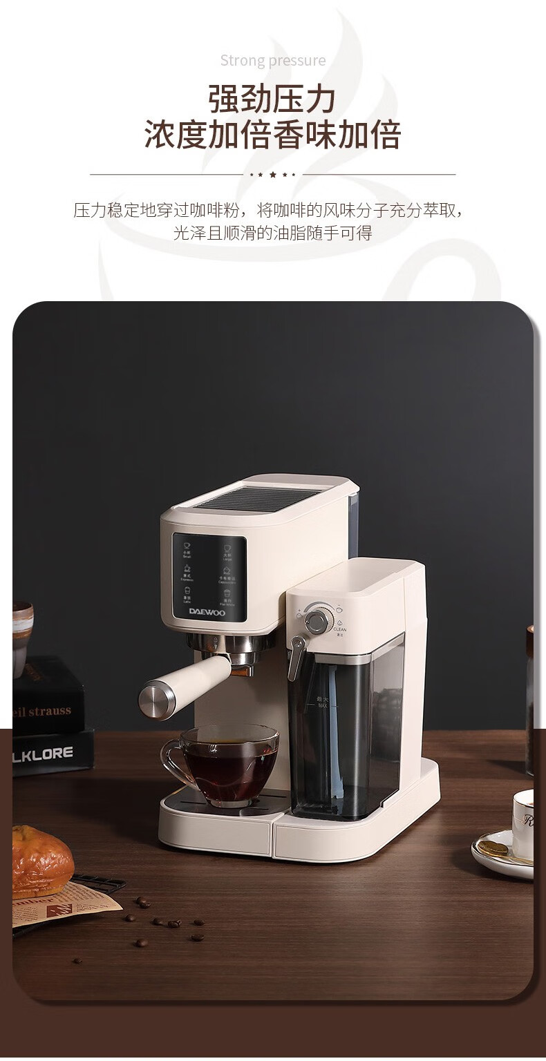 大宇(DAEWOO) 意式家用办公室半自动可打奶泡压力咖啡机 DYKF-1233