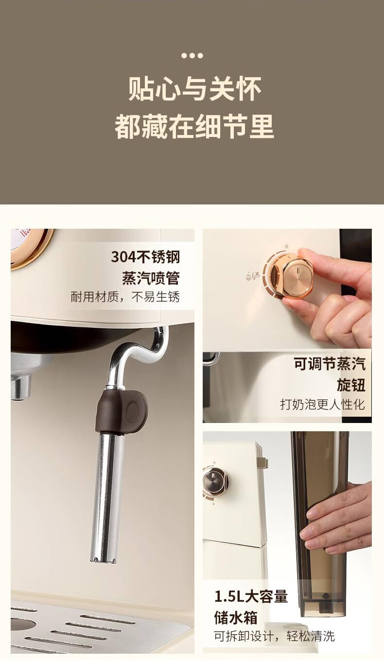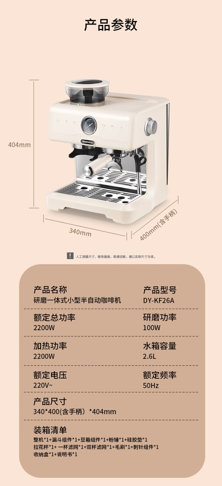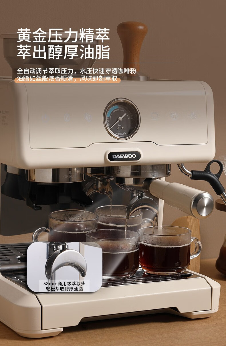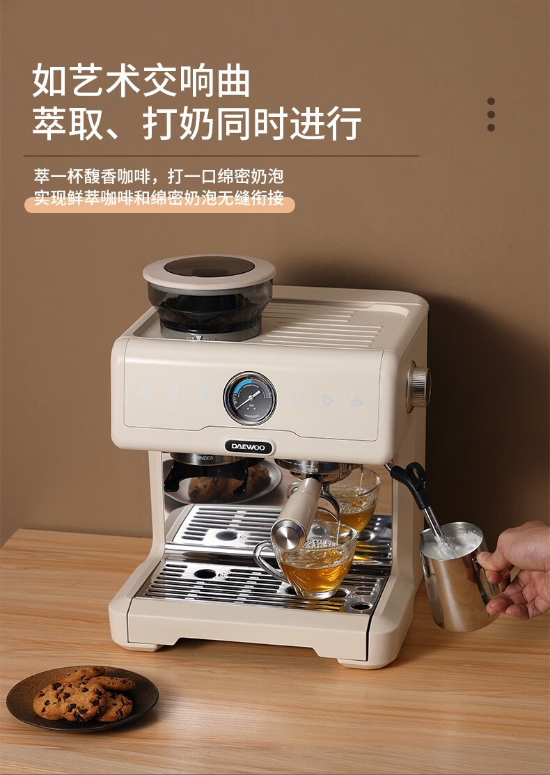 大宇(DAEWOO) 意式家用办公室半自动可打奶泡压力咖啡机 DYKF-1233