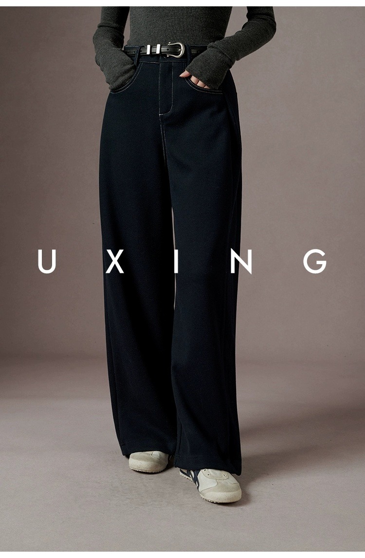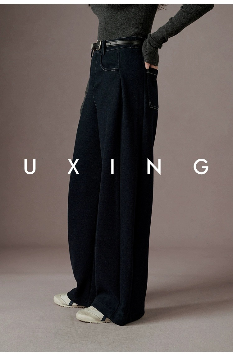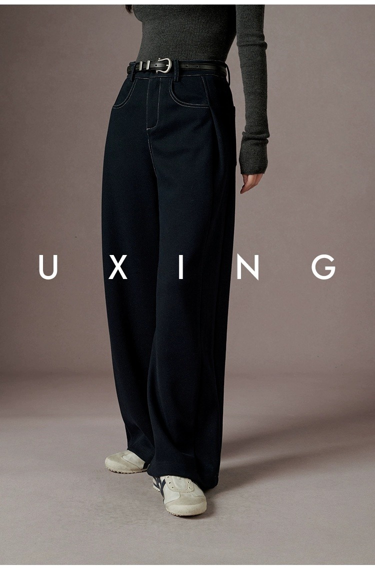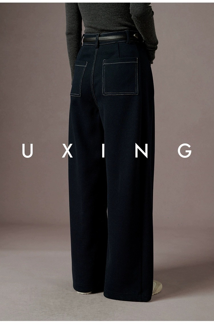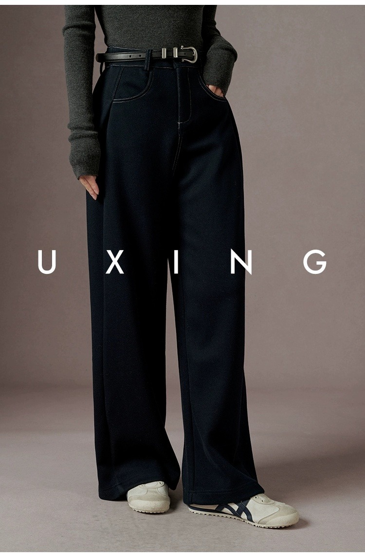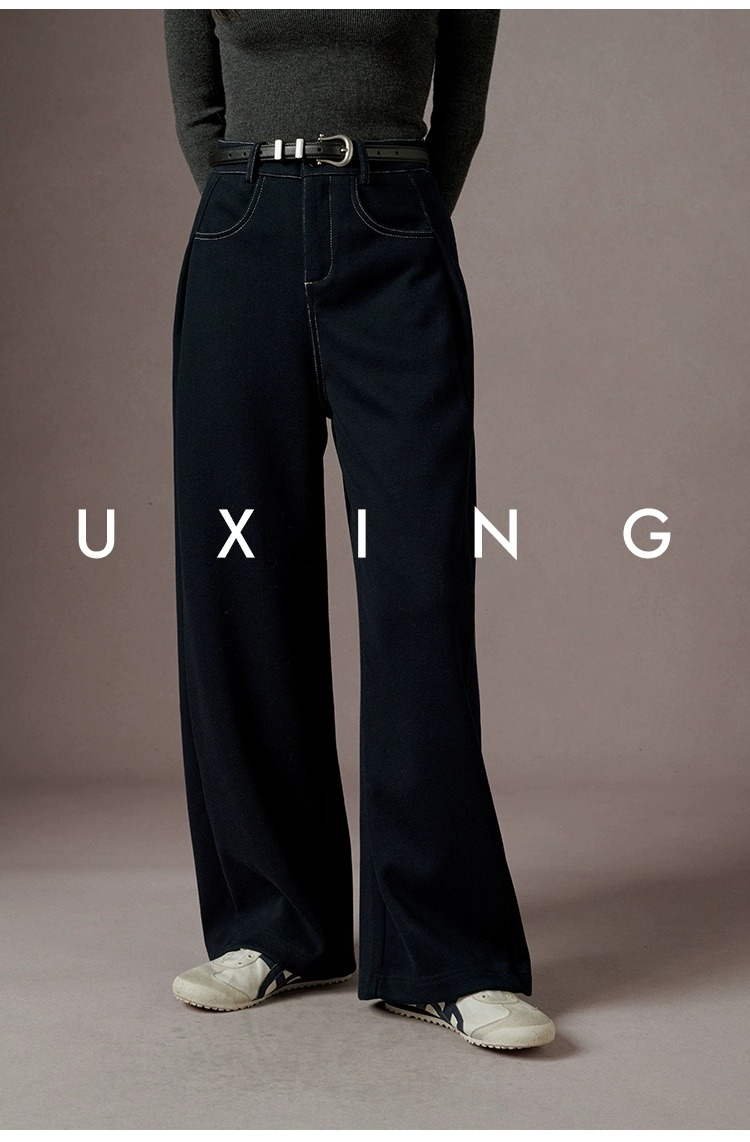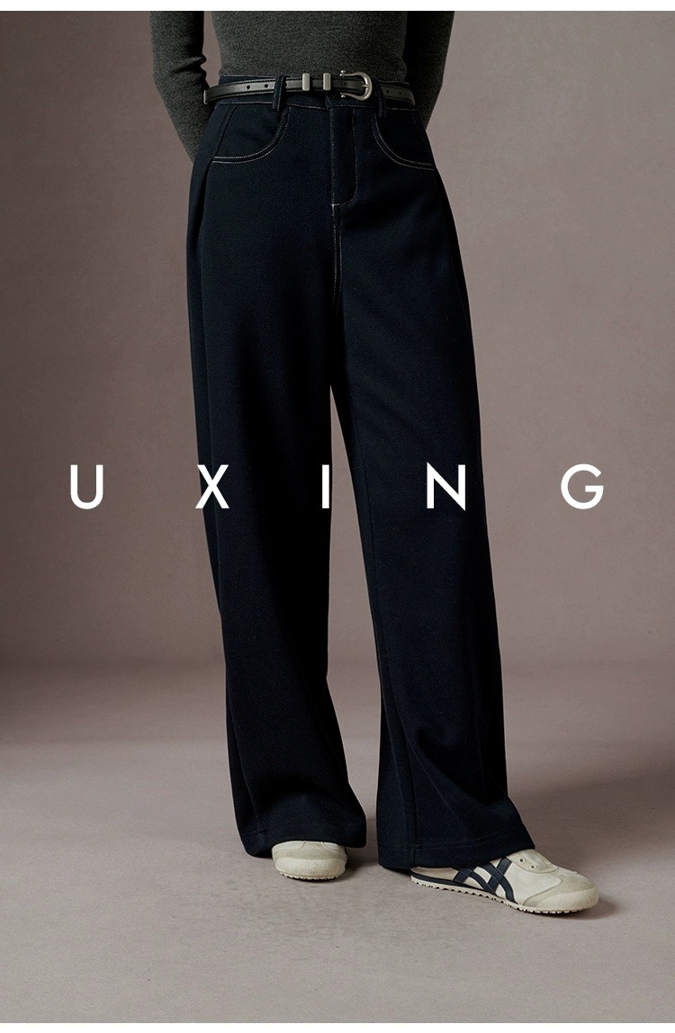 气质显瘦羊毛阔腿裤女2023冬季新款复古高腰直筒裤休闲裤子