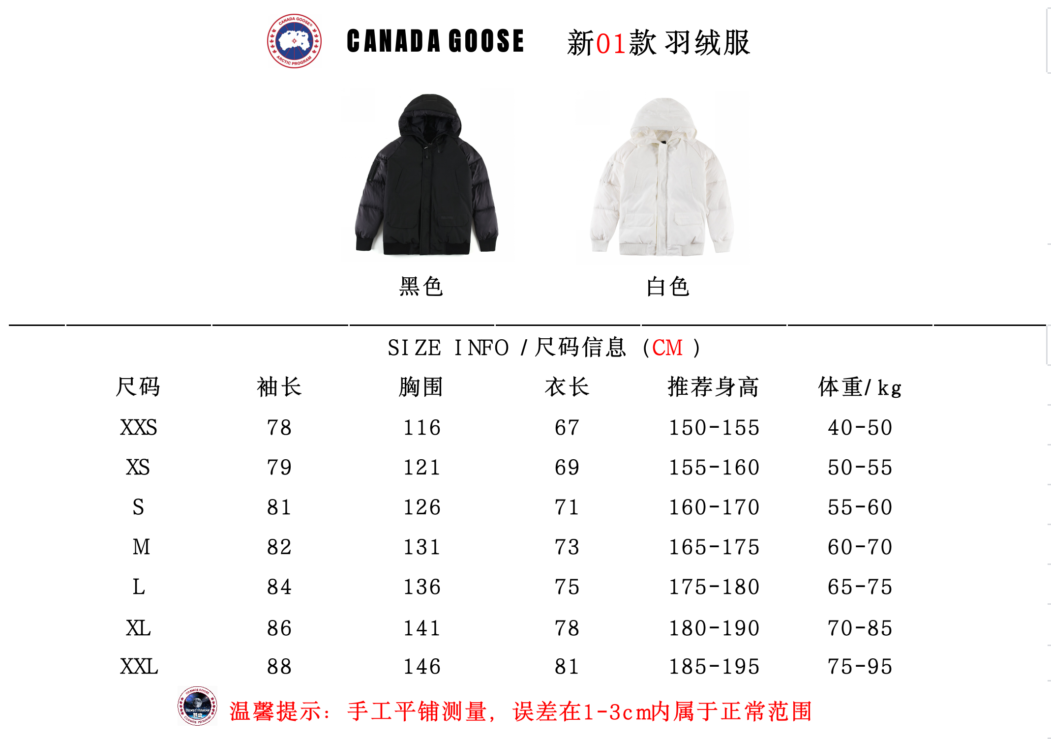 加拿大*鹅 新01款羽绒服 带门襟的正面双向拉链 两款可选