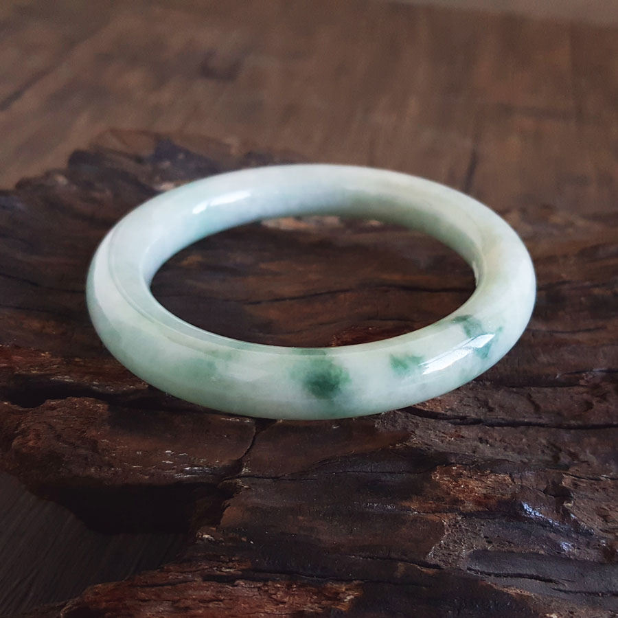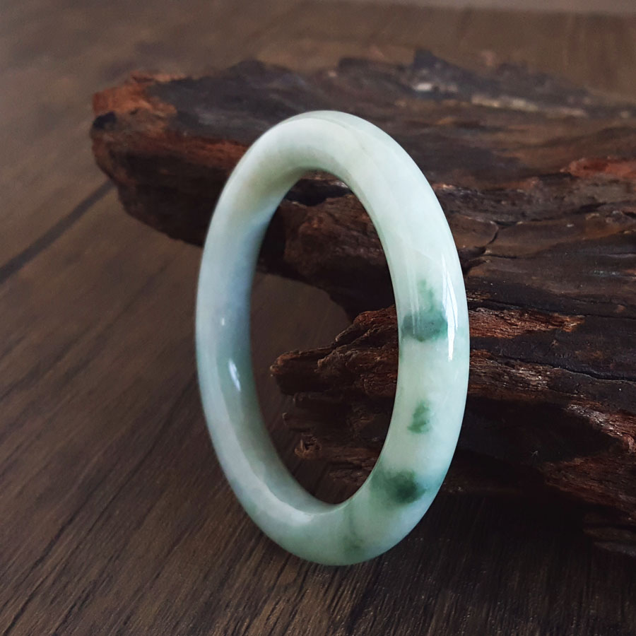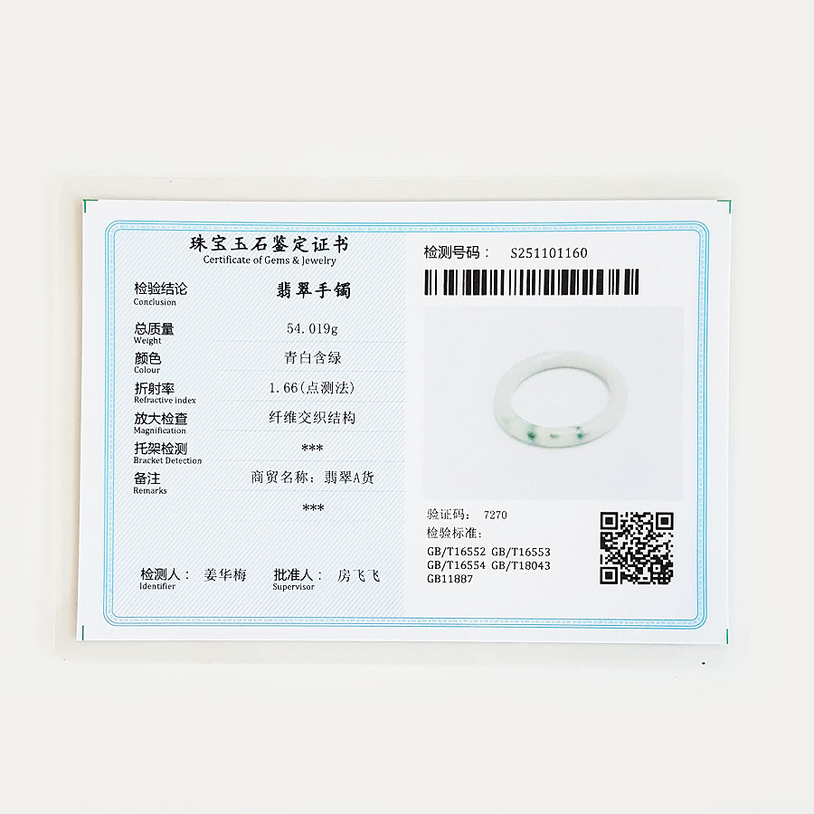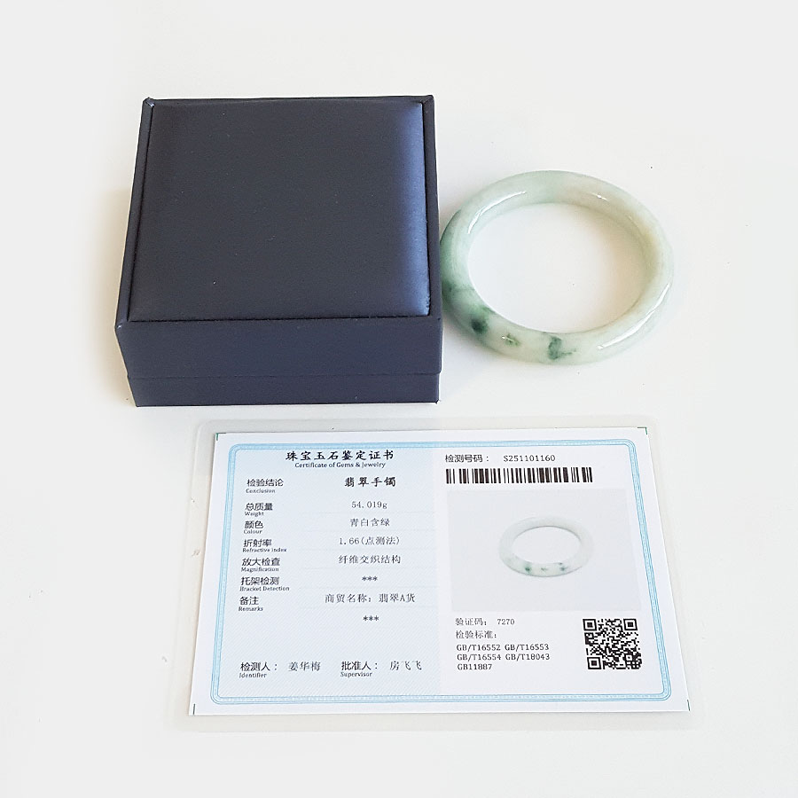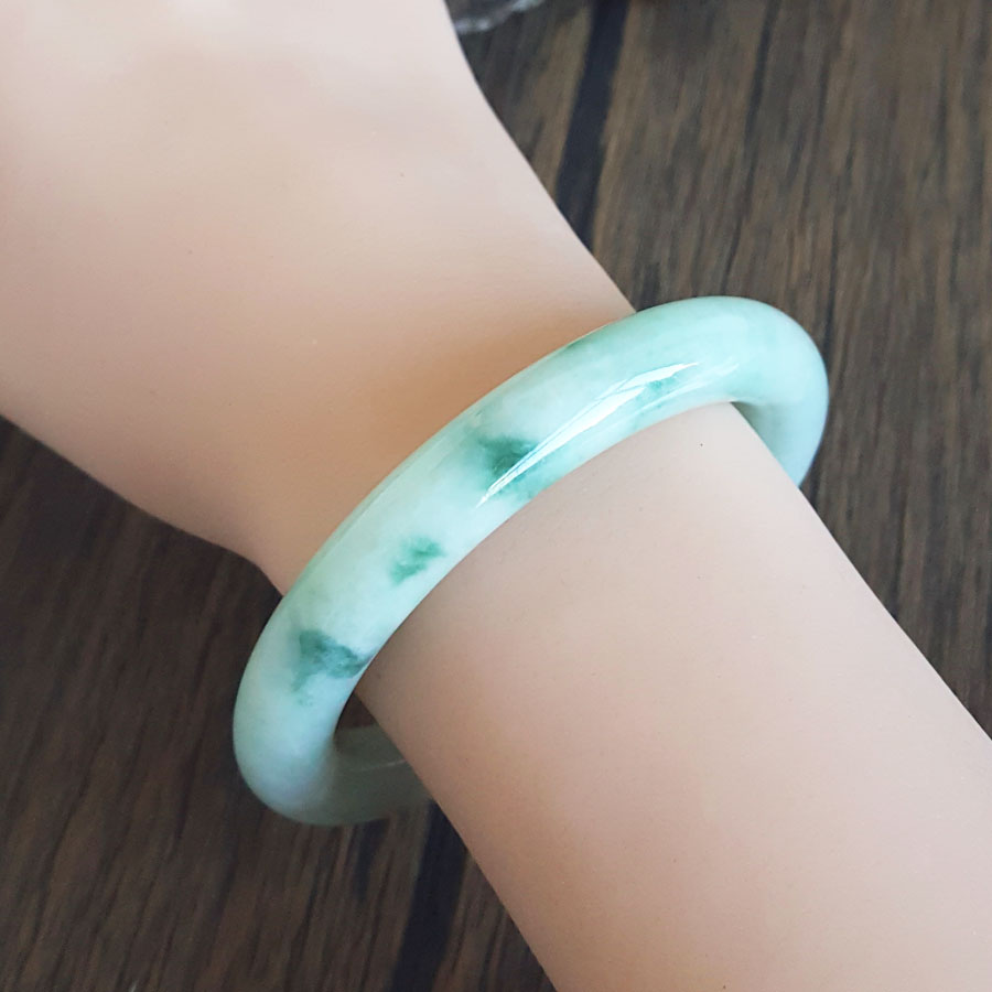 【天然正品】A货翡翠天然细腻圆条飘蓝花细豆种55.5号翡翠手镯55.5号(皆取最大值)女士280325AH59特价:680