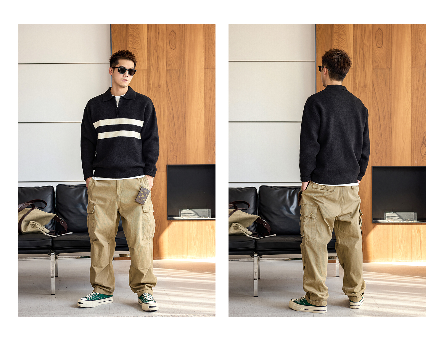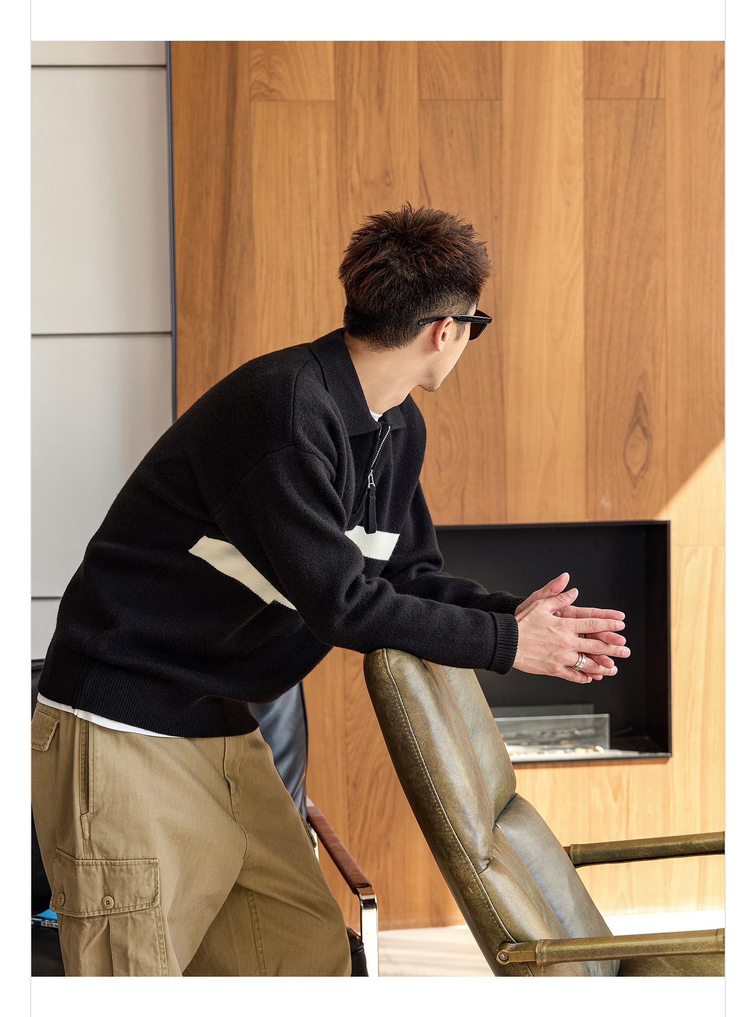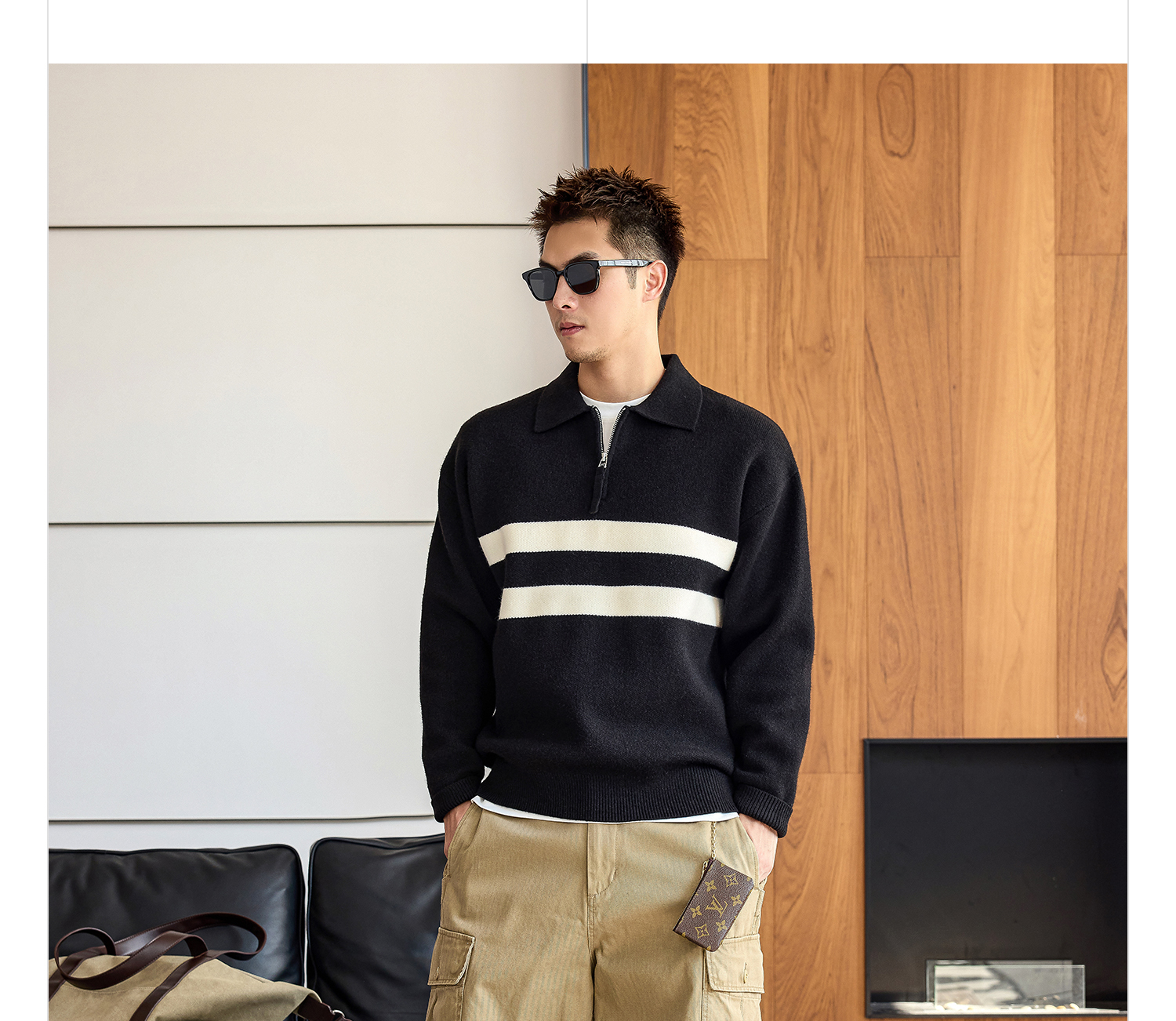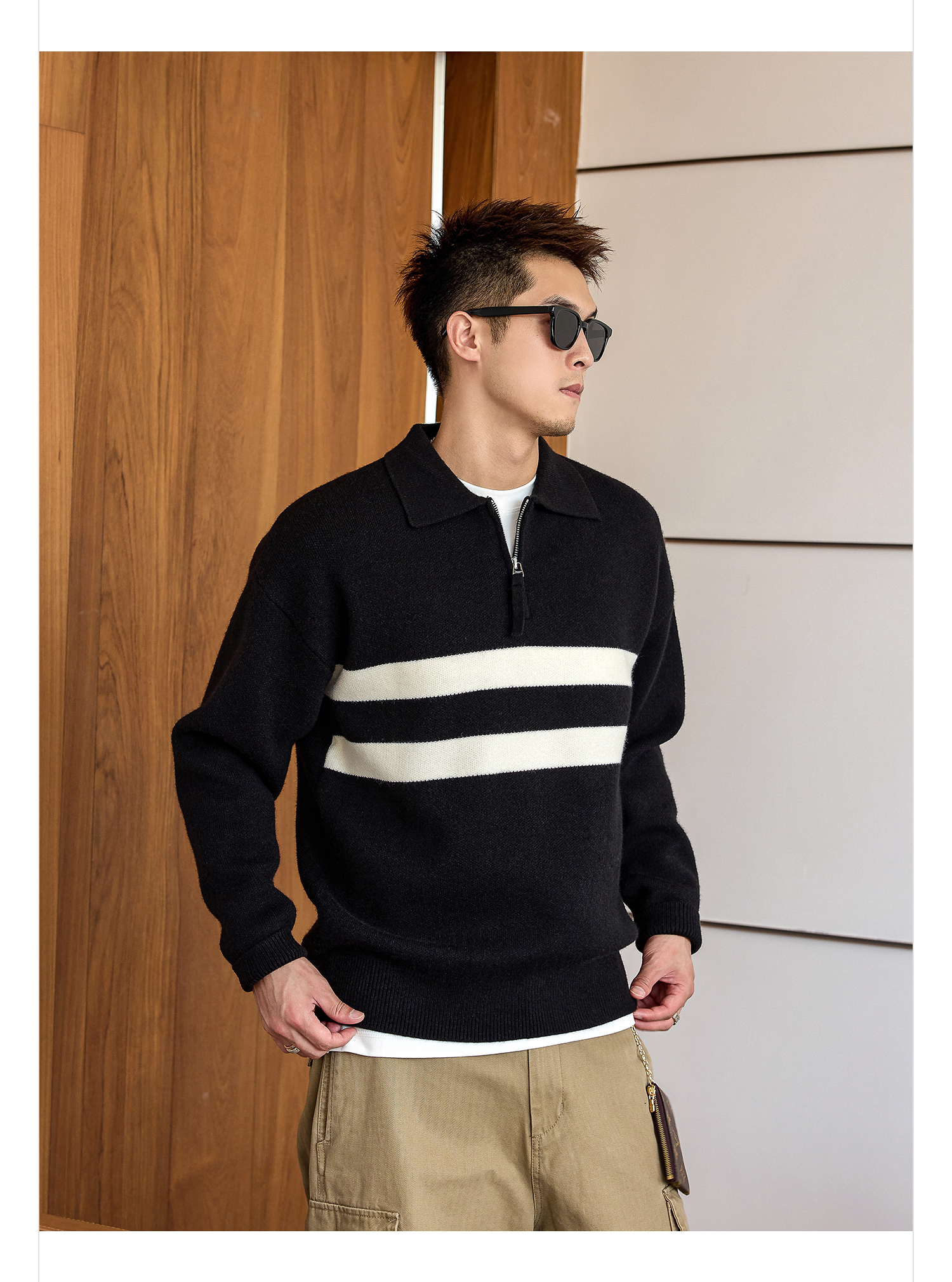 徐太浪【830g重磅 撞色条纹】半拉链毛衣男秋冬加厚保暖内搭上衣