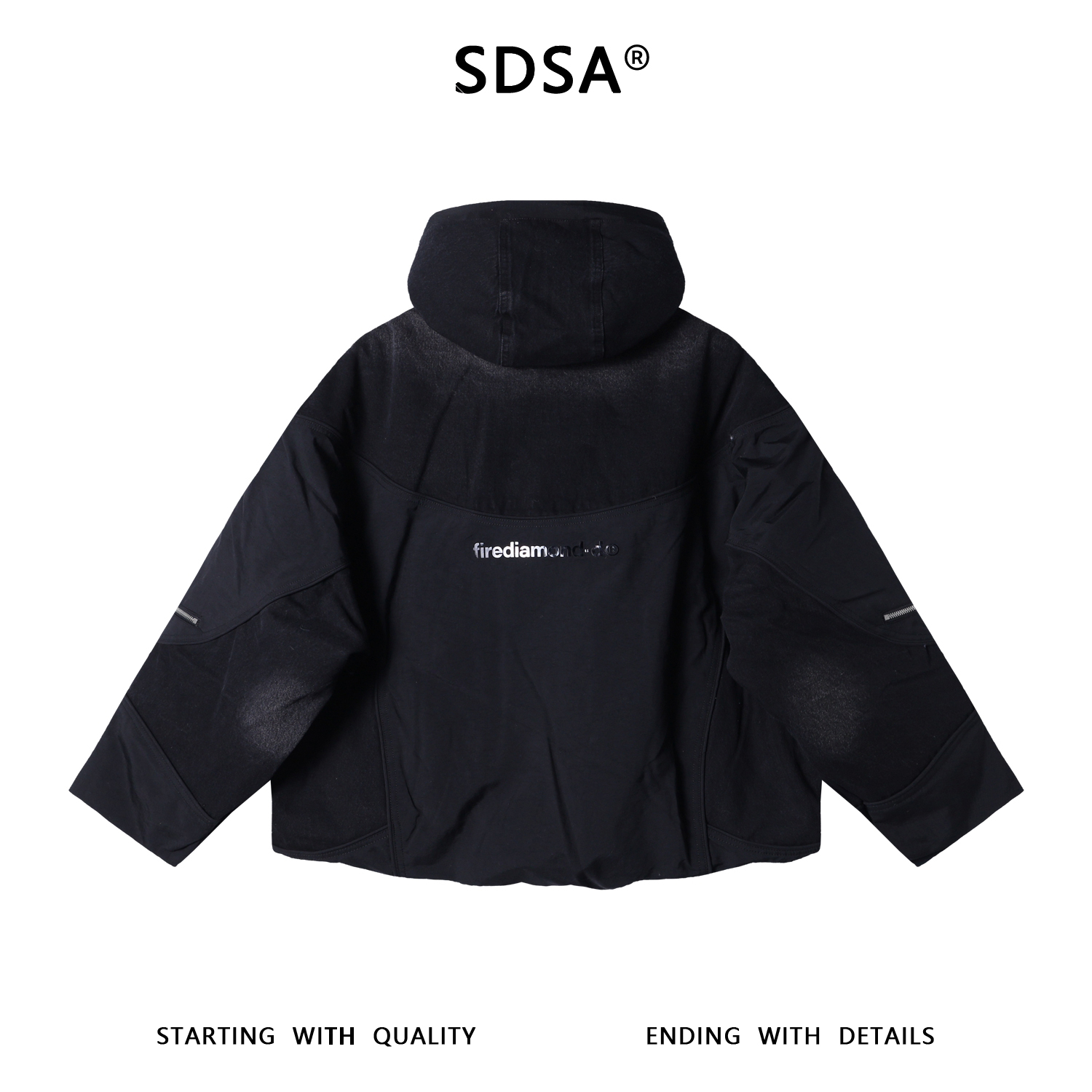 H909SDSA秋冬新款痞帅男装美式高街连帽羽绒服拼接撞色宽松潮牌外套