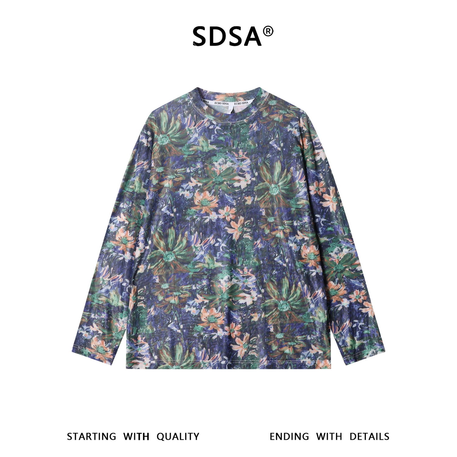 SDSA男装2026新款高贵轻奢小众撞色满印花卉圆领长袖T恤百搭休闲