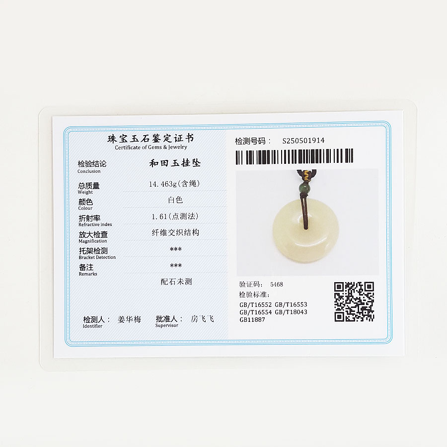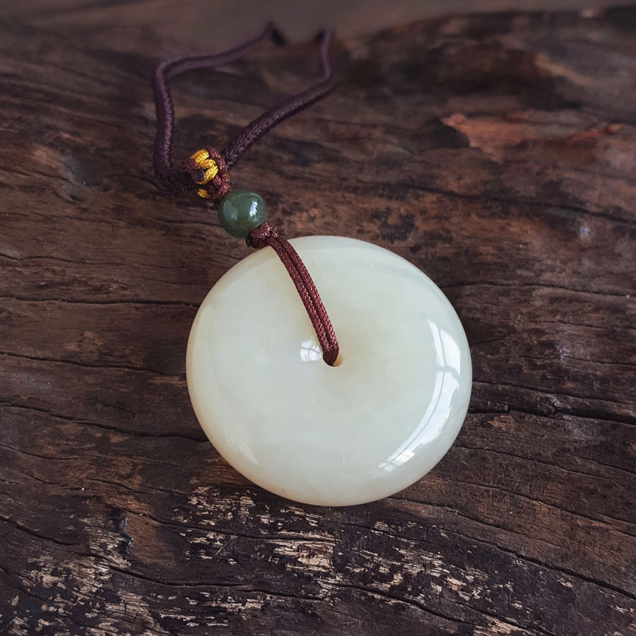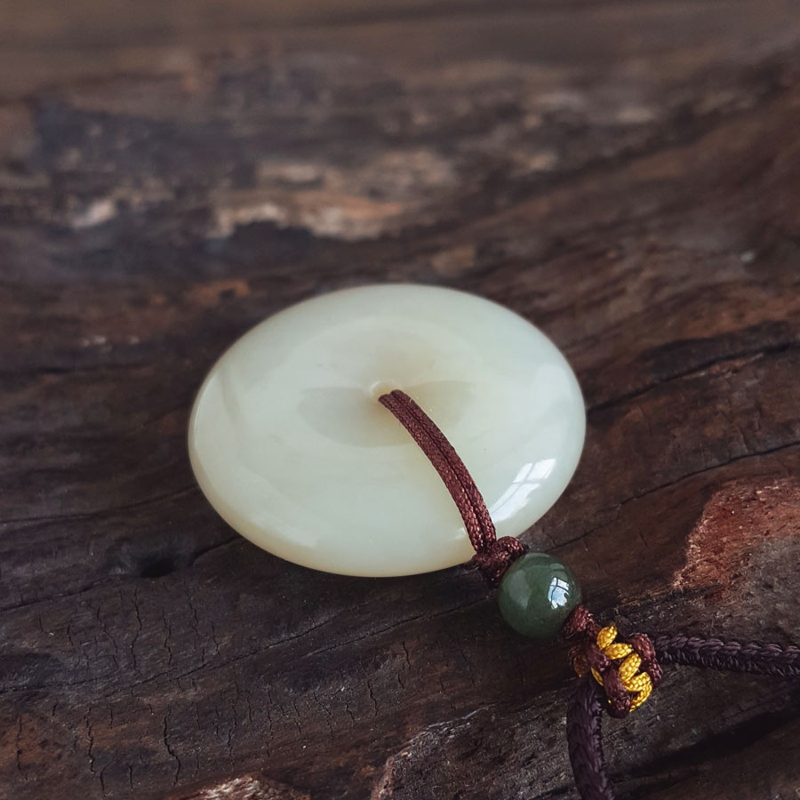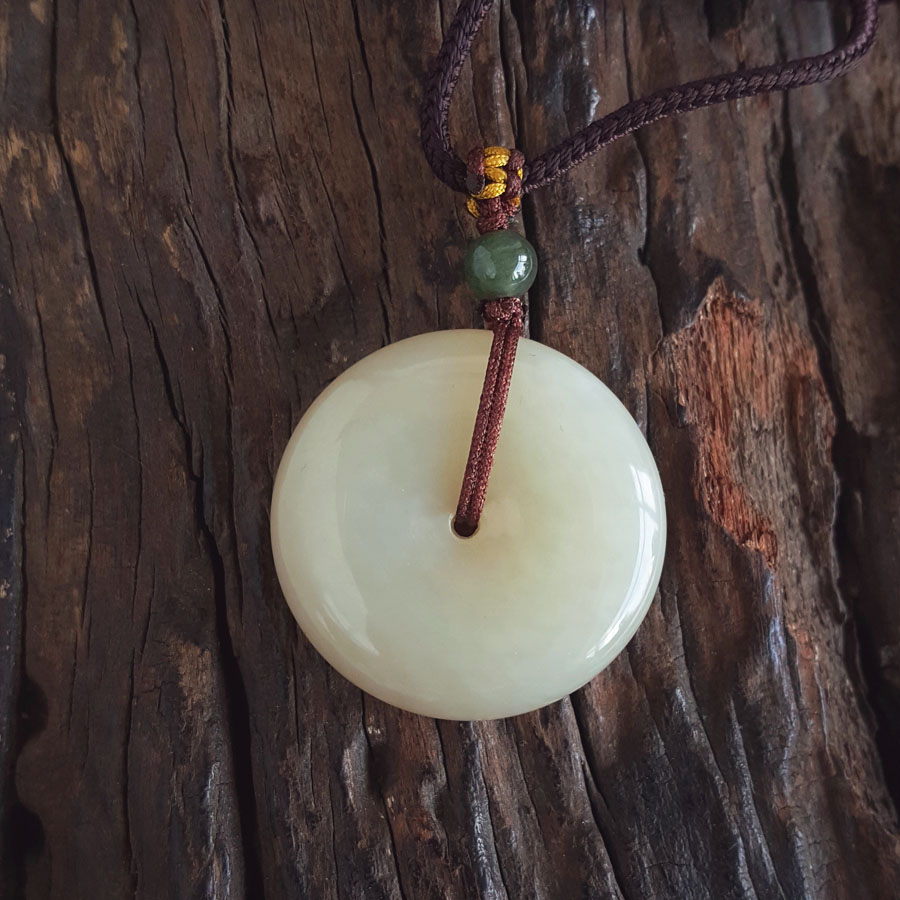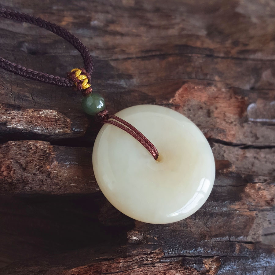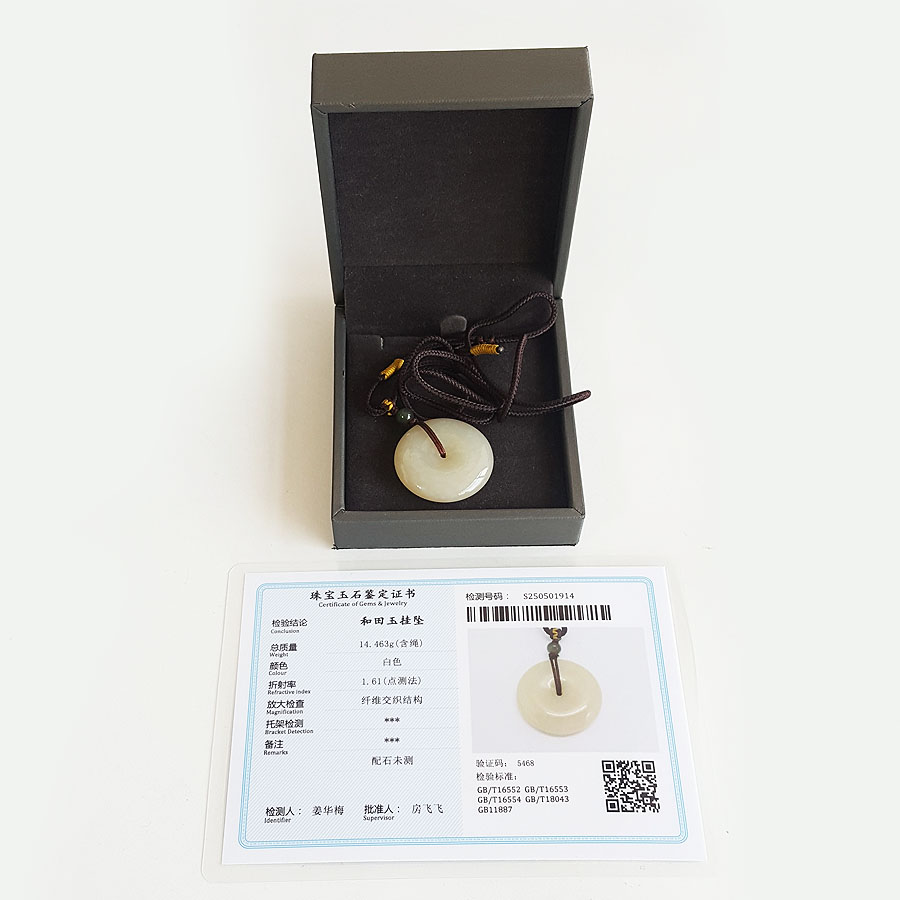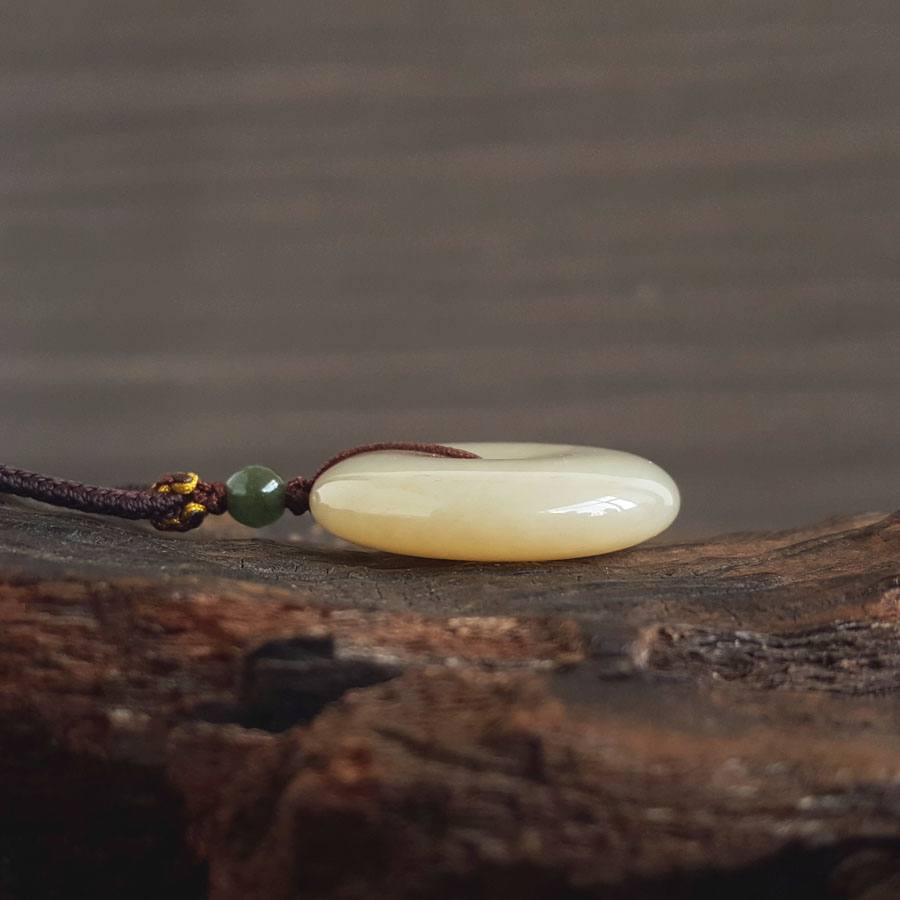 名称 | 天然藕粉平安扣造型和田玉(吉祥、如意)吊坠项链 |