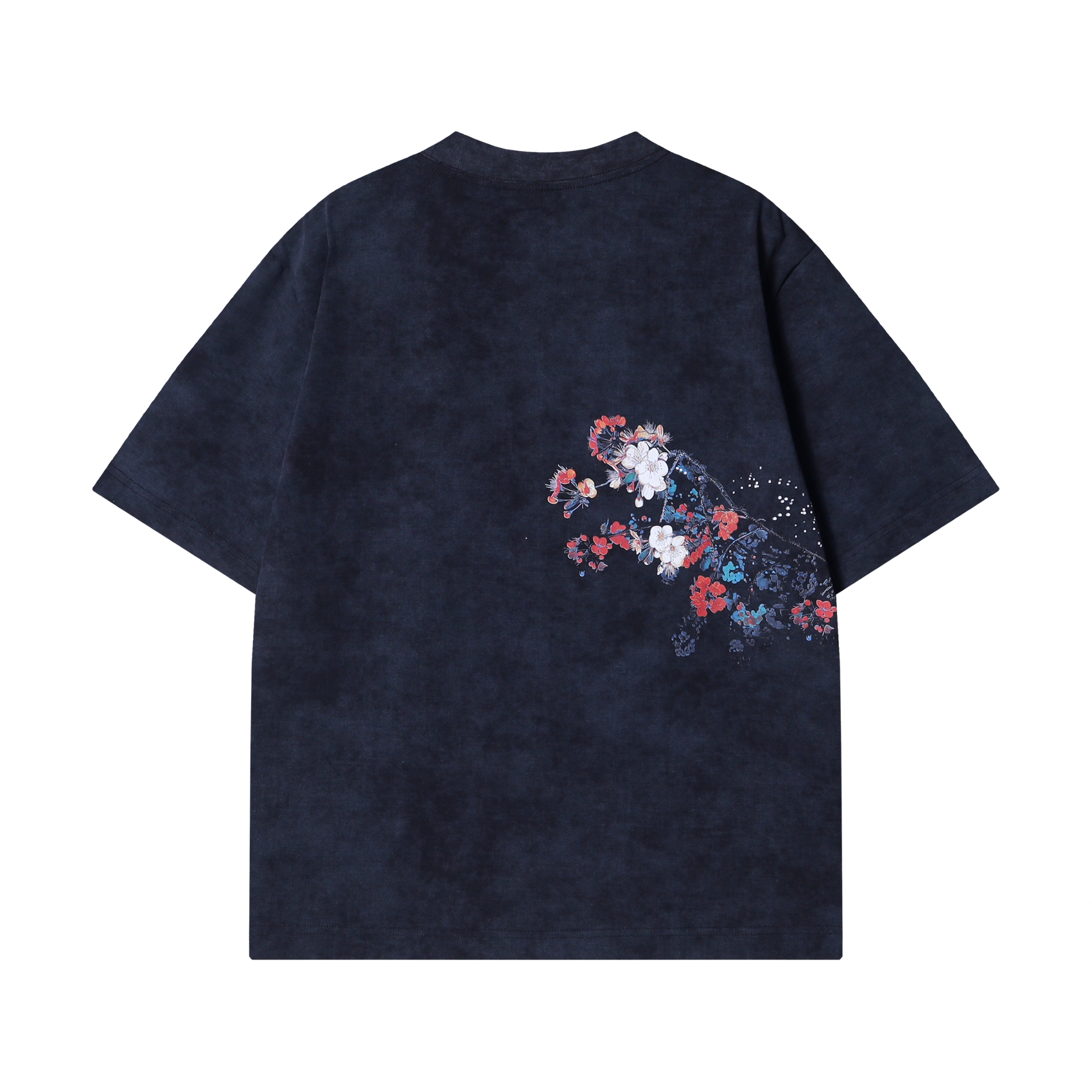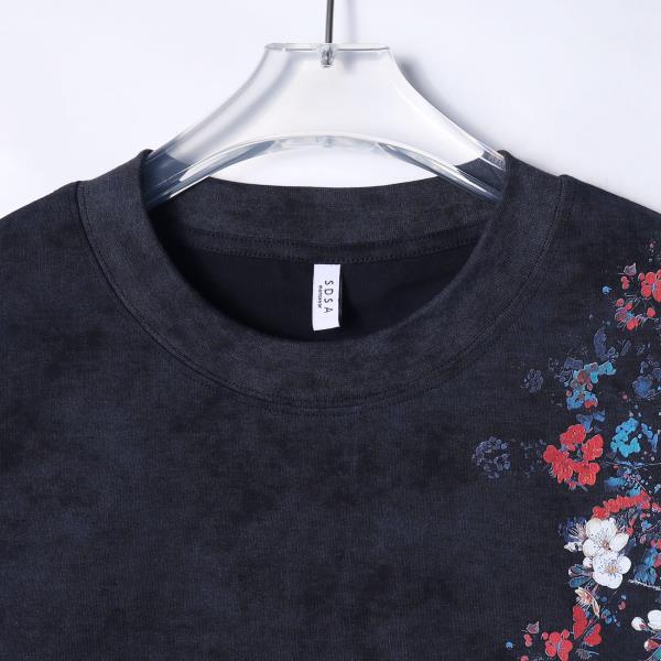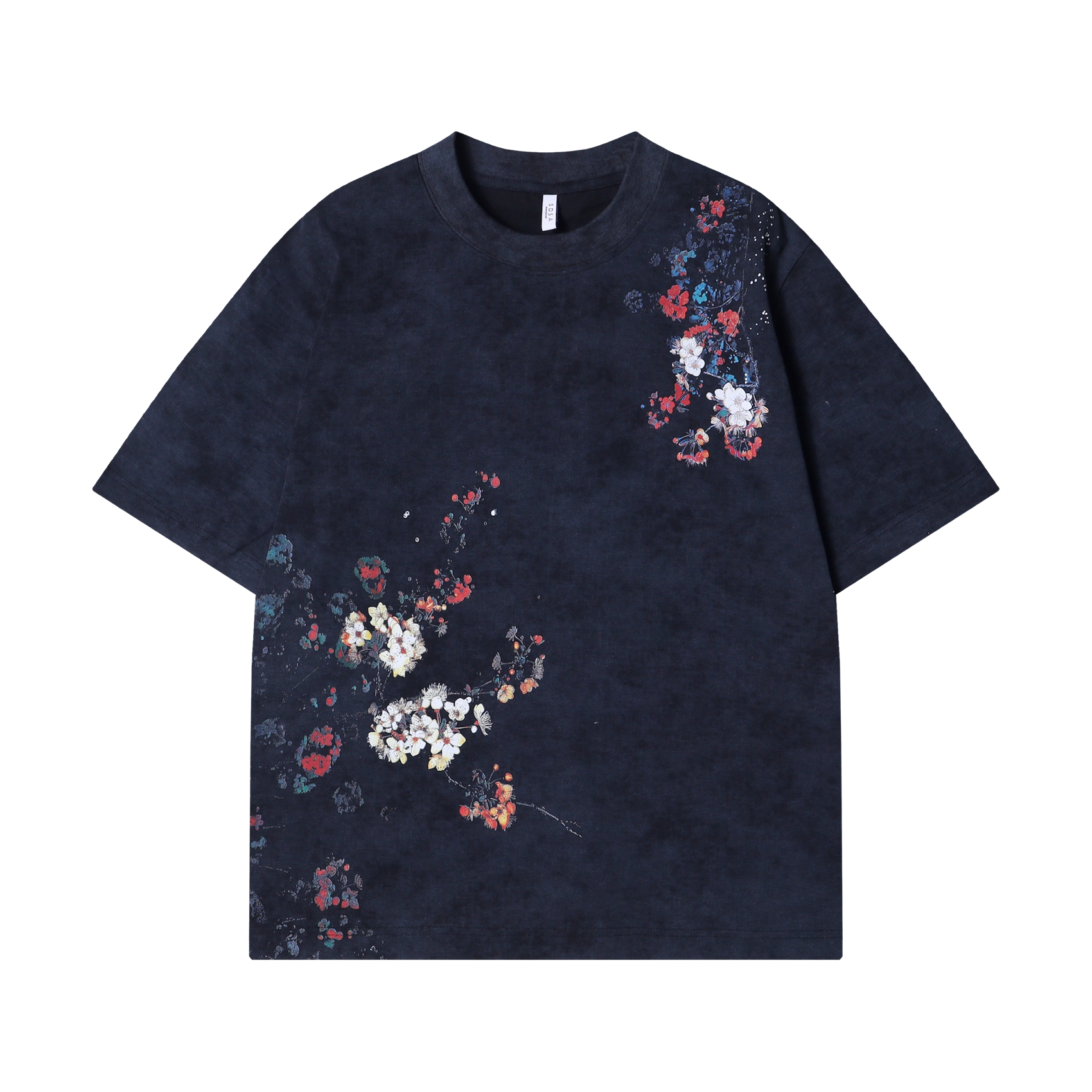 T2299夏季新款时尚个性国潮扎染印花花朵圆领短袖T恤百搭潮流重磅上衣