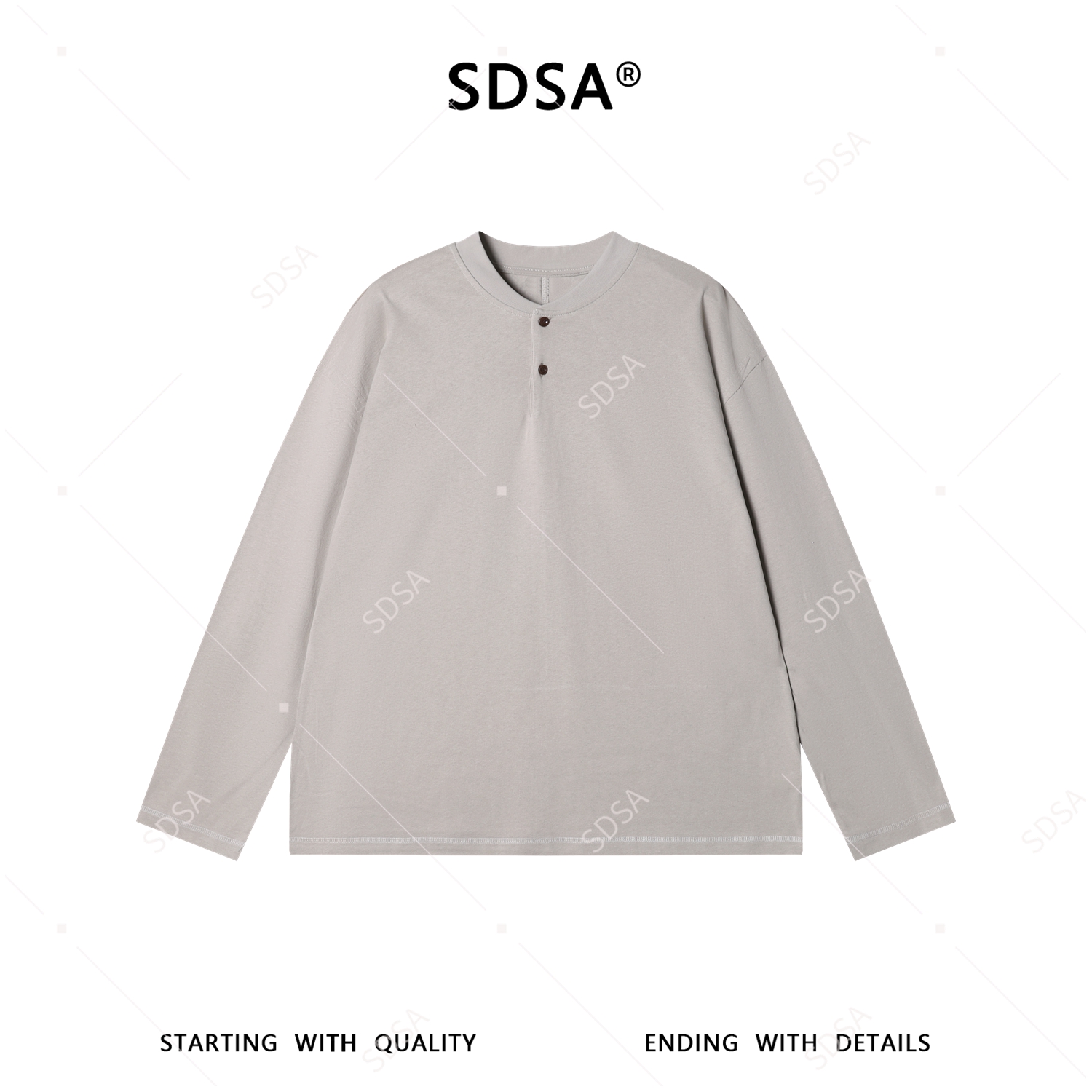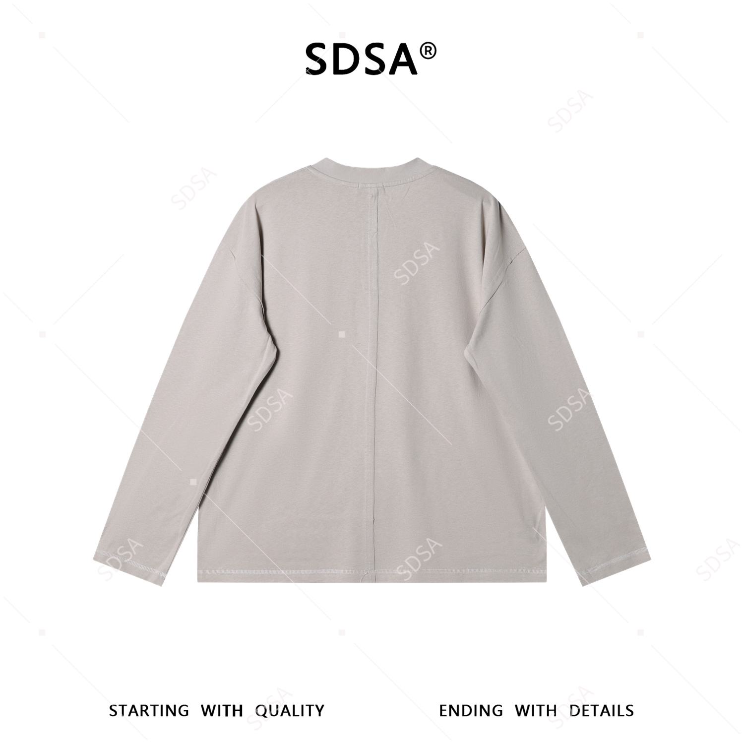 OAS2852SDSA男装2026新款高贵轻奢韩版百搭纯色开领散边长袖T恤时尚简约