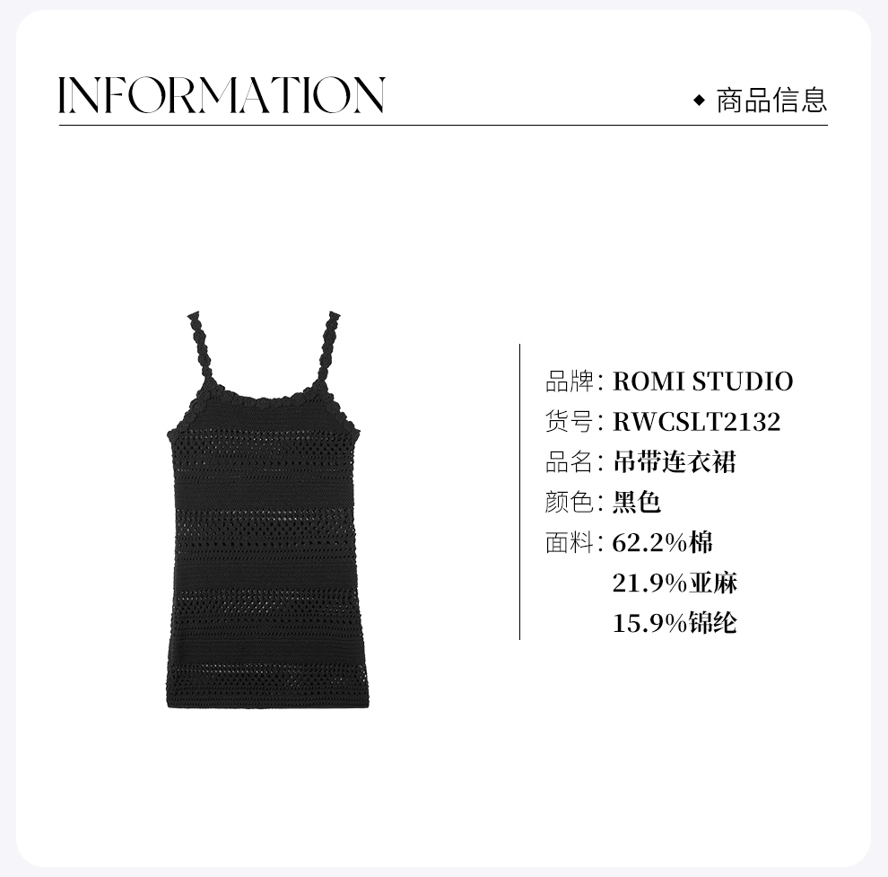 ROMI STUDIO“法式复古”亚麻棉镂空肌理感吊带连衣裙 RWCSLT2132