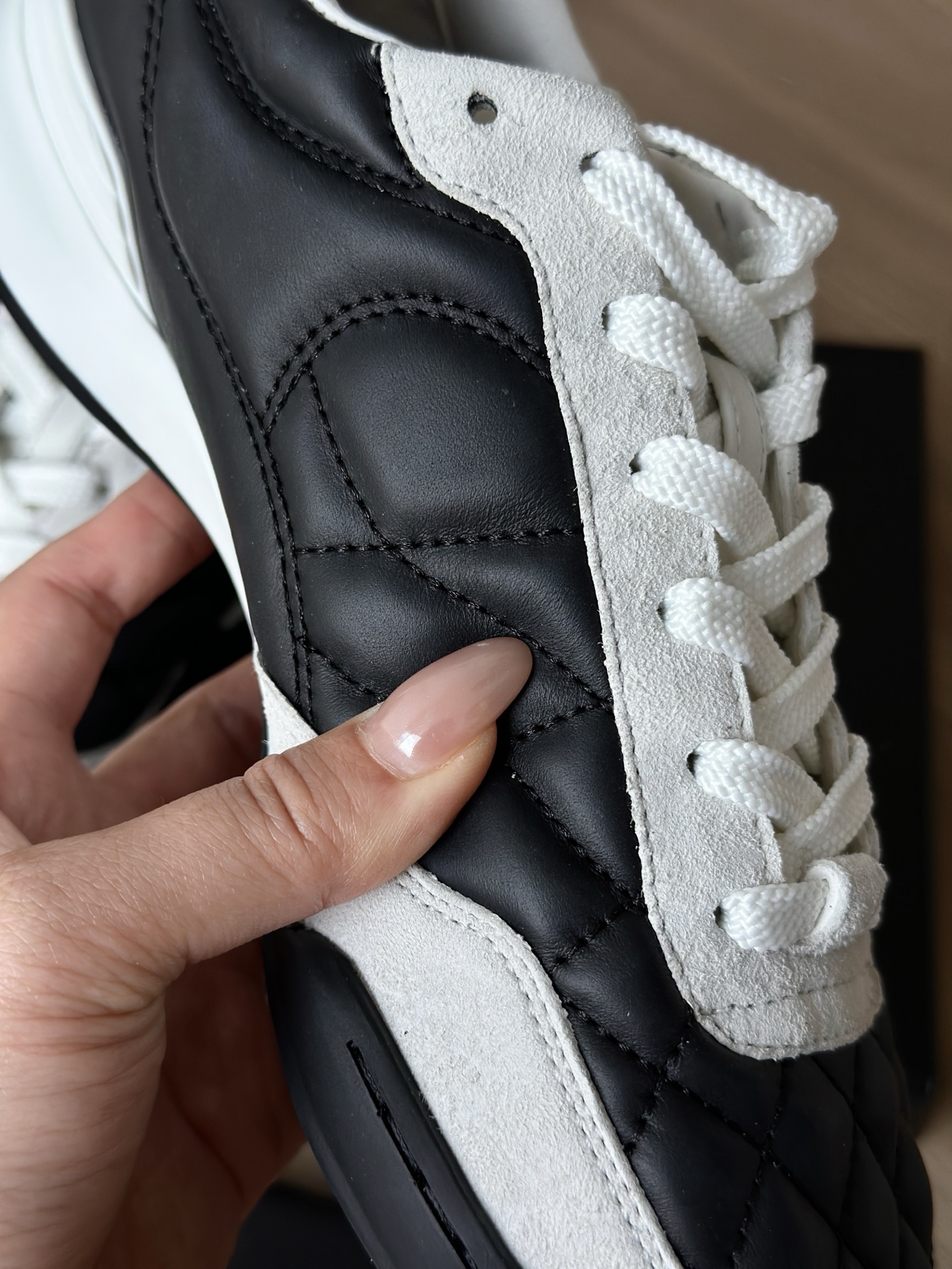 细节真的好 一点都不吹,拿到鞋你们自由体会 鞋面的菱格都同原版一样,是波浪型不是直挺挺的! 这种质感完美的细节不是拍出来的,是东西真的好 自己看中底线的细腻质感,越能品出味道来