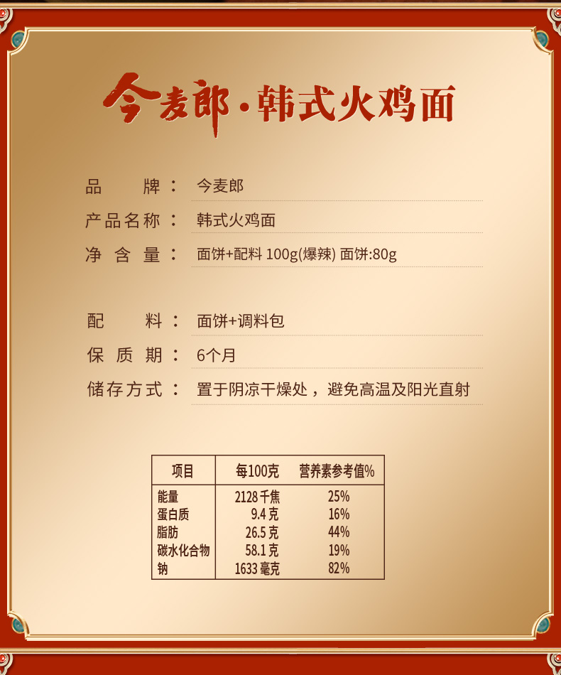 【店铺专享】今麦郎爆辣韩式火鸡面15袋整箱装